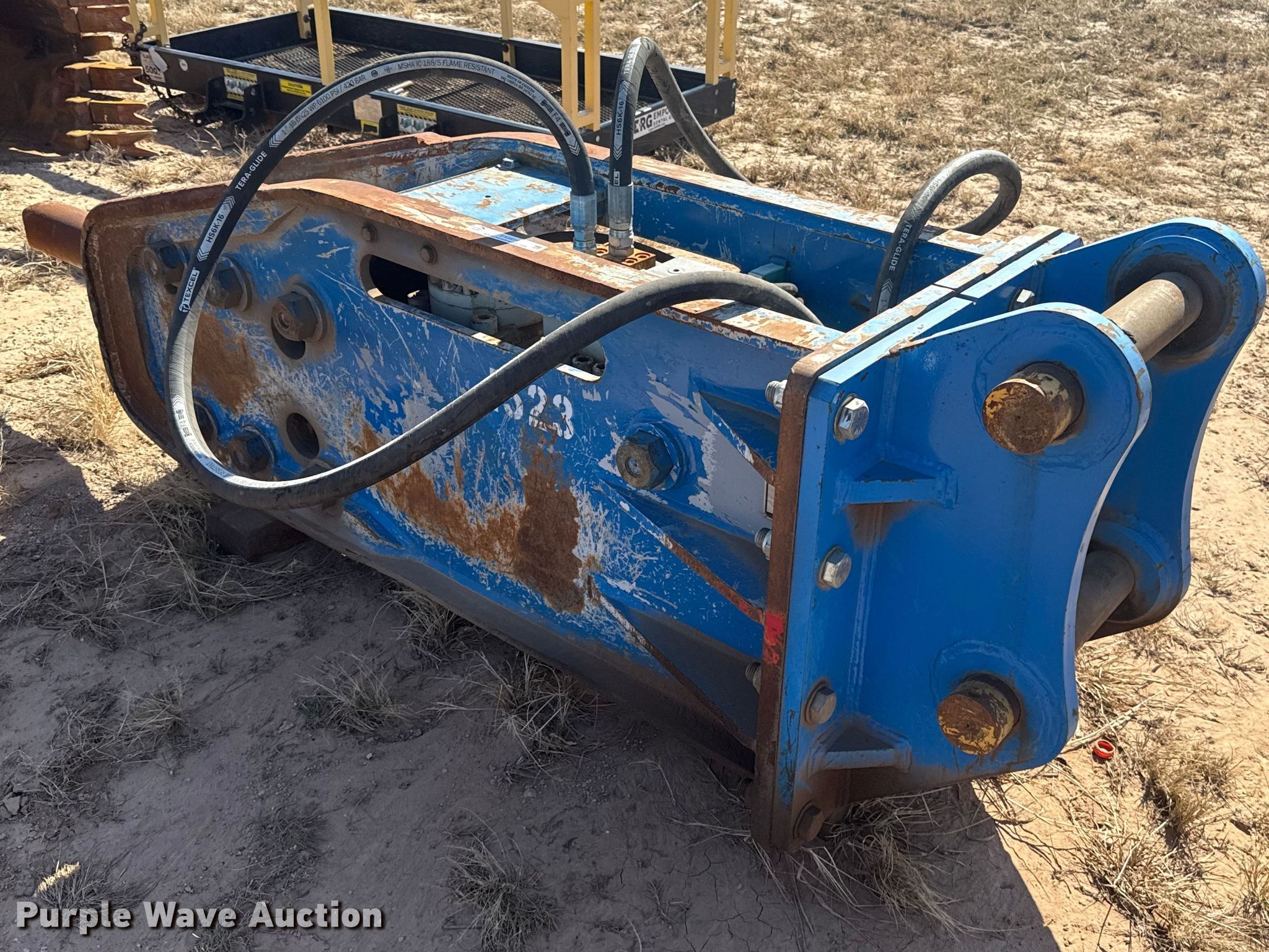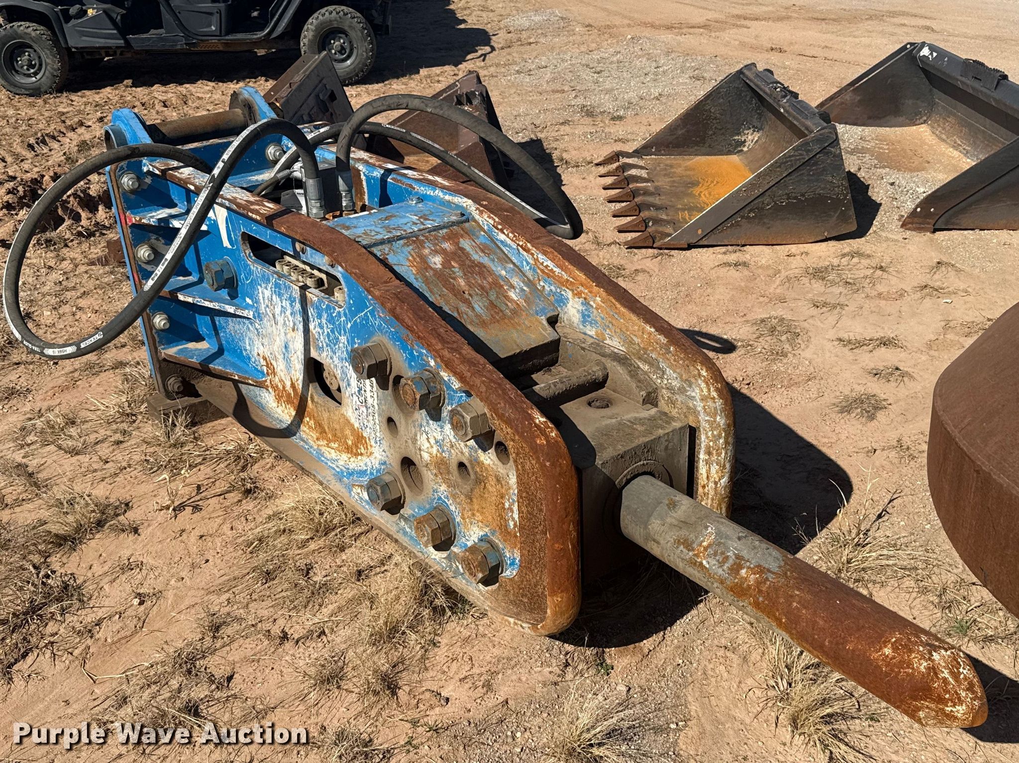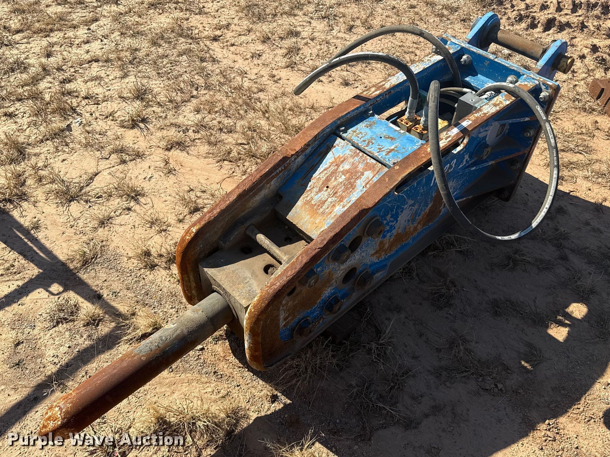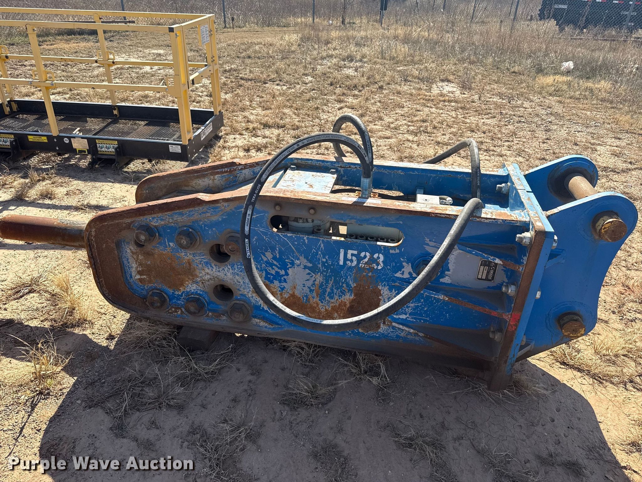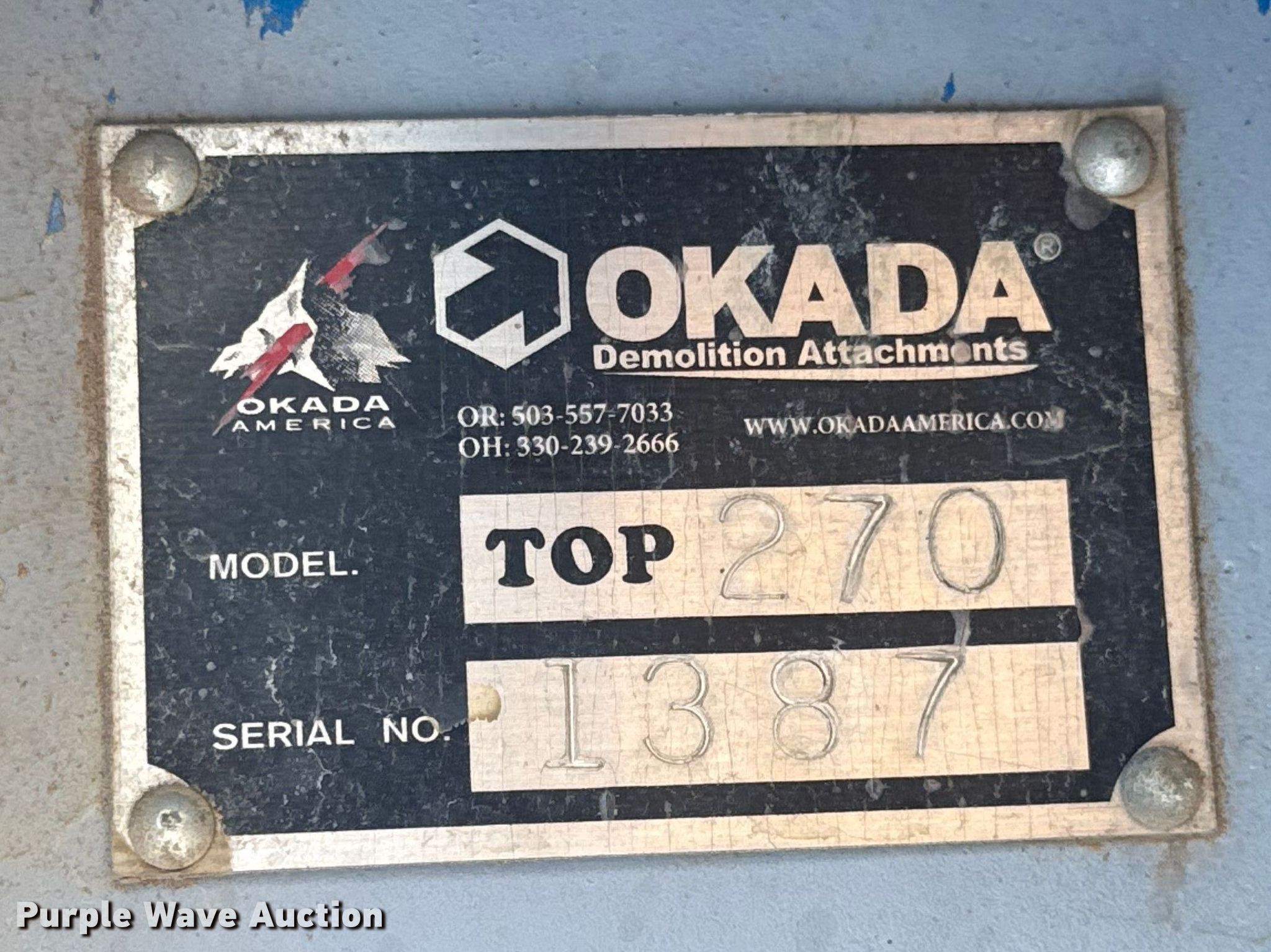 Purple Wave is selling a used Breaker or Hammer in Oklahoma. This item is a Okada Top 270 breaker with the following: Serial: 1387, Unit #: 1523, Length: 32", Width: 6"