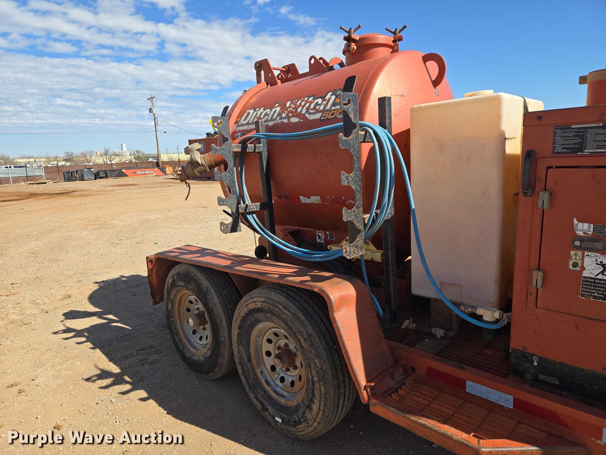2005 Ditch Witch FX30S vacuum excavator. Hours: 2,879 on meter, Serial: 2Z1612. Engine Predator 670, Displacement: 670cc, Cylinders: 2, Fuel type: Gas. Features Spoils tank Capacity: 500 gallons, Water tank Capacity: 70 gallons, Water pump InterPump, Vacuum pump Inlet valve size: 3.5", Outlet valve size: 7". Trailer 16' L x 98" W, Hitch: Pintle, Suspension: Torsion, Brakes: Electric, Axles: Tandem, Tire size: 7.50-16LT. Notes Hydraulic issues, suction hose missing. Title distribution may be delayed up to 14 days from verification of funds. Total Boring Solutions, LLC. Oklahoma City, OK 73129