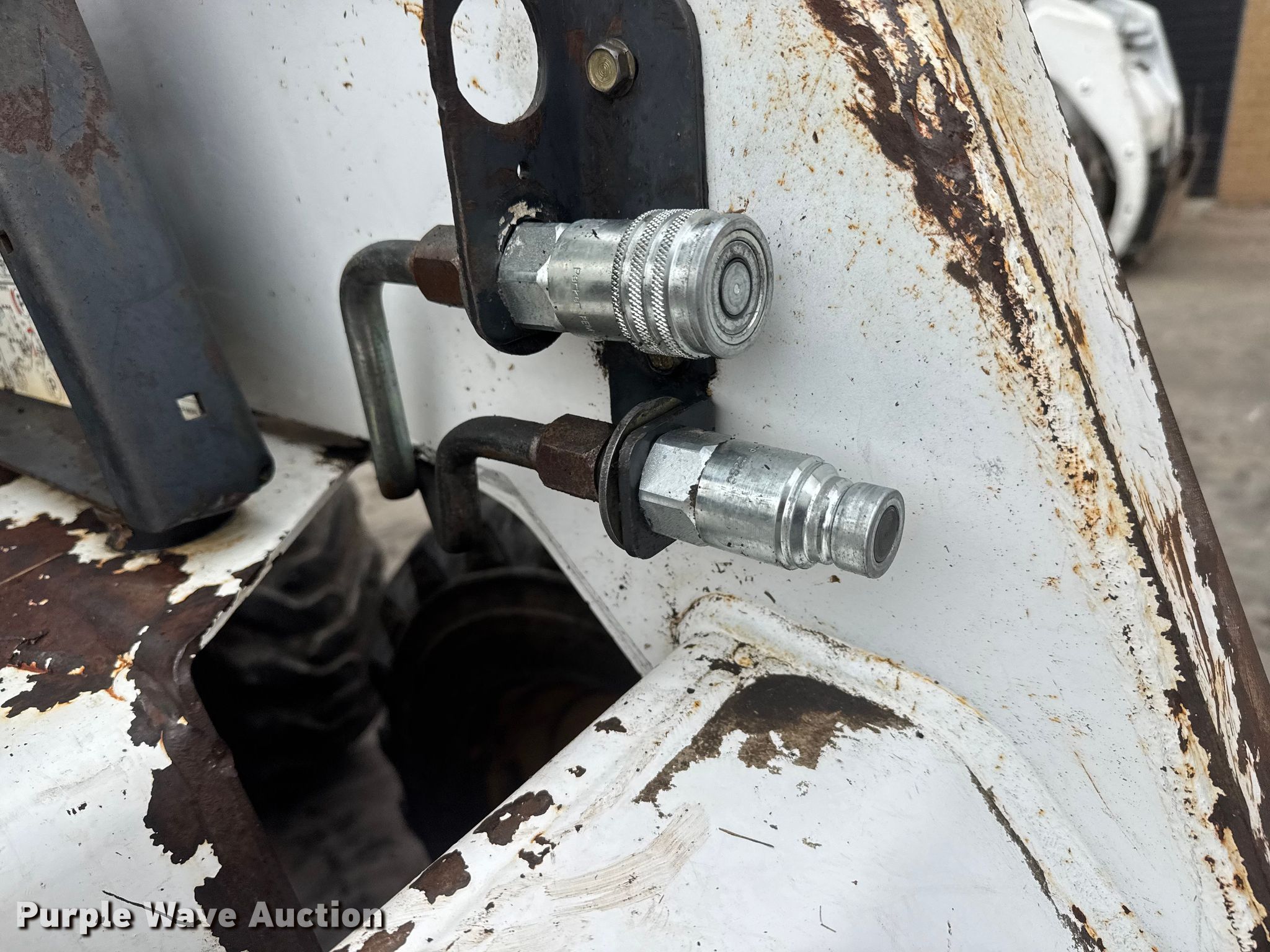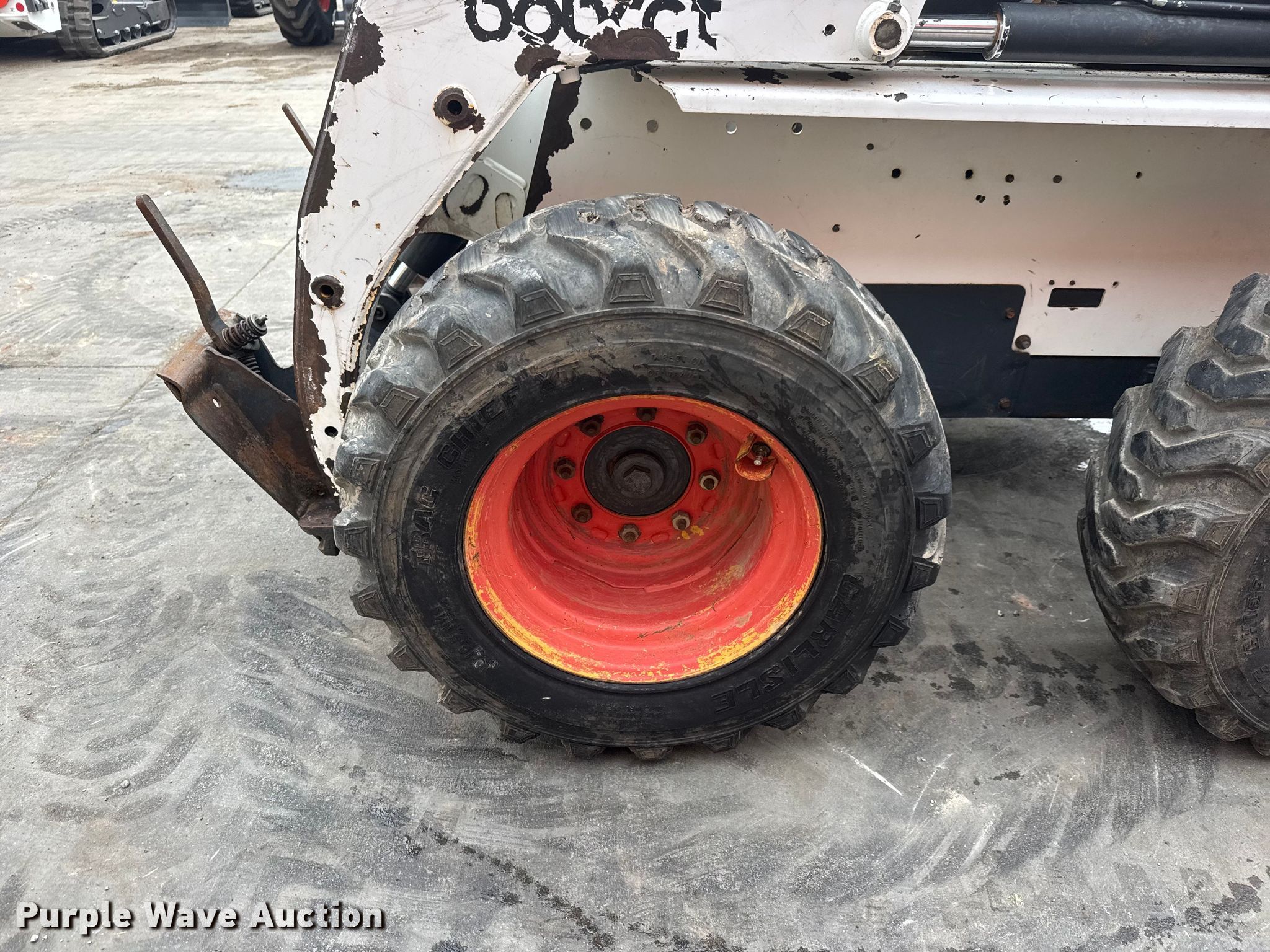 1996 Bobcat 763 skid steer loader. Hours: 2,992 on meter, Serial: 512219433. Engine Kubota V2203-E, Cylinders: 4, Fuel type: Diesel. Transmission Hydrostatic. Operators station Bucket control: Foot. Features Auxiliary hydraulics, Quick coupler: Manual. Tires Size: 10-16.5. Notes Hydraulic leak. White Star Machinery. Wichita, KS 67219