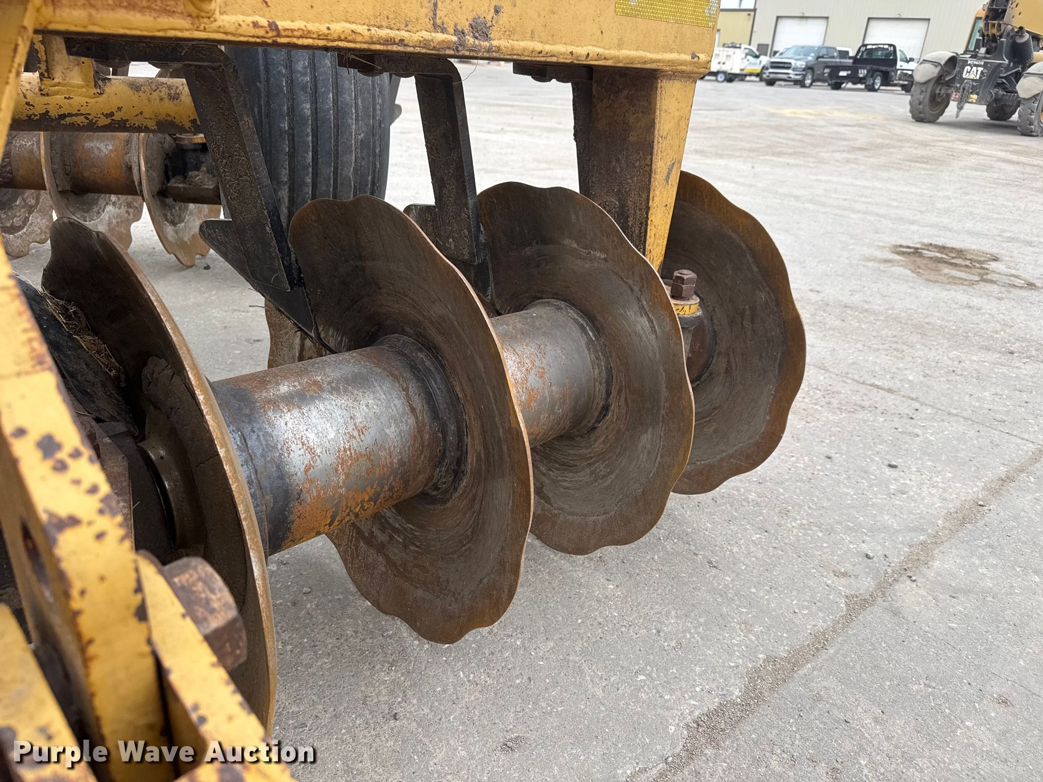 Rome TAW-20S off-set disk. Overall width: 10', Serial: 10TAW-3502S. Features Front blades Diameter: 24", Spacing: 12", Rear blades Diameter: 26", Spacing: 12", Disk scrapers, Operation Hydraulic lift. Tires Tire size: 12.5L-15. Dondlinger & Sons Construction. Wichita, KS 67217