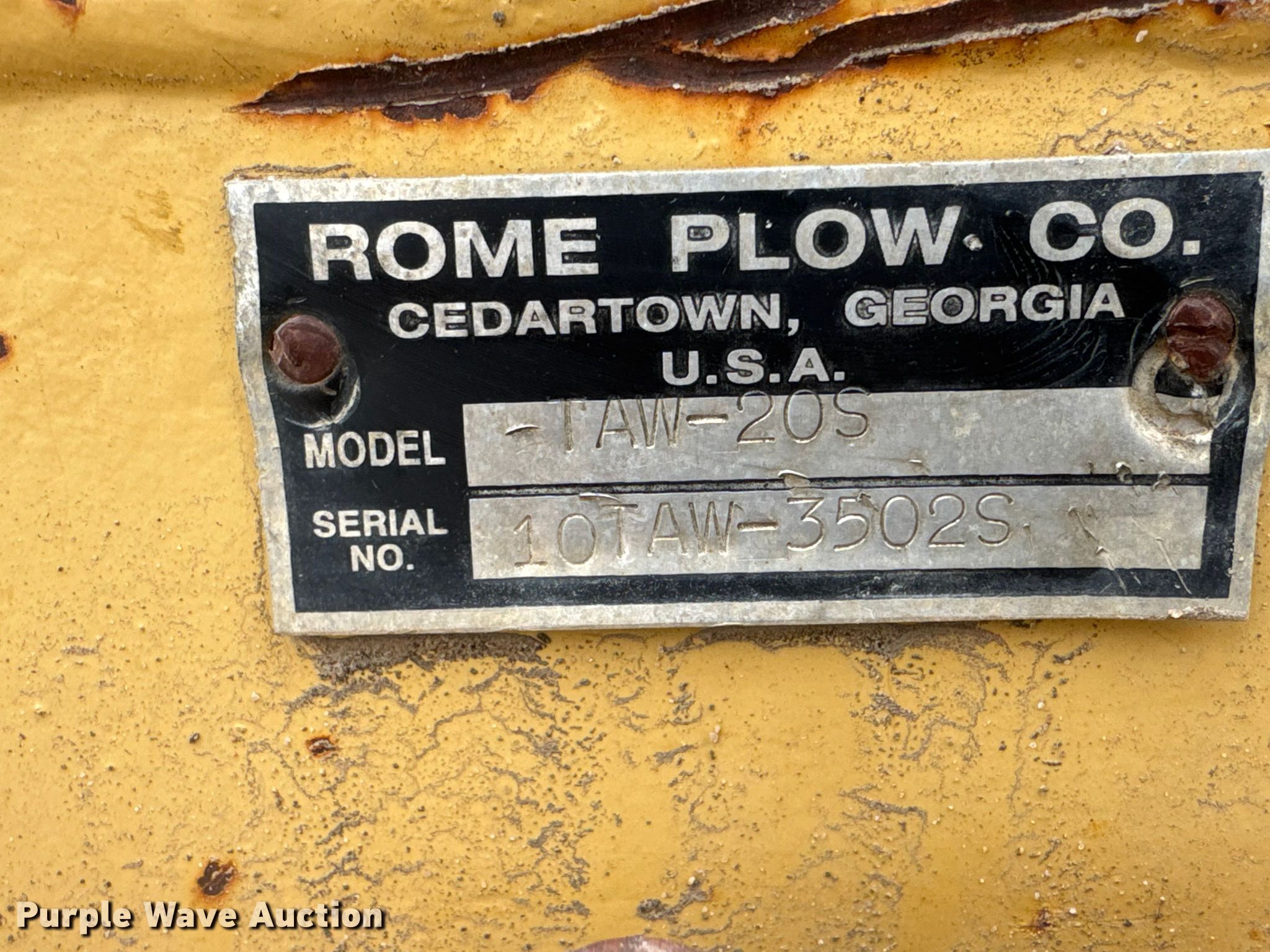 Take a look at this used Rome TAW-20S off-set disk being sold on March 26th, 2026 in the Thursday March 26 Construction Equipment Auction made by Rome. Take a look at all of the item information below or take a look at similar auctions for Tillage Equipment.
