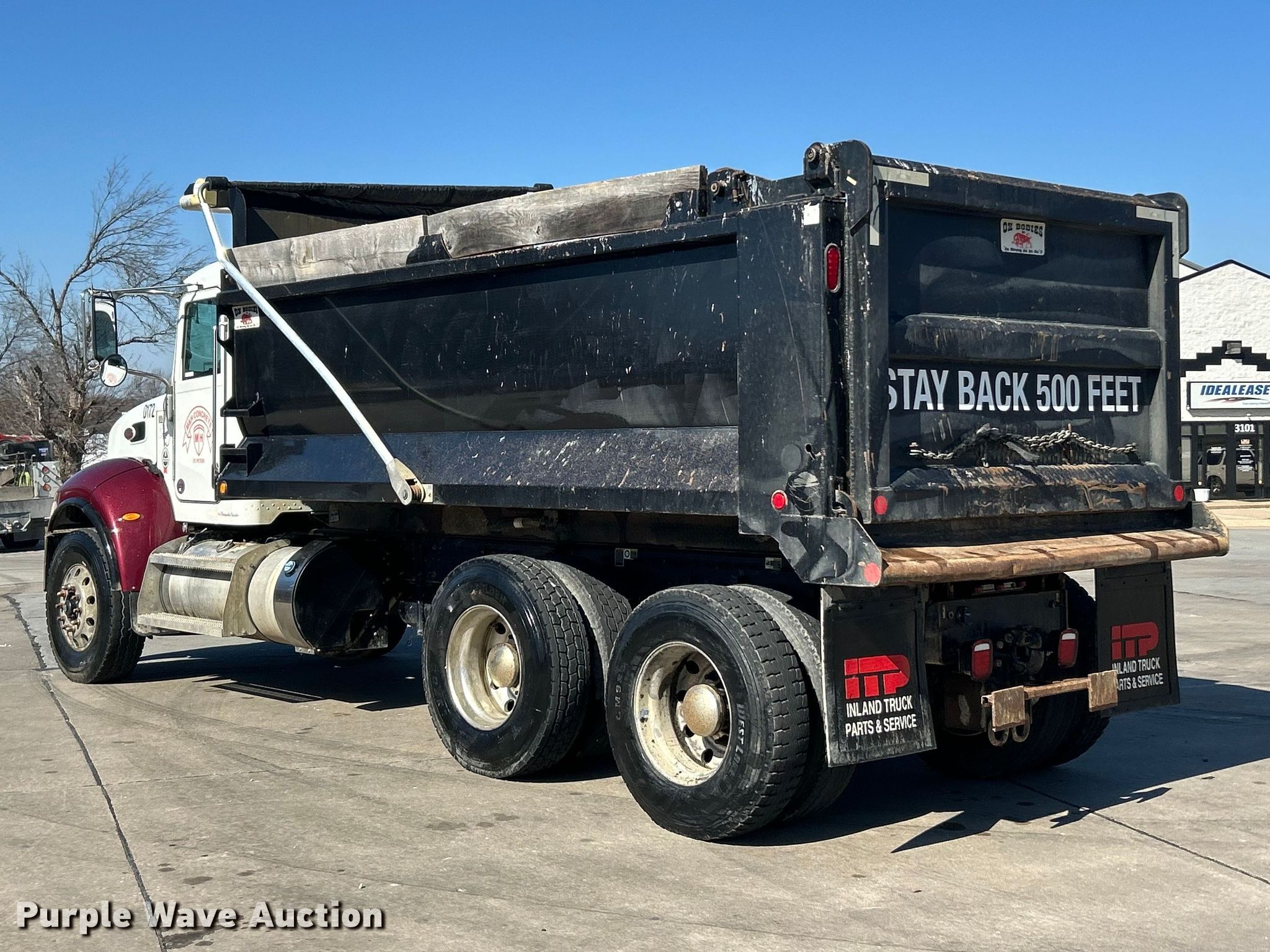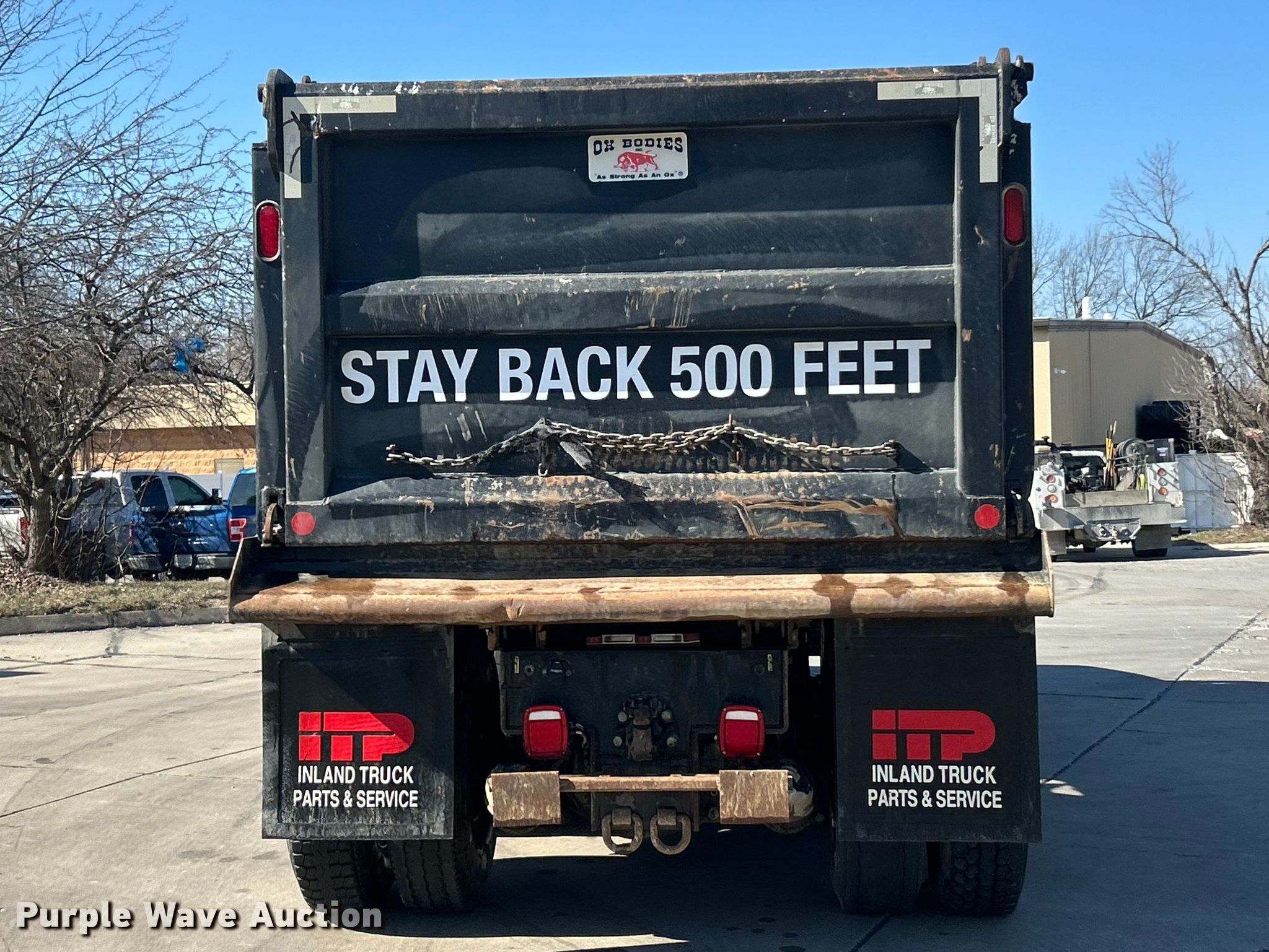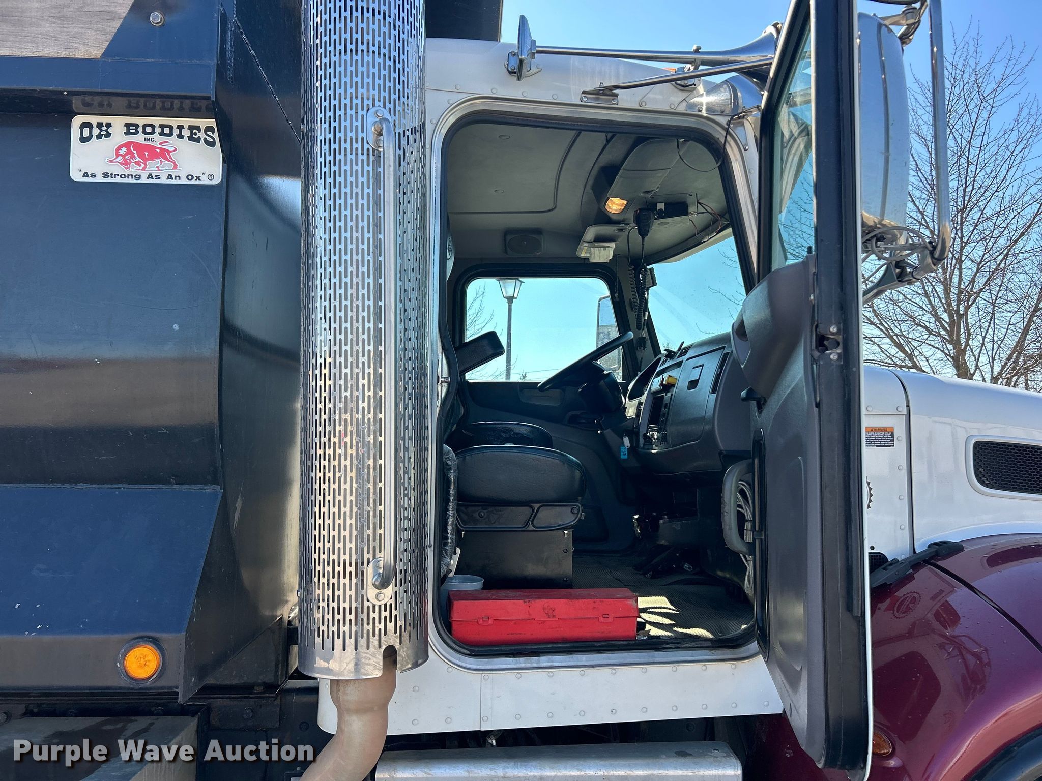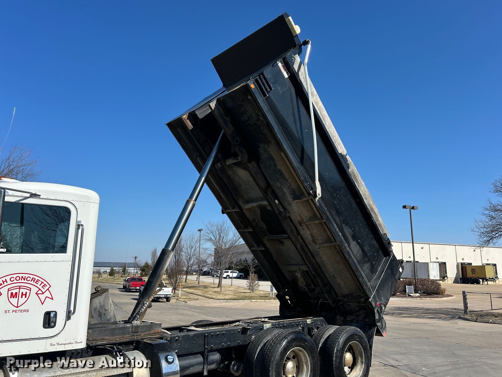 2022 Peterbilt 348 dump truck. Miles: 112,663 on odometer, Hours: 4,872 on meter, VIN: 2NP3LJ0XXNM781829. Engine Paccar PX-9, Displacement: 8.9L, Cylinders: 6, Fuel type: Diesel, Engine brake. Transmission Automatic. Chassis Axles: Tandem, Differential lock: Inter-axle, Suspension: Spring over walking beam, Brakes: Air, PTO, GVWR: 64,180 lbs FAWR: 18,180 lbs, IAWR: 23,000 lbs, RAWR: 23,000 lbs. Interior AC, Heat, Heated mirrors, Power windows, Cruise control. Features Bed Dump bed, Ox Bodies, Length: 16', Width: 96", Side height: 48", Side board height: 10", Bed type: Steel, Barrel, Roll tarp, Ram: Single, End gate: Air operated. Tires Front: 315/80R22.5, Rear: 11R22.5. Notes Windshield chipped or cracked. Missouri title. Title distribution may be delayed up to 14 days from verification of funds. M&H Concrete Contractors Inc.. St. Peters, MO 63376