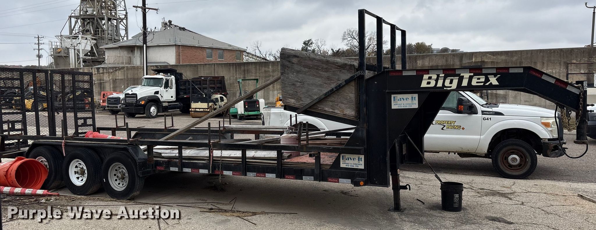 2016 Big Tex equipment trailer. VIN: 16VGX2439G2080315. Dimensions Overall Length: 32', Width: 8' 7", Deck Length: 25', Width: 7' 5", Side height: 12", Deck height: 24", Ramps: Manual Length: 5'. Features Deck type: Wood. Chassis Landing gear: Single, Suspension: Spring, Brakes: Electric, Axles: Triple. Tires Steel wheels, Size: ST235/80R16. Texas title. Title distribution may be delayed up to 30 days from verification of funds. Rose Paving. Frisco, TX 75035