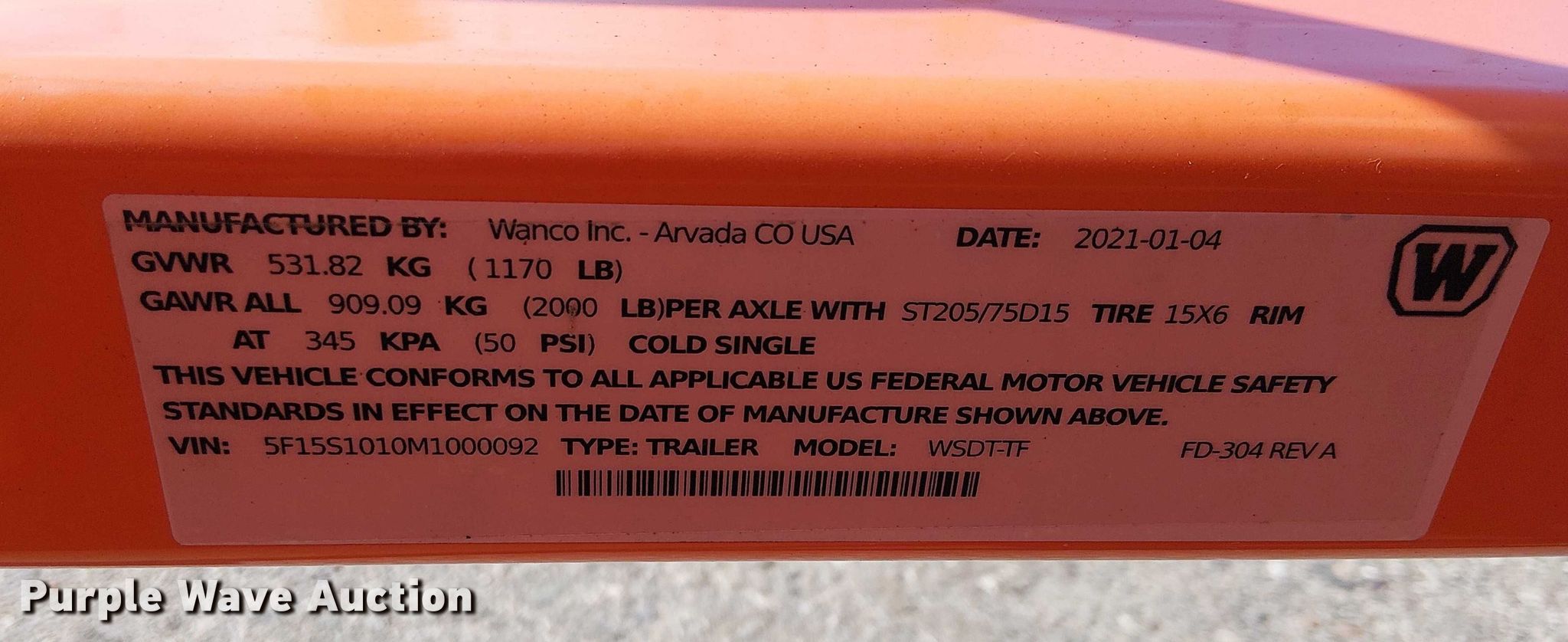 Purple Wave is selling a used Road Safety Equip. in California. This item is a 2021 Wanco WSDT3-F48 speed limit sign trailer with the following: Serial: 5F15S1010M1000092, Unit #: 104654