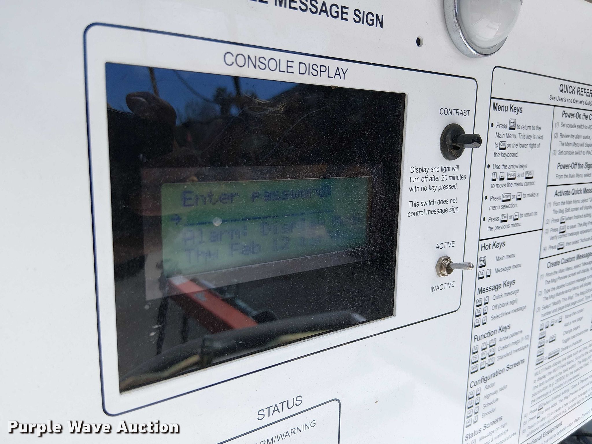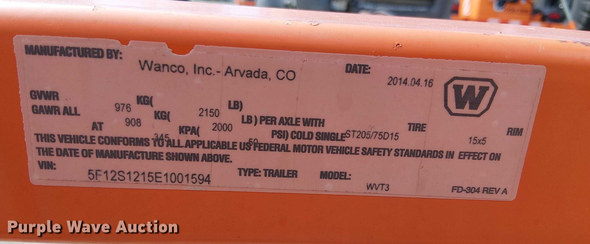 Purple Wave is selling a used Road Safety Equip. in California. This item is a 2014 Wanco WVT-3 message board trailer with the following: Serial: 5F12S1215E1001594, Unit #: 102331