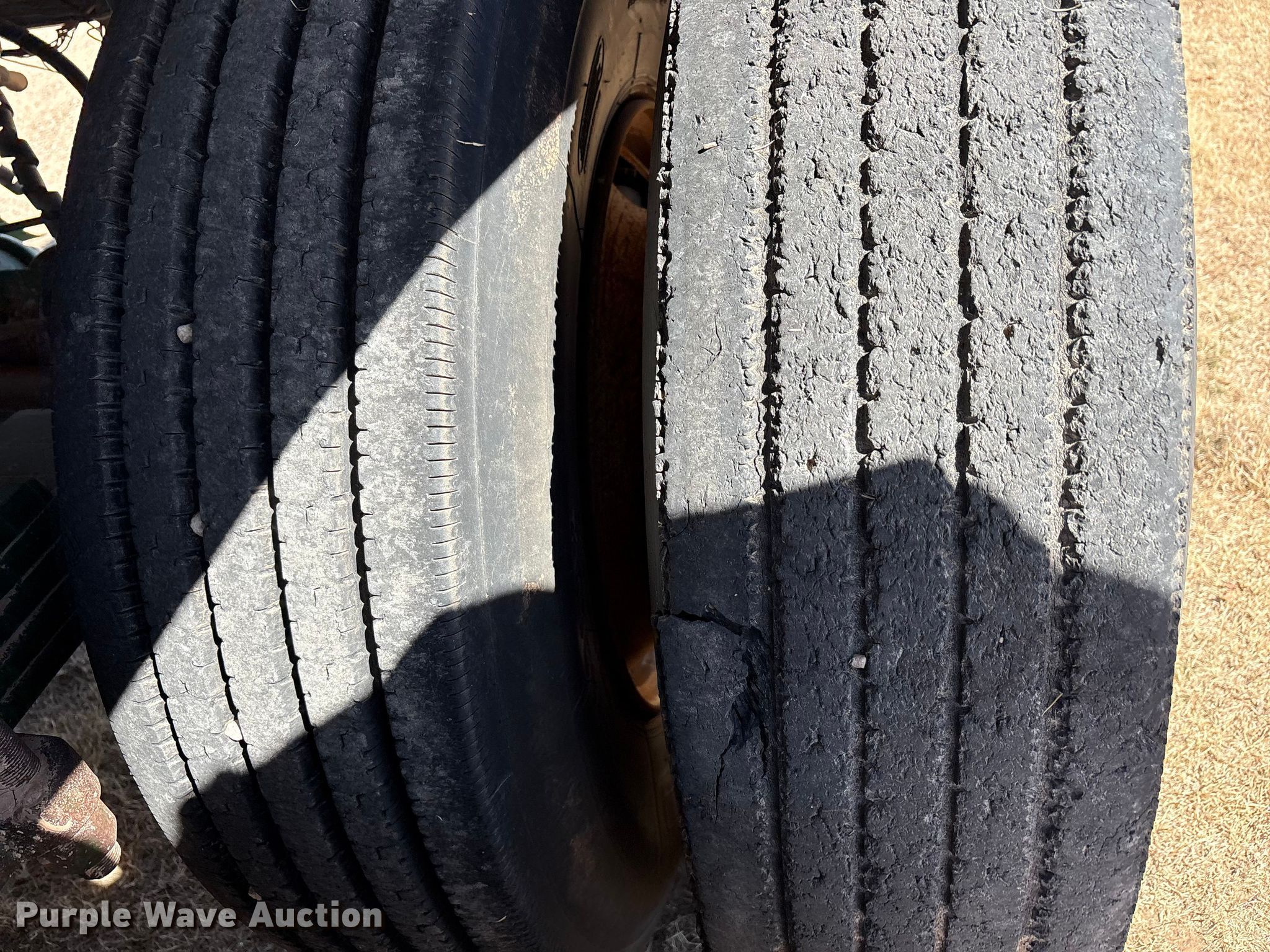 1996 Travis Body & Trailer S99 end dump trailer. VIN: 1T97J2425T1247899. Dimensions Overall Length: 24', Width: 8' 4", Body Length: 24', Width: 7' 6", Side height: 4' 8". Features Body type: Steel, Ram: Single, End gate: Manual. Chassis Landing gear: Dual, Suspension: Spring, Brakes: Air, Axles: Tandem, GVWR: 68,000 lbs, GAWR: 20,000 lbs. Tires Steel wheels, Size: 295/75R22.5, 315/80R22.5, 12R22.5. Notes Tire damage, cracked, Some tires off bead, Rear door issues, will not close. Texas title. Title distribution may be delayed up to 14 days from verification of funds. Estate of James C. Caddell. Lorenzo, TX 79343