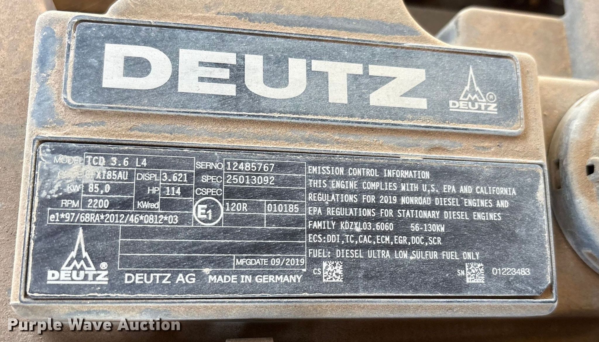 Kaeser M118 air compressor. Hours: 1,935 on meter, VIN: WKA0F2203N8435070, Serial: 1035 - 8835070. Engine Deutz TCD, Serial: 12485767, Displacement: 3.621L, Cylinders: 4, Fuel type: Diesel. Features Air compressor Kaeser M118, CFM: 405, PSI: 145. Trailer Ball hitch size: 2", Suspension: Torsion, Brakes: Hydraulic, Axles: Single, Tire size: ST215/75R14, GVWR: 4,462 lbs, GAWR: 4,850 lbs. This is worksite support equipment and will not come with a title. Transfer of ownership documentation will be a bill of sale. ASCO Equipment. Midland, TX 79701