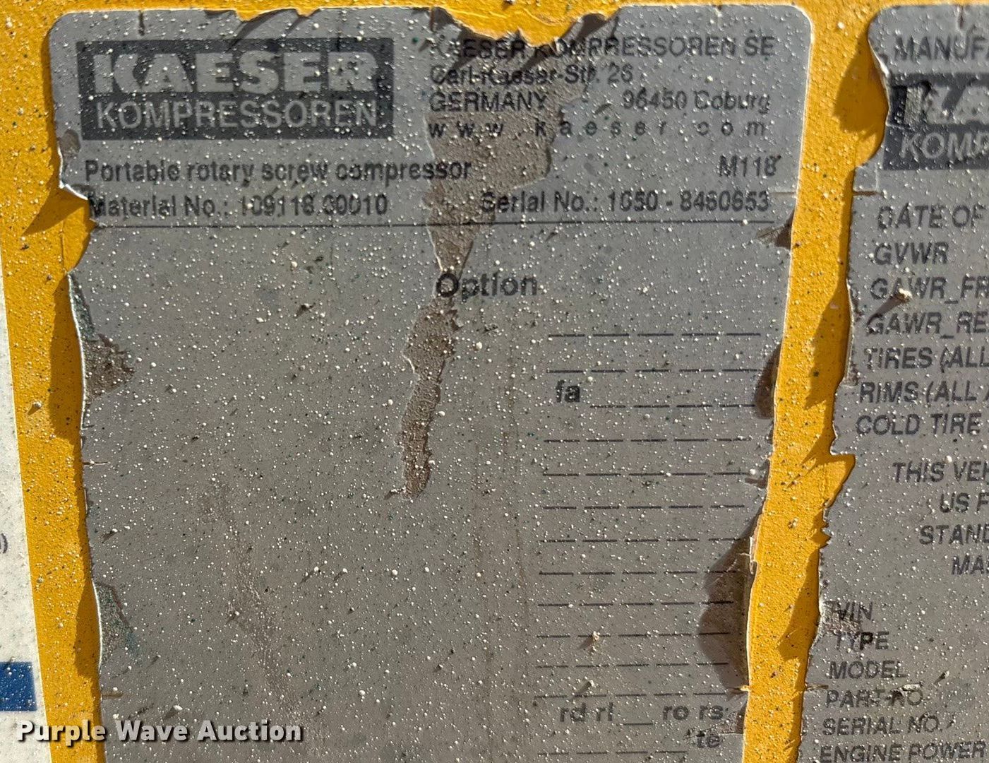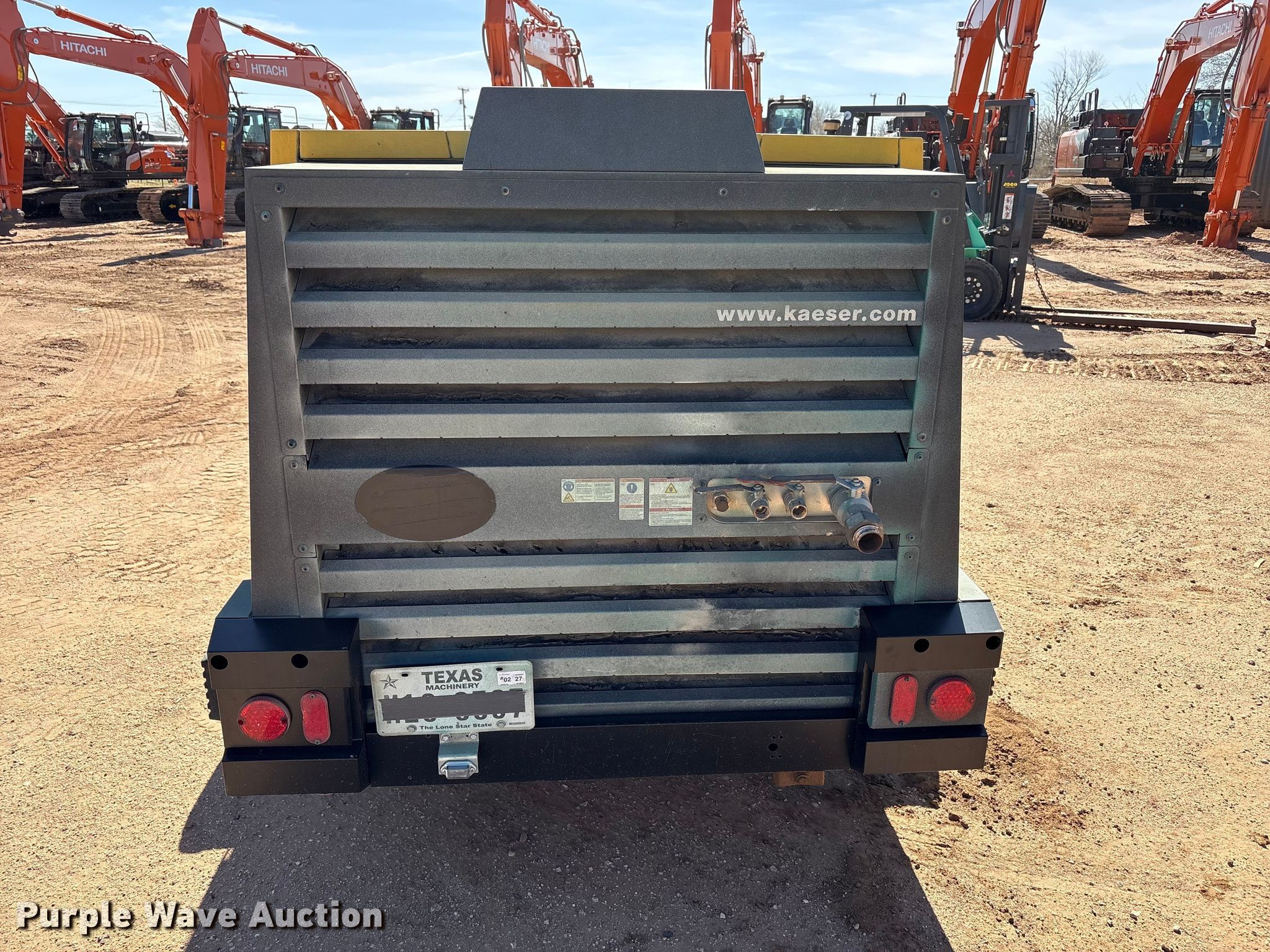 Purple Wave is selling a used Air Compressor in Texas. This item is a 2022 Kaeser M118 air compressor with the following: Hours: 3,588 on meter, VIN: WKAOF2203N8460653, Serial: 1050 - 8460653