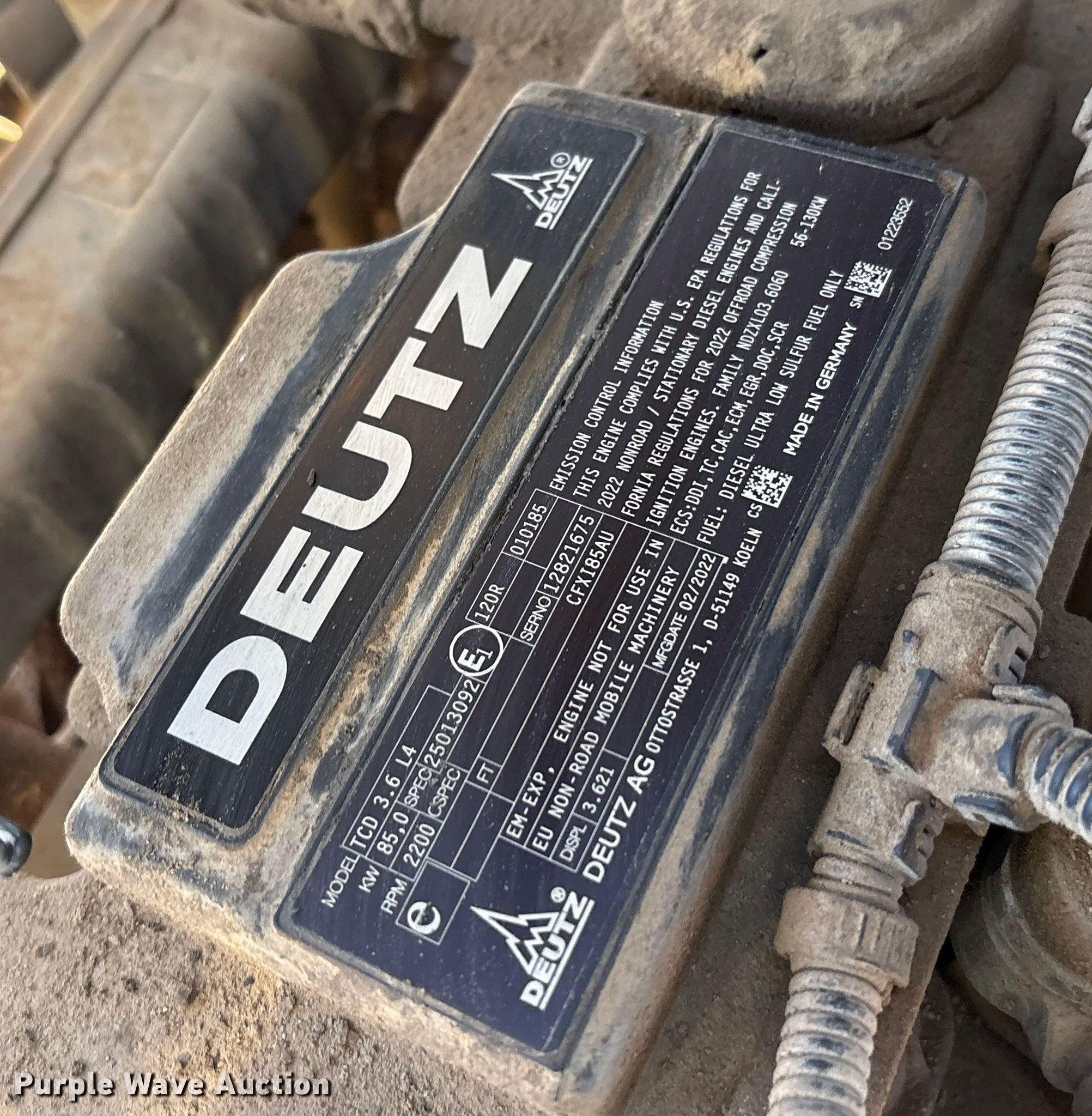 Kaeser M118 air compressor. Hours: 2,485 on meter, VIN: WKAOF2203N8807890, Serial: 1018 - 8807890. Engine Deutz TCD, Serial: 12821675, Displacement: 3.621 L, Cylinders: 4, Fuel type: Diesel. Features Air compressor Kaeser M118, CFM: 405, PSI: 145. Trailer Ball hitch size: 2", Suspension: Torsion, Brakes: Hydraulic, Axles: Single, Tire size: 215/75R14, GVWR: 4,462 lbs, GAWR: 4,850 lbs. Notes Oil leaks. This is worksite support equipment and will not come with a title. Transfer of ownership documentation will be a bill of sale. ASCO Equipment. Midland, TX 79701