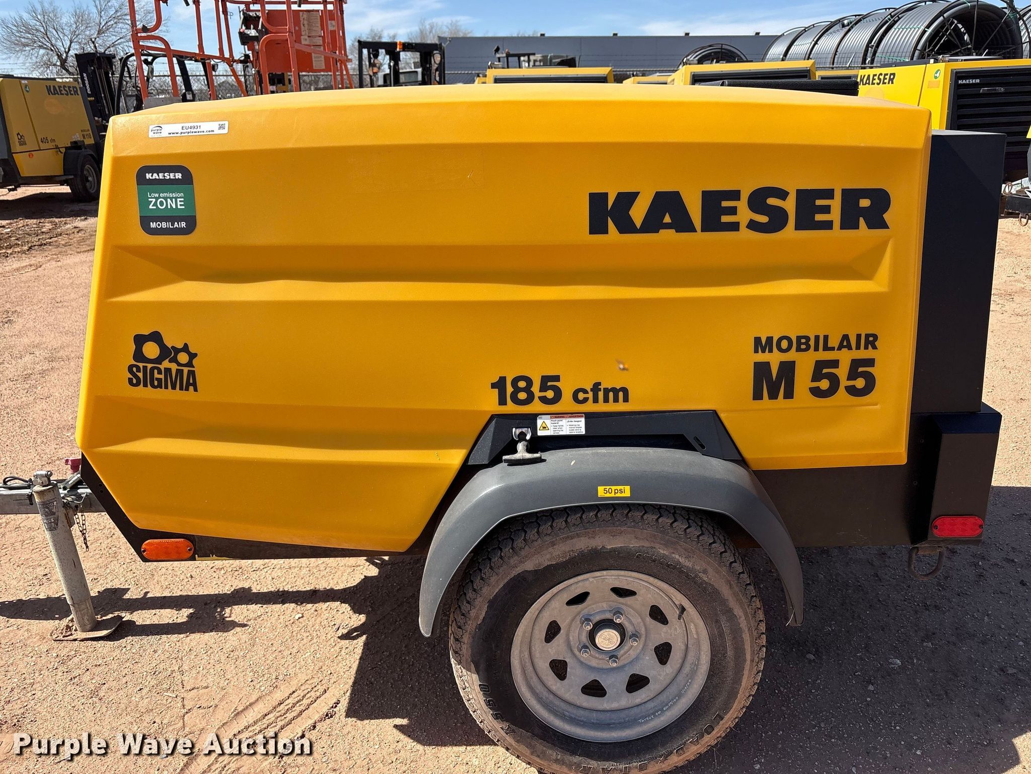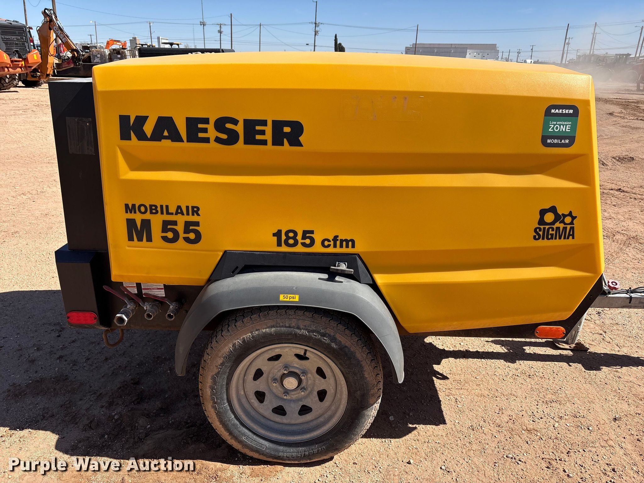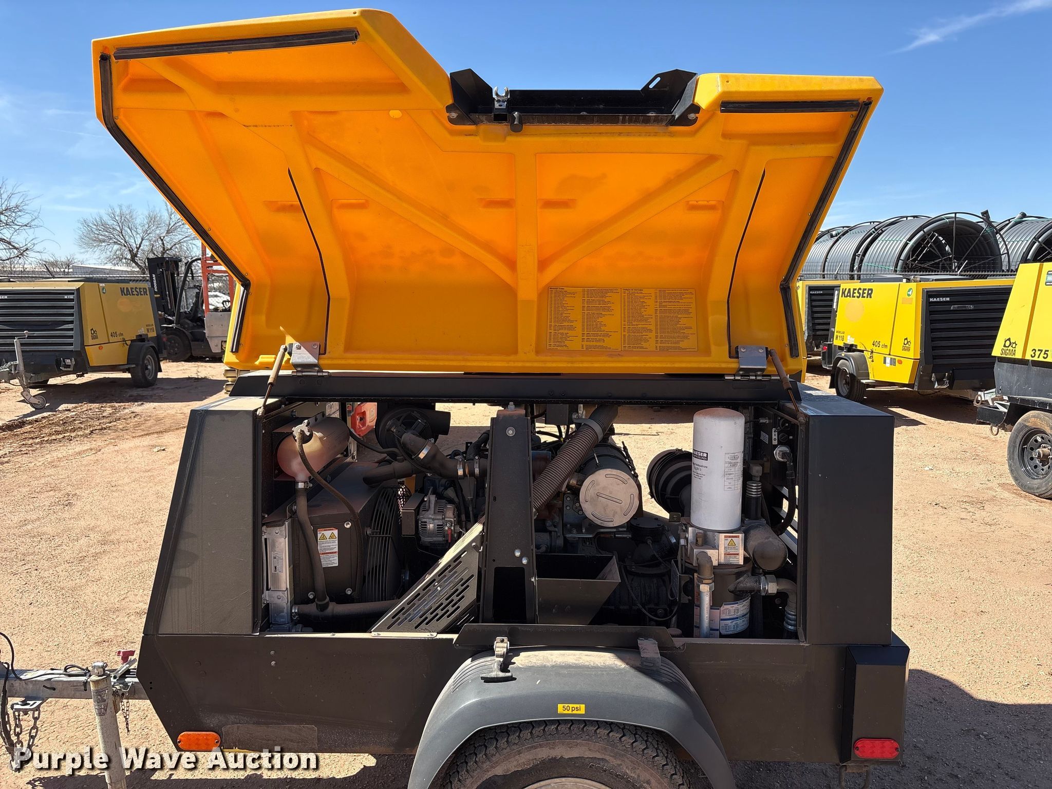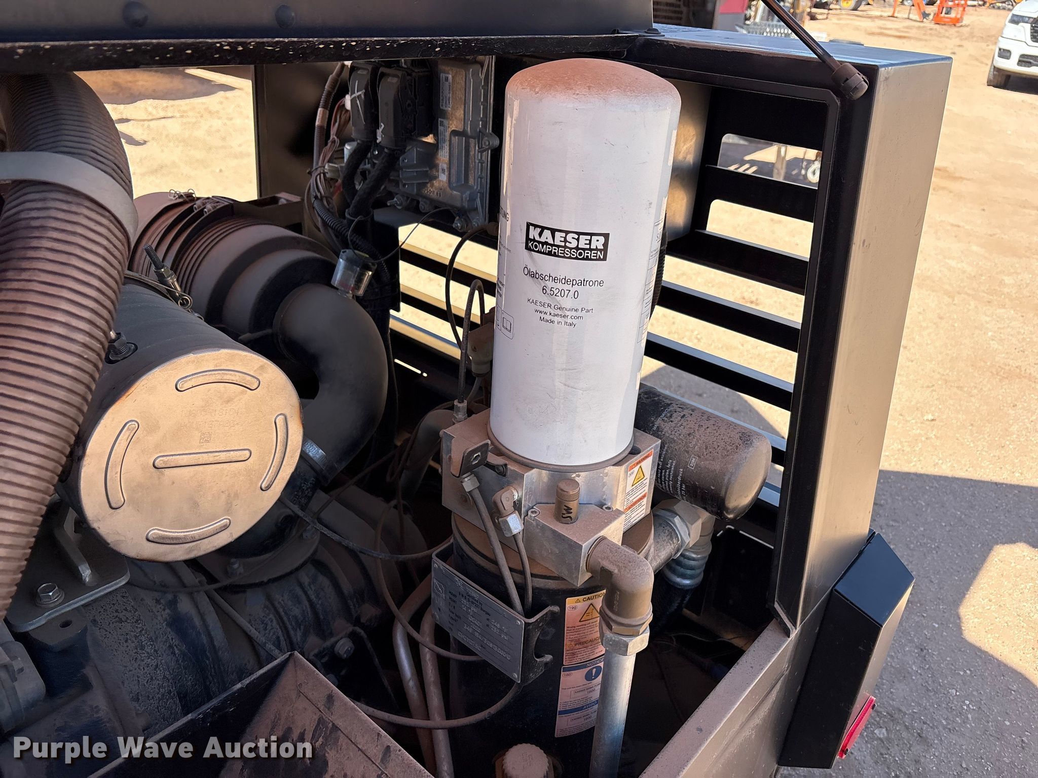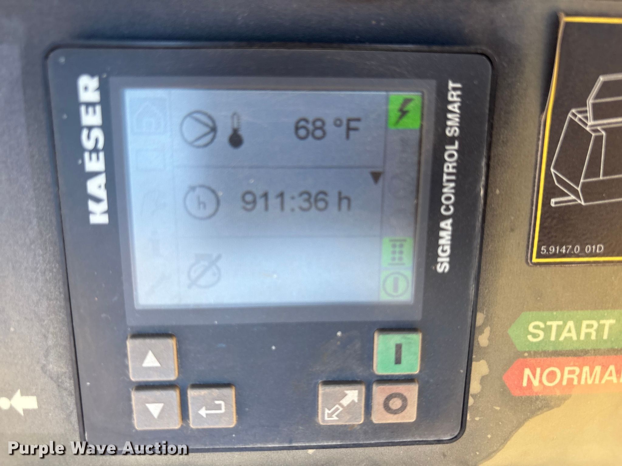 Purple Wave is selling a used Air Compressor in Texas. This item is a Kaeser M55 air compressor with the following: Hours: 911 on meter, VIN: WKAON1000M8291049, Serial: 1334 - 8291049