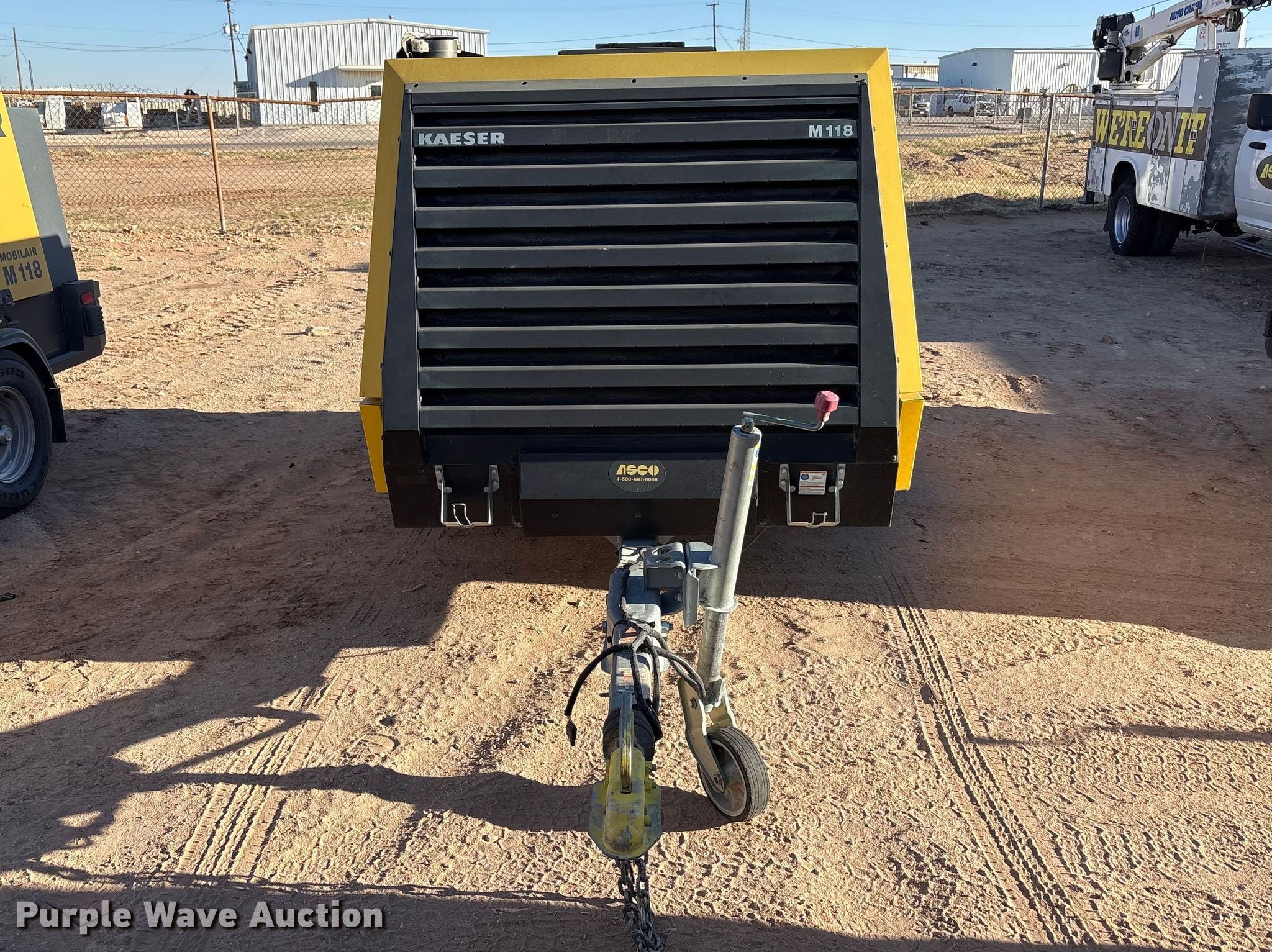 2022 Kaeser M118 air compressor. Hours: 943 on meter, VIN: WKAOF2203N8773507, Serial: 1008 - 8773507, Unit #: 143052. Engine Deutz TCD 3.6 L4, Serial: 12517424, Displacement: 3.621 L, Cylinders: 4, Fuel type: Diesel. Features Air compressor Kaeser kompressoren M118, CFM: 405, PSI: 145. Trailer Ball hitch size: 2", Suspension: Torsion, Brakes: Hydraulic, Axles: Single, Tire size: 215R14C, GVWR: 4,462 lbs, GAWR: 4,850 lbs. This is worksite support equipment and will not come with a title. Transfer of ownership documentation will be a bill of sale. ASCO Equipment. Odessa, TX 79764