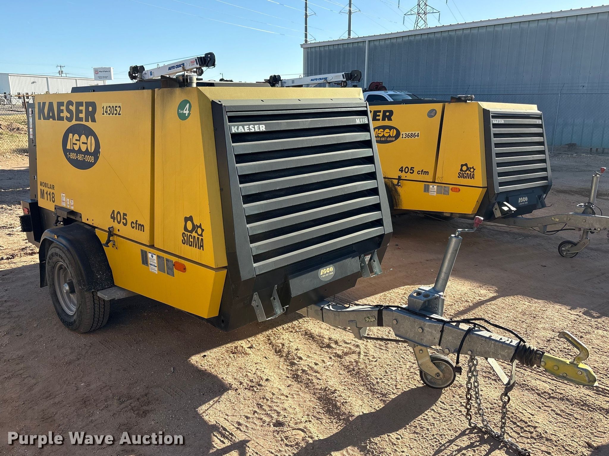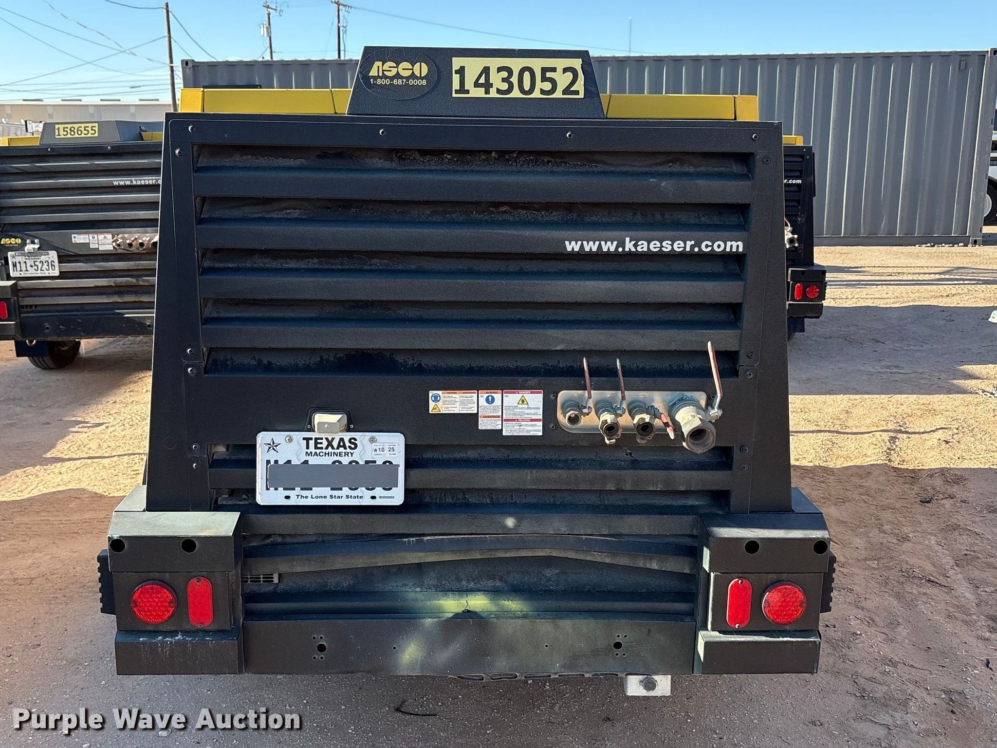 Purple Wave is selling a used Air Compressor in Texas. This item is a 2022 Kaeser M118 air compressor with the following: Hours: 943 on meter, VIN: WKAOF2203N8773507, Serial: 1008 - 8773507, Unit #: 143052