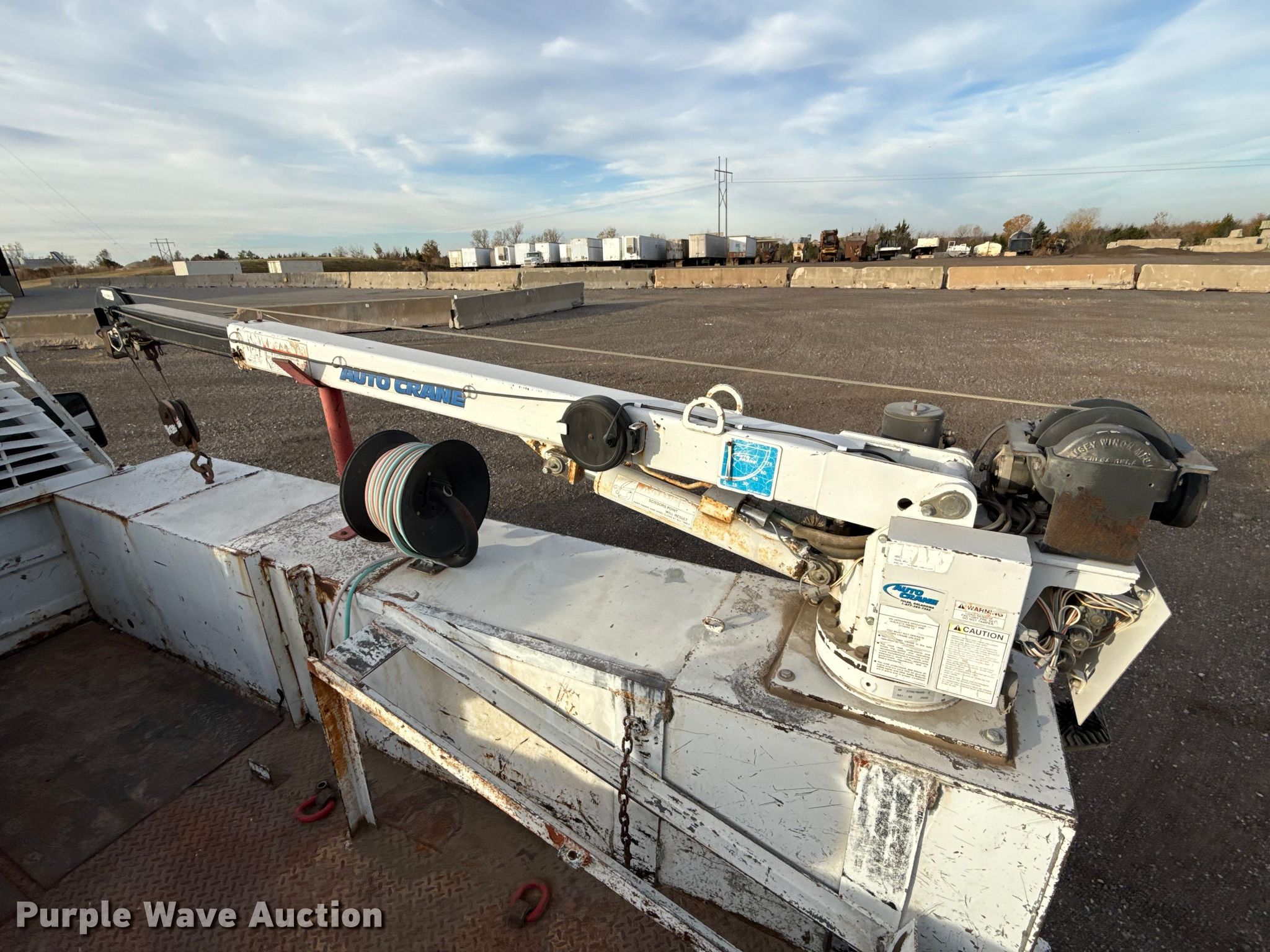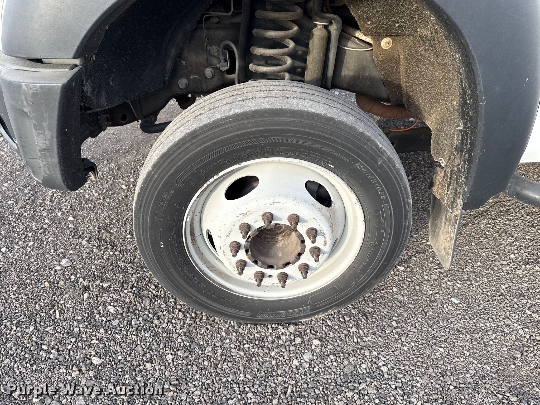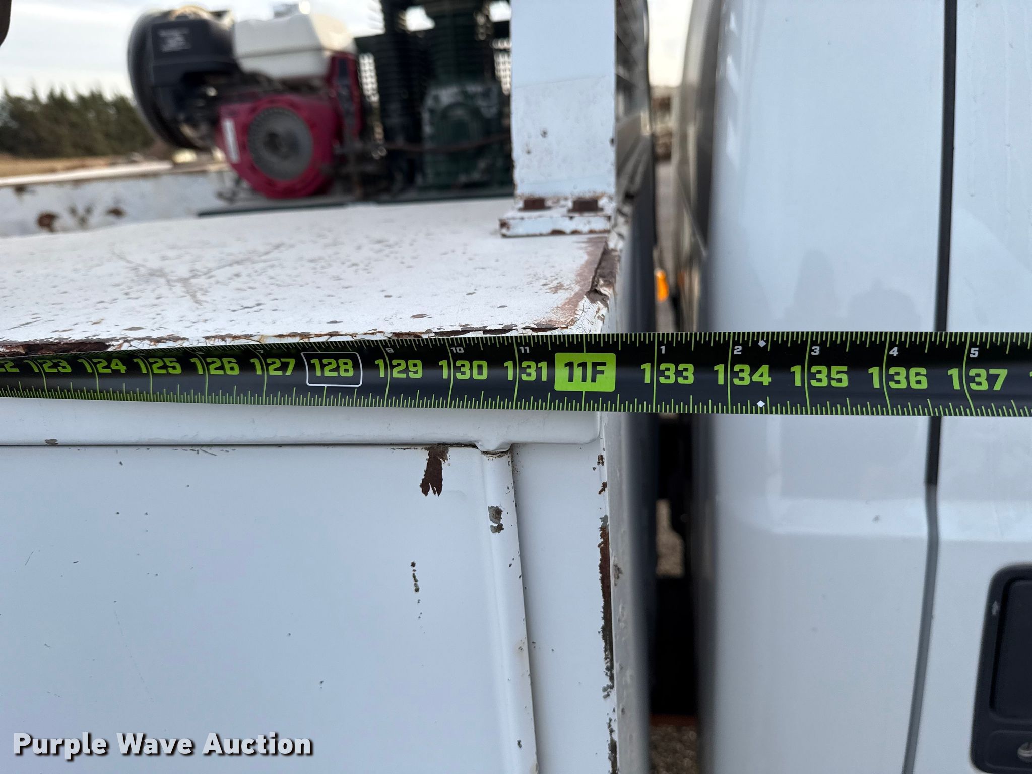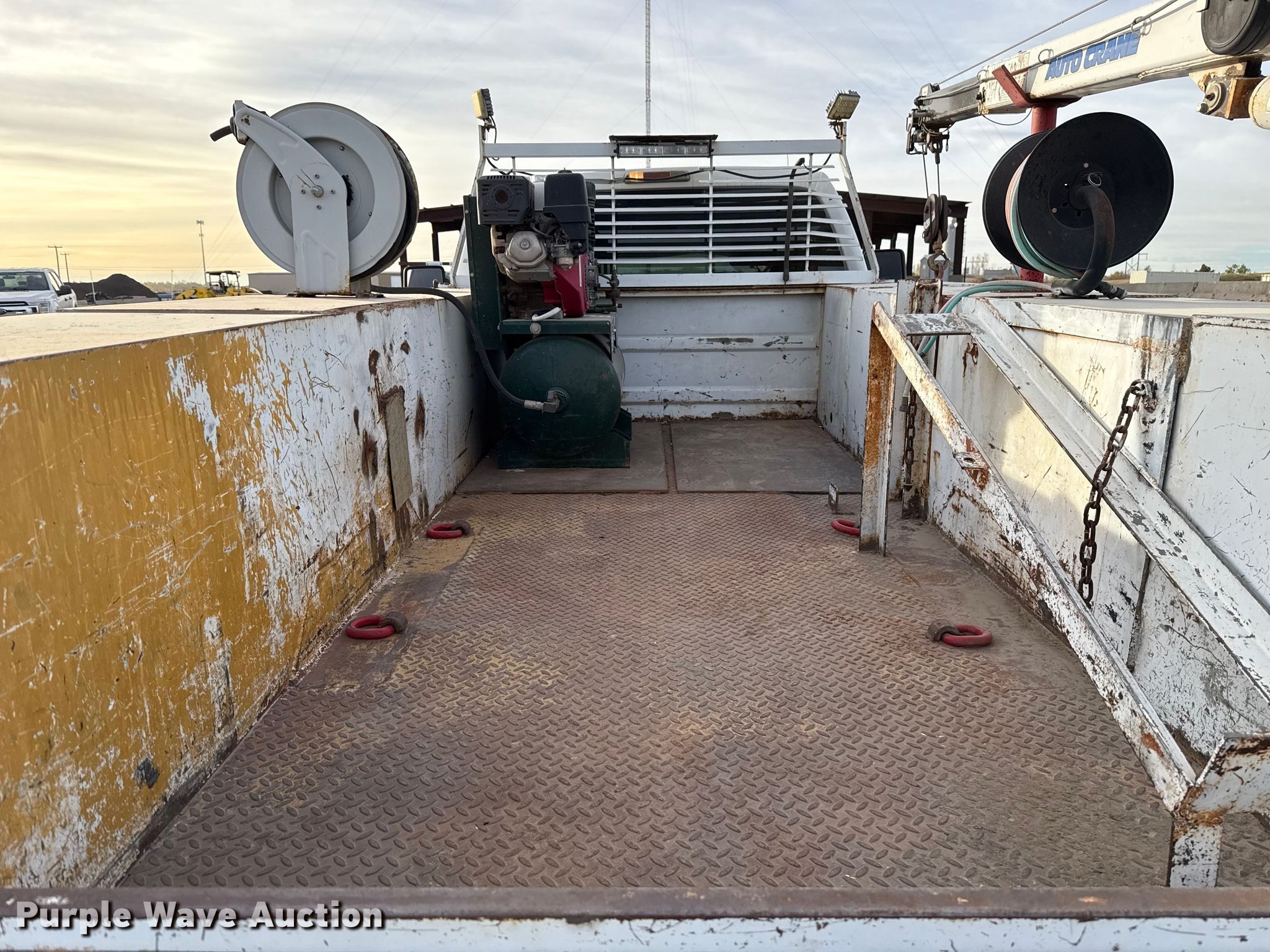 2013 Ford F550 utility / service truck. Miles: 180,001 on odometer, VIN: 1FDUF5GY6DEB10645, Unit #: 117.308. Engine Displacement: 6.8L, Cylinders: 10, Fuel type: Gas. Transmission Automatic. Chassis Axles: Single, Suspension: Spring, Brakes: Hydraulic, GVWR: 19,500 lbs. Interior AC, Heat, Auxiliary controls. Features Bed Utility bed, RKI, Length: 11', Width: 94" Kinair, Crane Autocrane, Maximum lift capacity: 3,200 lbs. Tires Size: 225/70R19.5. Notes Windshield chipped or cracked, Unknown operating condition of air compressor. Oklahoma title. Title distribution may be delayed up to 30 days from verification of funds. Duit Holdings, Inc.. 7183 East Waterloo Industrial Road. Edmond, OK 73034