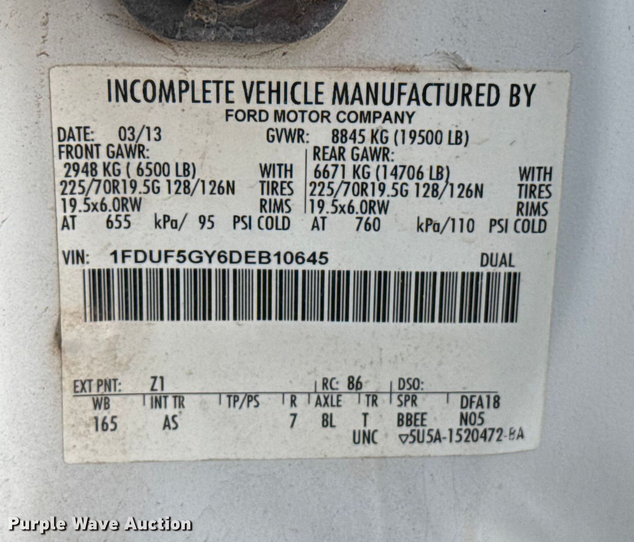 - VIN: 1FDUF5GY6DEB10645