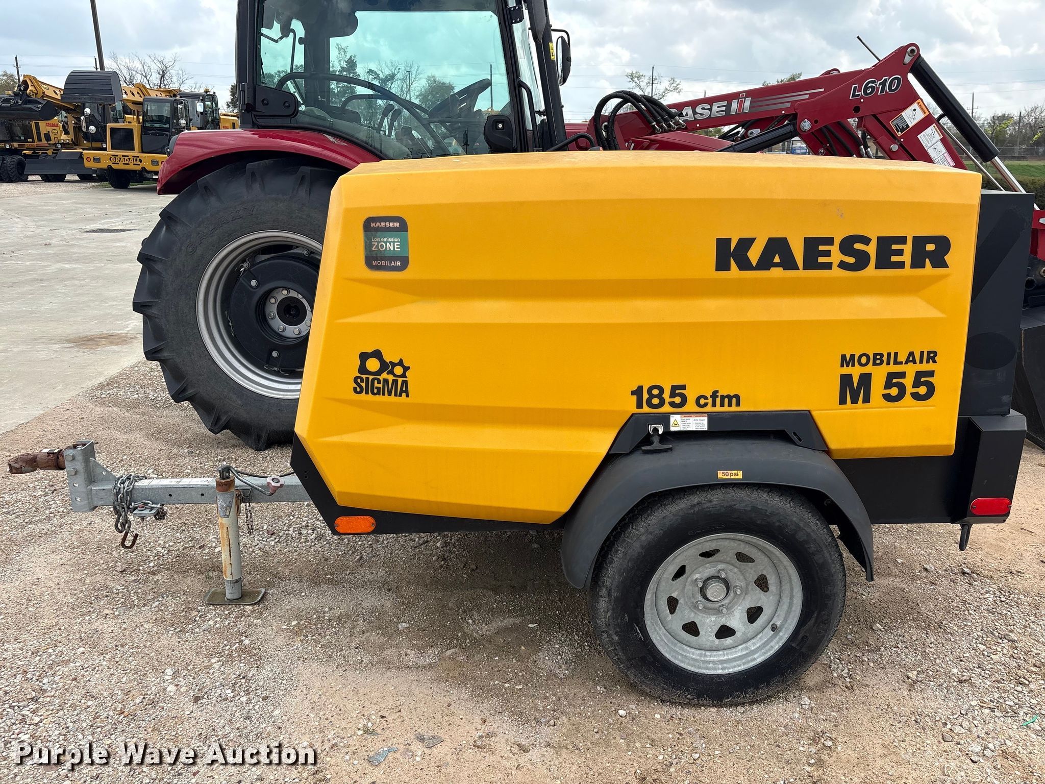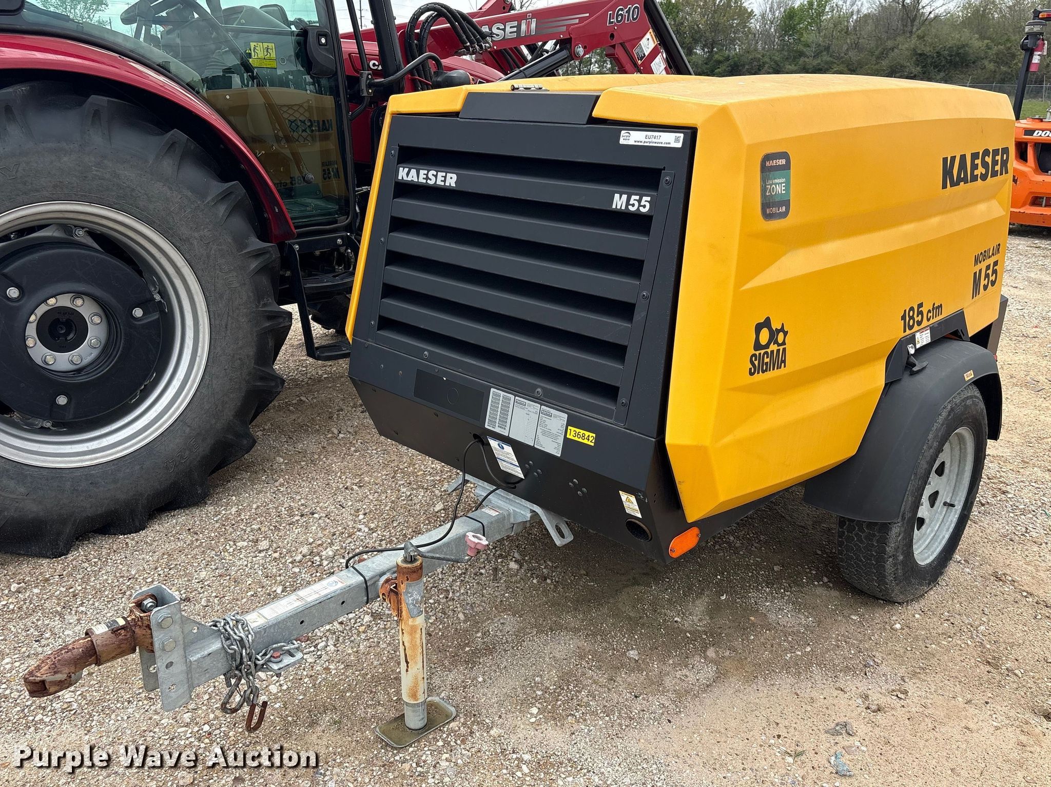 2021 Kaeser M55 air compressor. Hours: 852 on meter, VIN: WKA0N1000M8345572, Serial: 1373-8345572. Engine Kubota, Cylinders: 3, Fuel type: Diesel. Features Air compressor Kaeser Kompressoren M55, CFM: 185, PSI: 125. Trailer Ball hitch size: 2", Suspension: Torsion, Axles: Single, Tire size: 205/75D15, GVWR: 1,986 lbs, GAWR: 2,025 lbs. This is worksite support equipment and will not come with a title. Transfer of ownership documentation will be a bill of sale. ASCO Equipment. Houston, TX 77032