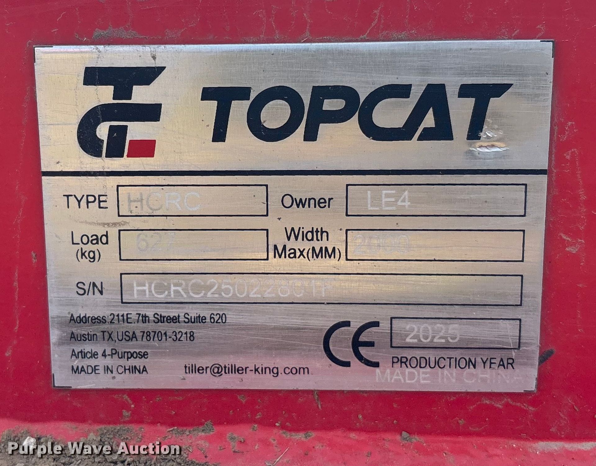 Take a look at this used 2025 TopCat HCRC skid steer brush cutter being sold on March 26th, 2026 in the Thursday March 26 Construction Equipment Auction made by TopCat. Take a look at all of the item information below or take a look at similar auctions for Skid Steer Loaders.
