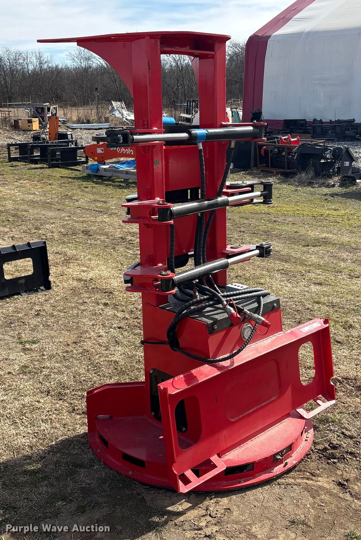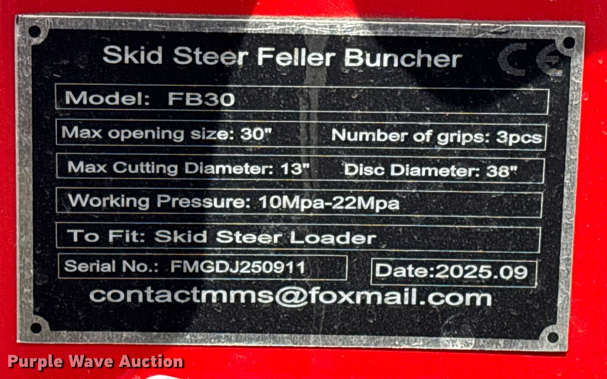 Purple Wave is selling a used Skid Steer Attach. in Oklahoma. This item is a 2025 GIYI FB30 skid steer feller buncher with the following: Serial: FMGDJ250911, Height: 76", Max Opening: 30"