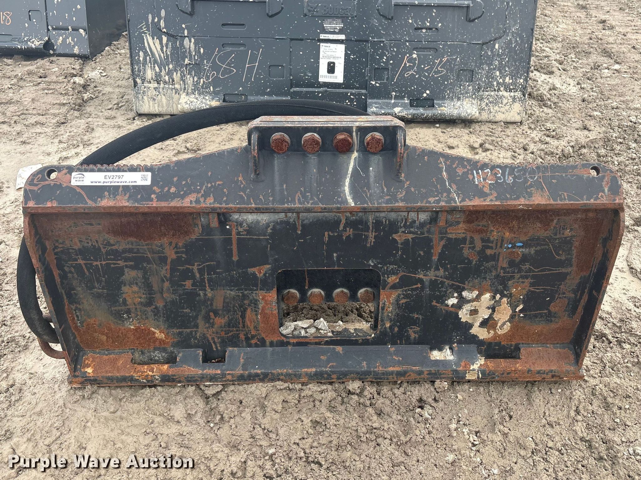Purple Wave is selling a used Skid Steer Attach. in Oklahoma. This item is a Stanley MB5570 skid steer breaker with the following: Unit #: 1123650