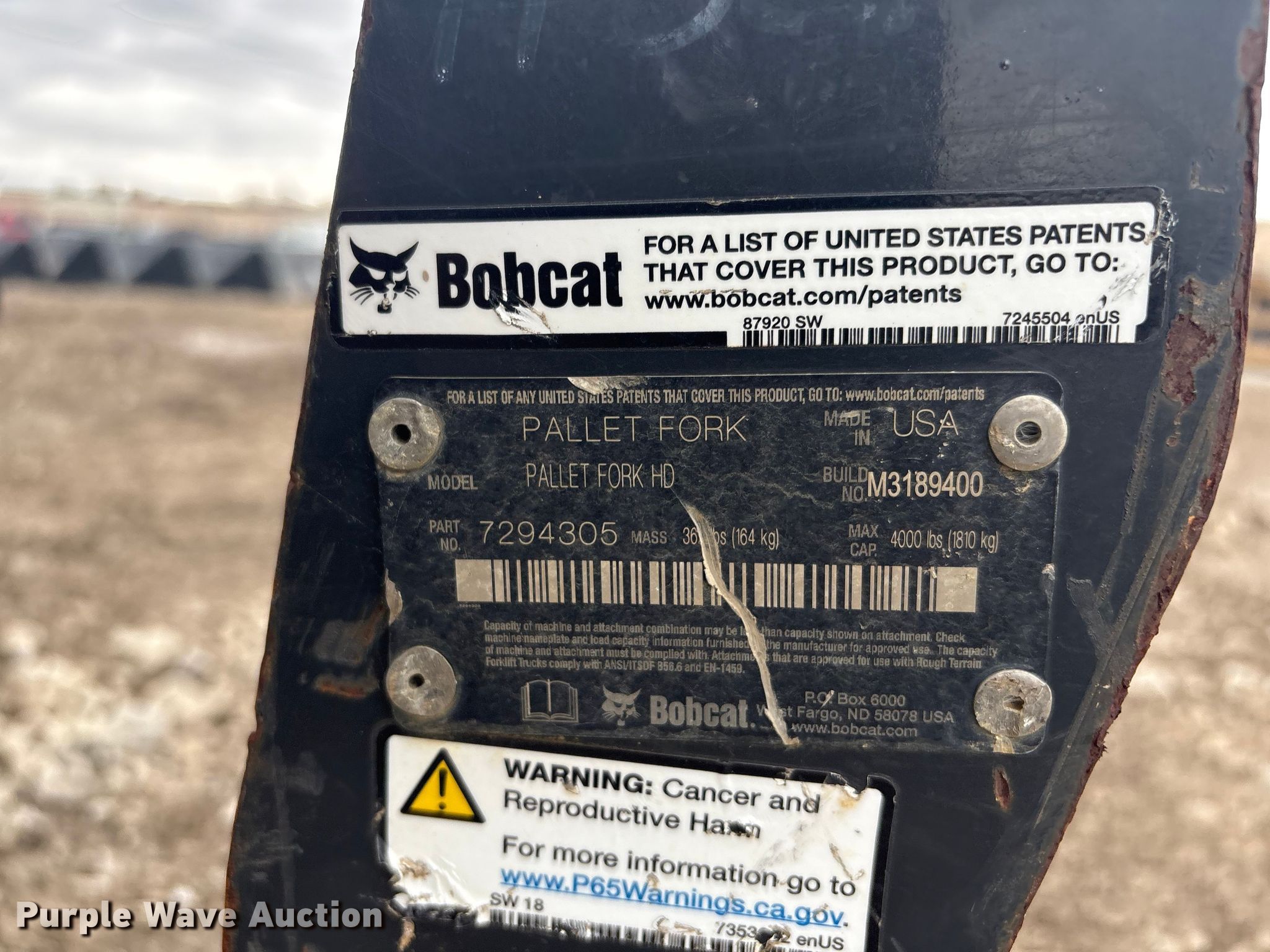 Purple Wave is selling a used Skid Steer Attach. in Oklahoma. This item is a Bobcat Pallet Fork HD skid steer forks with the following: Serial: 7294305, Length: 48"