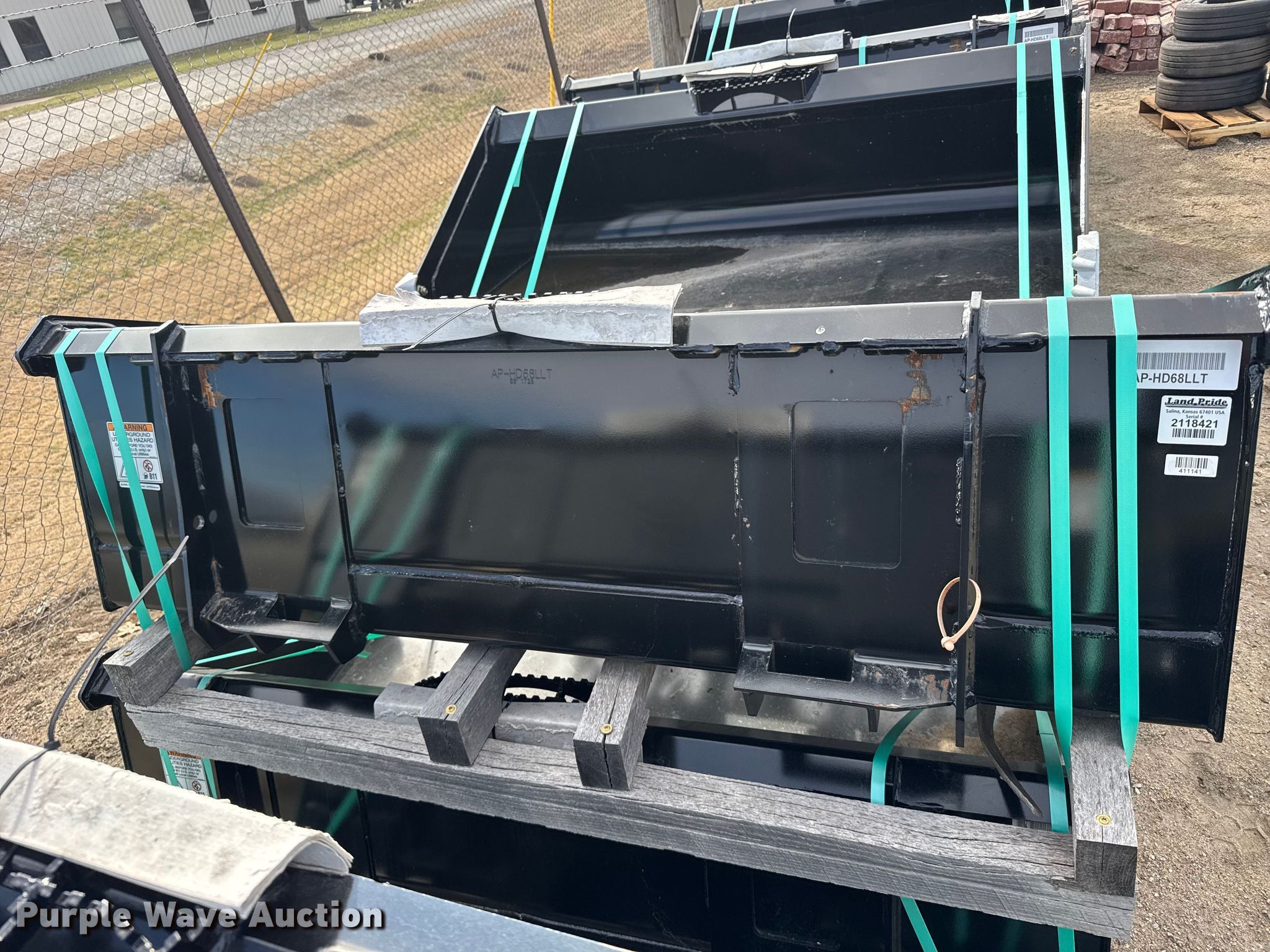 Land Pride skid steer bucket. Serial: 2118421, Width: 68", Teeth: Weld-on. Salina, KS 67401