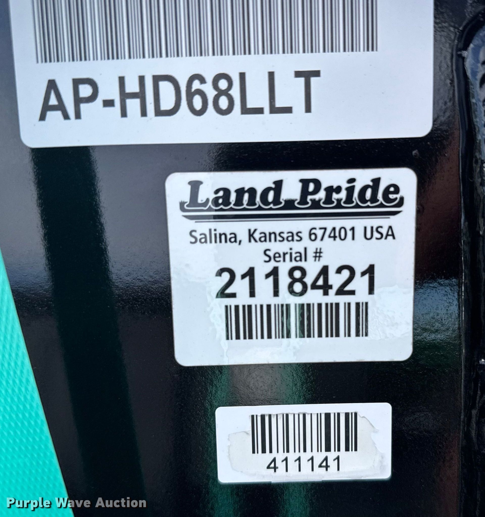 Purple Wave is selling a used Skid Steer Attach. in Kansas. This item is a Land Pride skid steer bucket with the following: Serial: 2118421, Width: 68", Teeth: Weld-on