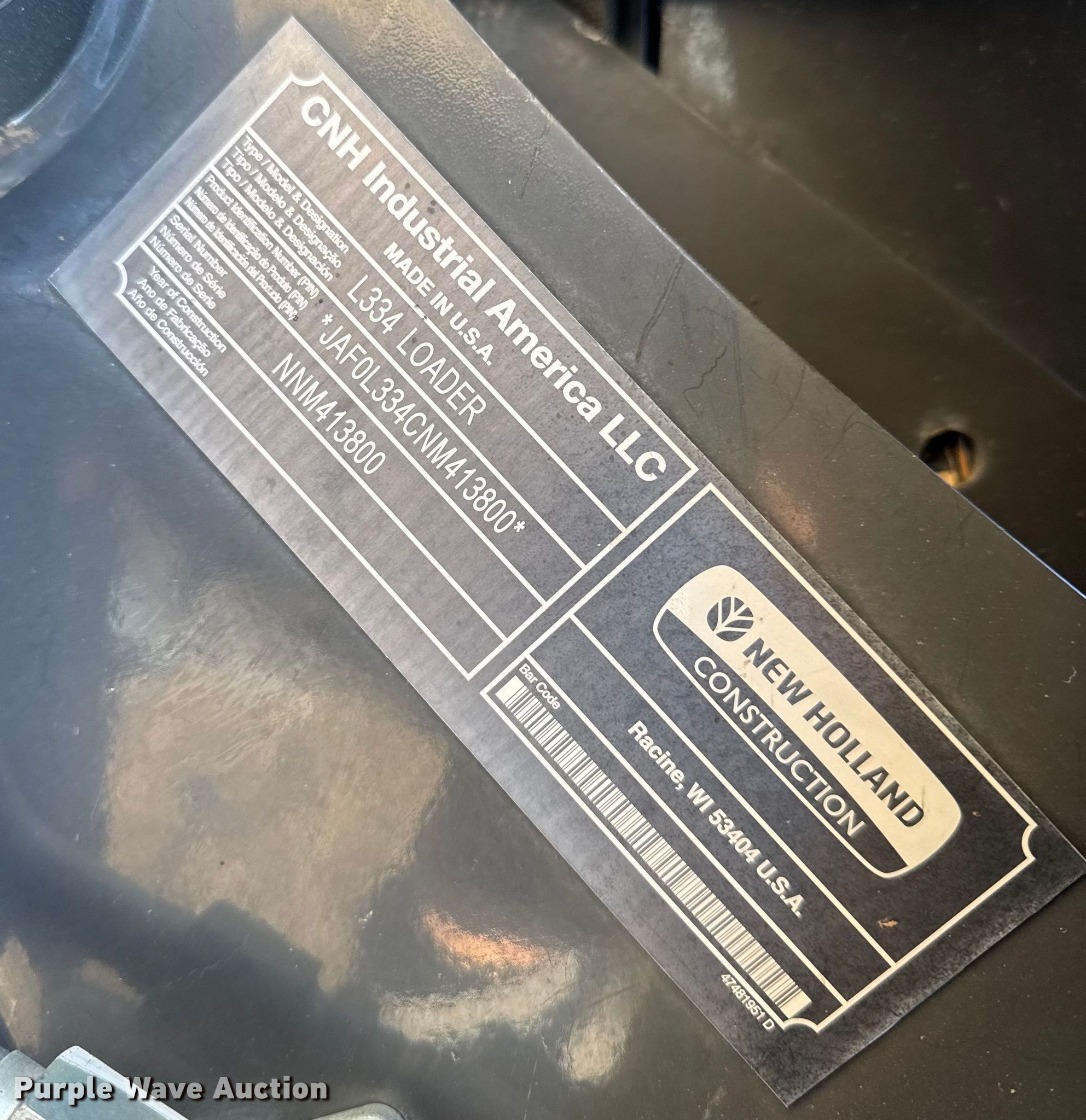 Purple Wave is selling a used Skid Steer Loader in Kansas. This item is a 2022 New Holland L334 skid steer loader with the following: Hours: 1,100 on meter, Serial: NNM413800