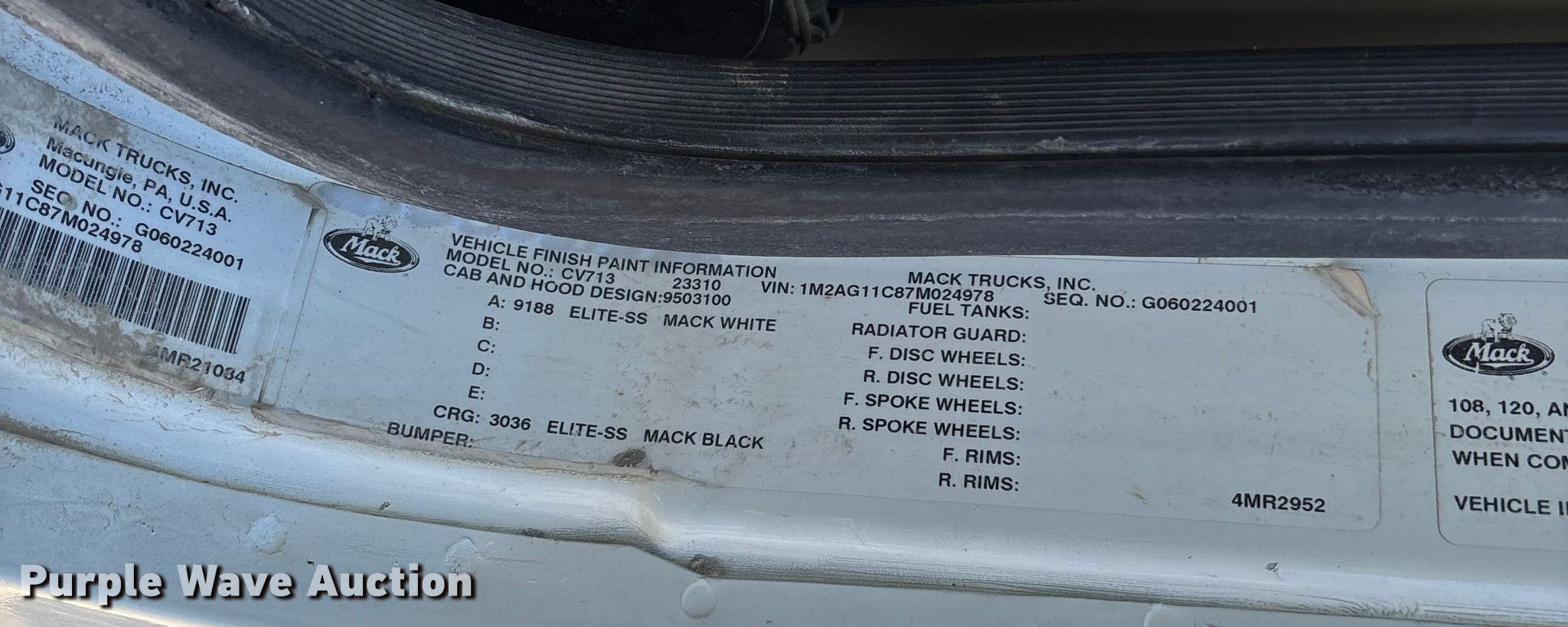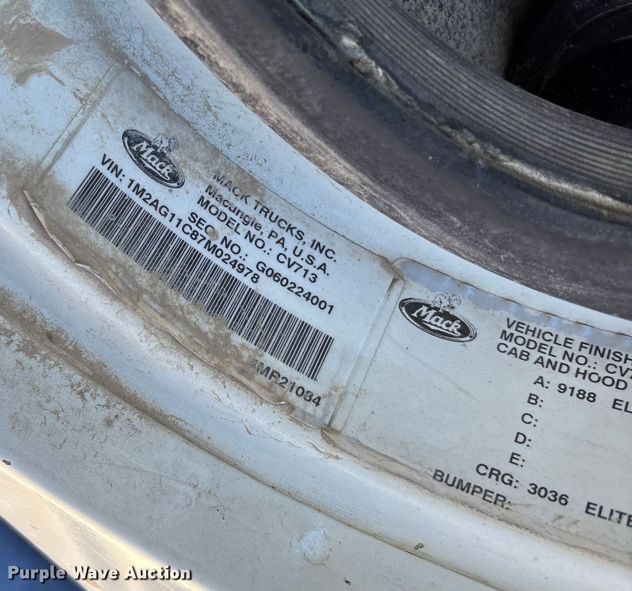 Take a look at this used 2007 Mack CV713 roll-off container truck being sold on March 26th, 2026 in the Thursday March 26 Construction Equipment Auction made by Mack. Take a look at all of the item information below or take a look at similar auctions for Trucks.