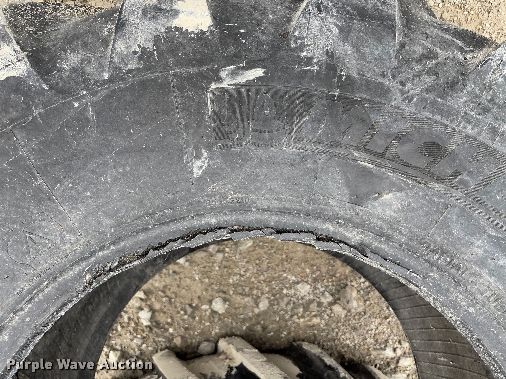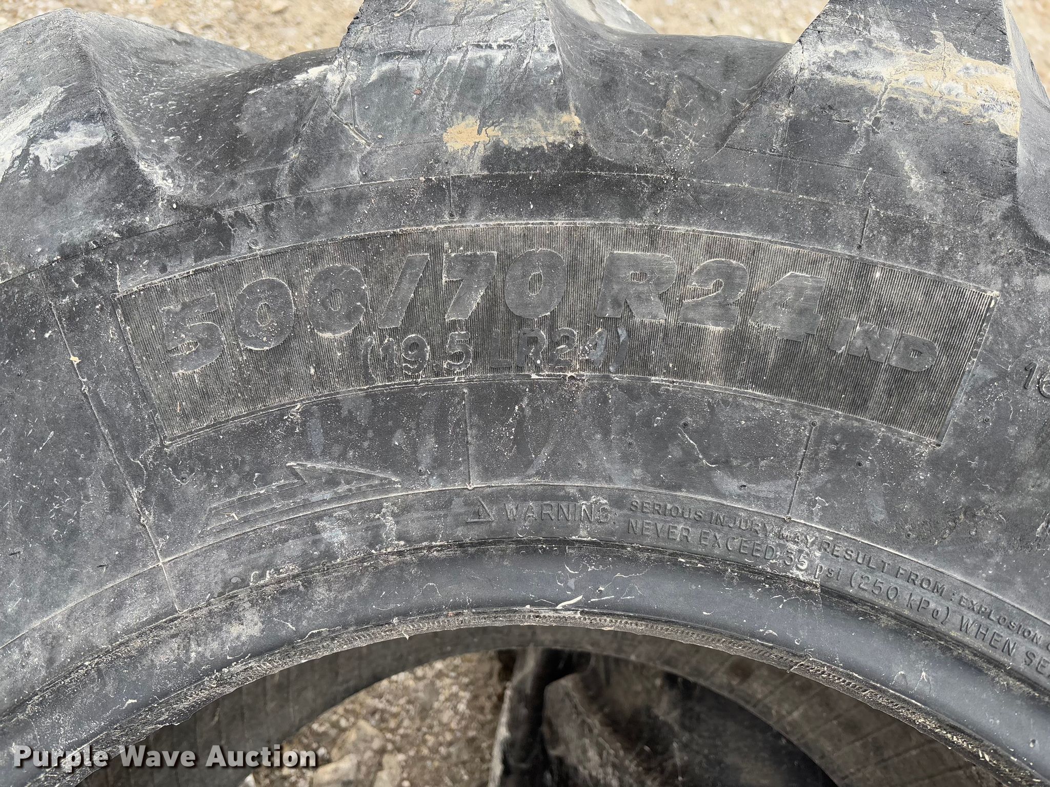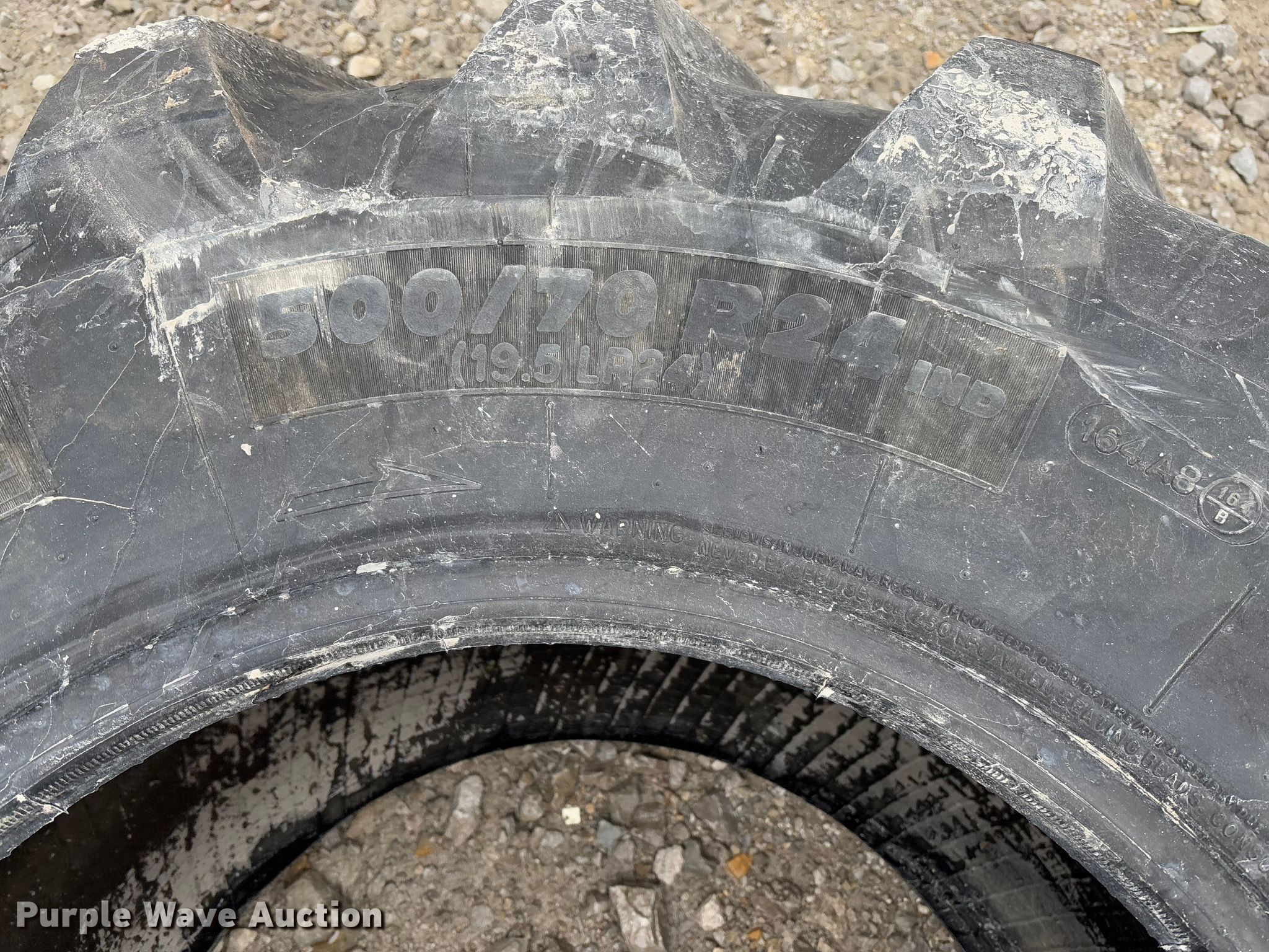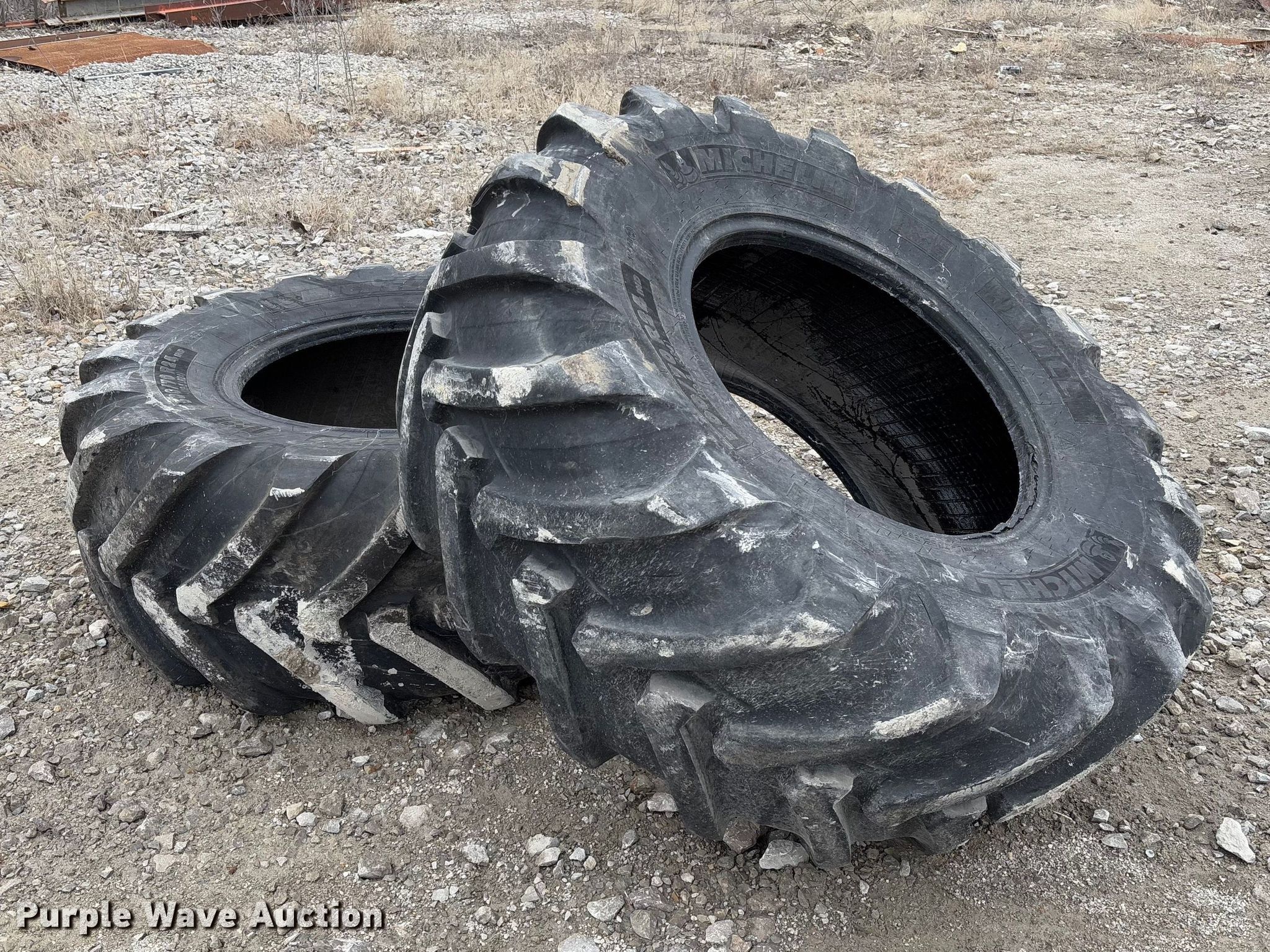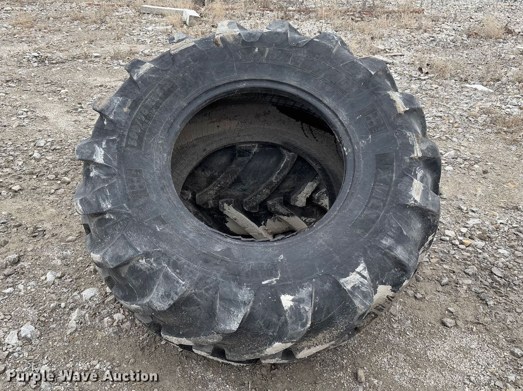 Purple Wave is selling a used Industrial Tires or Tracks in Missouri. This item is a (2) Michelin 500/70R24 tires with the following: (2) Michelin 500/70R24 tires. Trager Limestone LLC. Utica, MO 64686