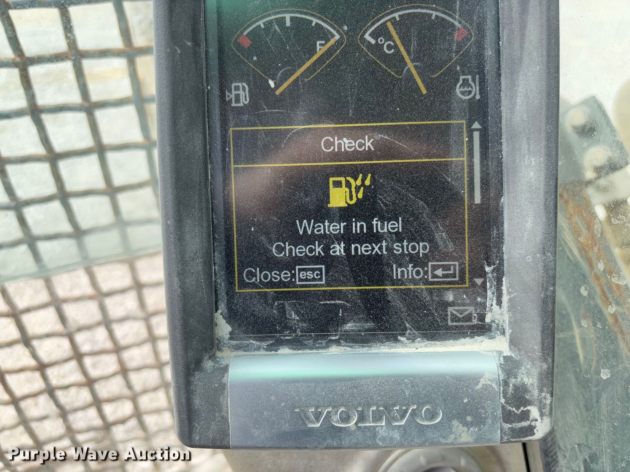 2008 Volvo EC210CL excavator. Hours: 8,877 on meter, Serial: VCEC210CP00111154. Engine Volvo D6E EAE3, Displacement: 5.7L, Cylinders: 6, Fuel type: Diesel. Transmission Hydrostatic, Two speed travel. Operators station Enclosed cab, AC, Heat, Pattern changer. Features Auxiliary hydraulics Standard, Counter weights, Boom Standard, Stick Stick length: 9' 6", Bucket Width: 40", Teeth: 5. Tracks Width: 31.5", Steel, Grouser pads: Triple. Notes Warning indicator: Water in fuel, Check engine, Glass cracked, Hydraulic issues, leak, Engine issues, overheats , Engine oil leak. Duffield Gravel. Jasper, AR 72641