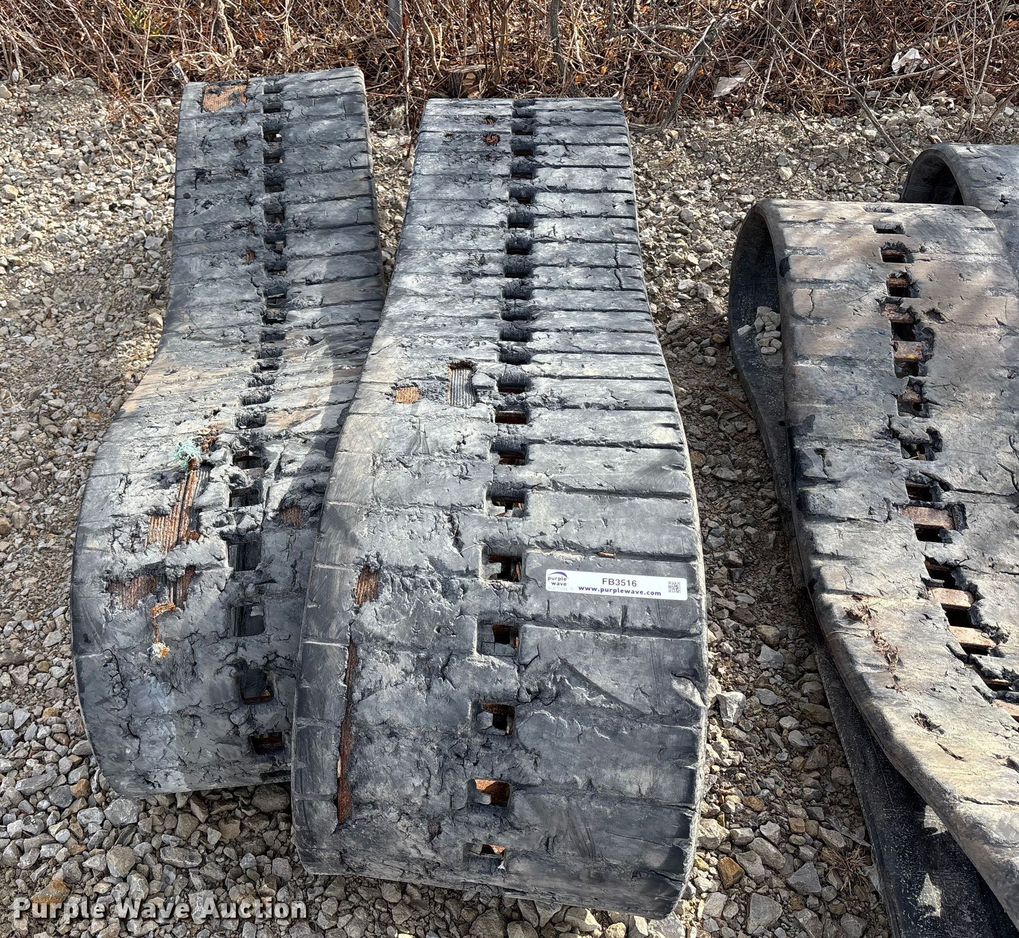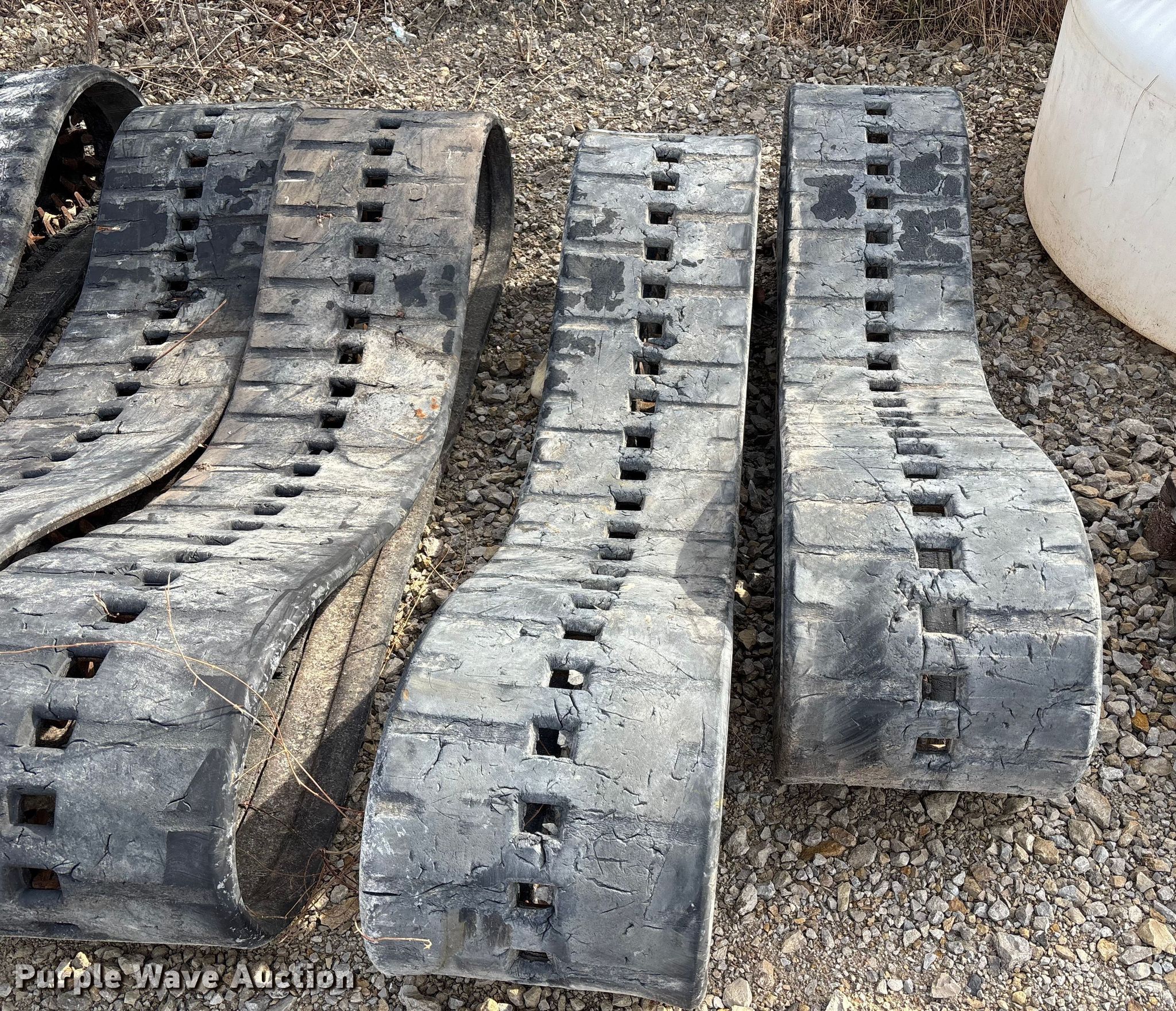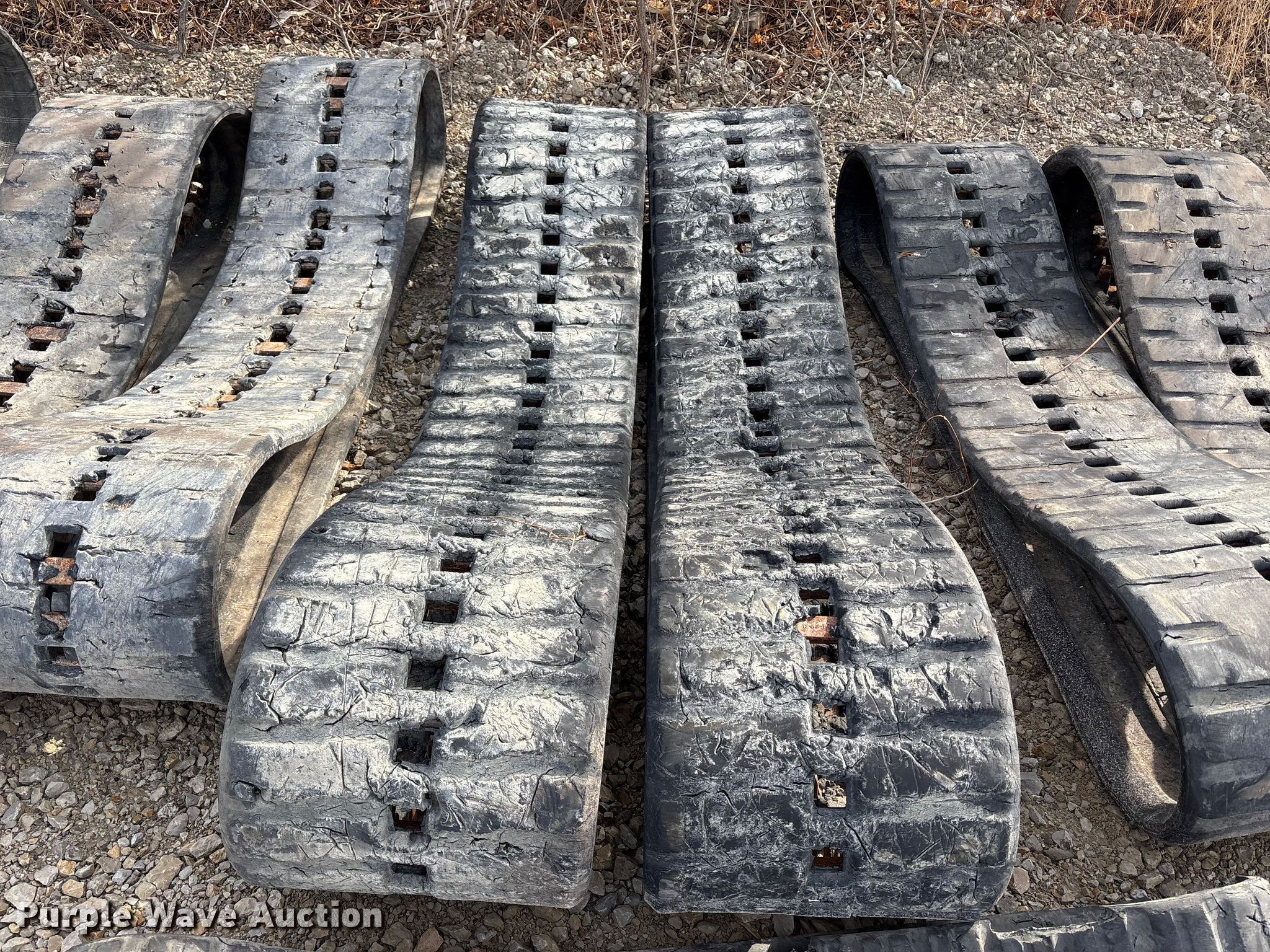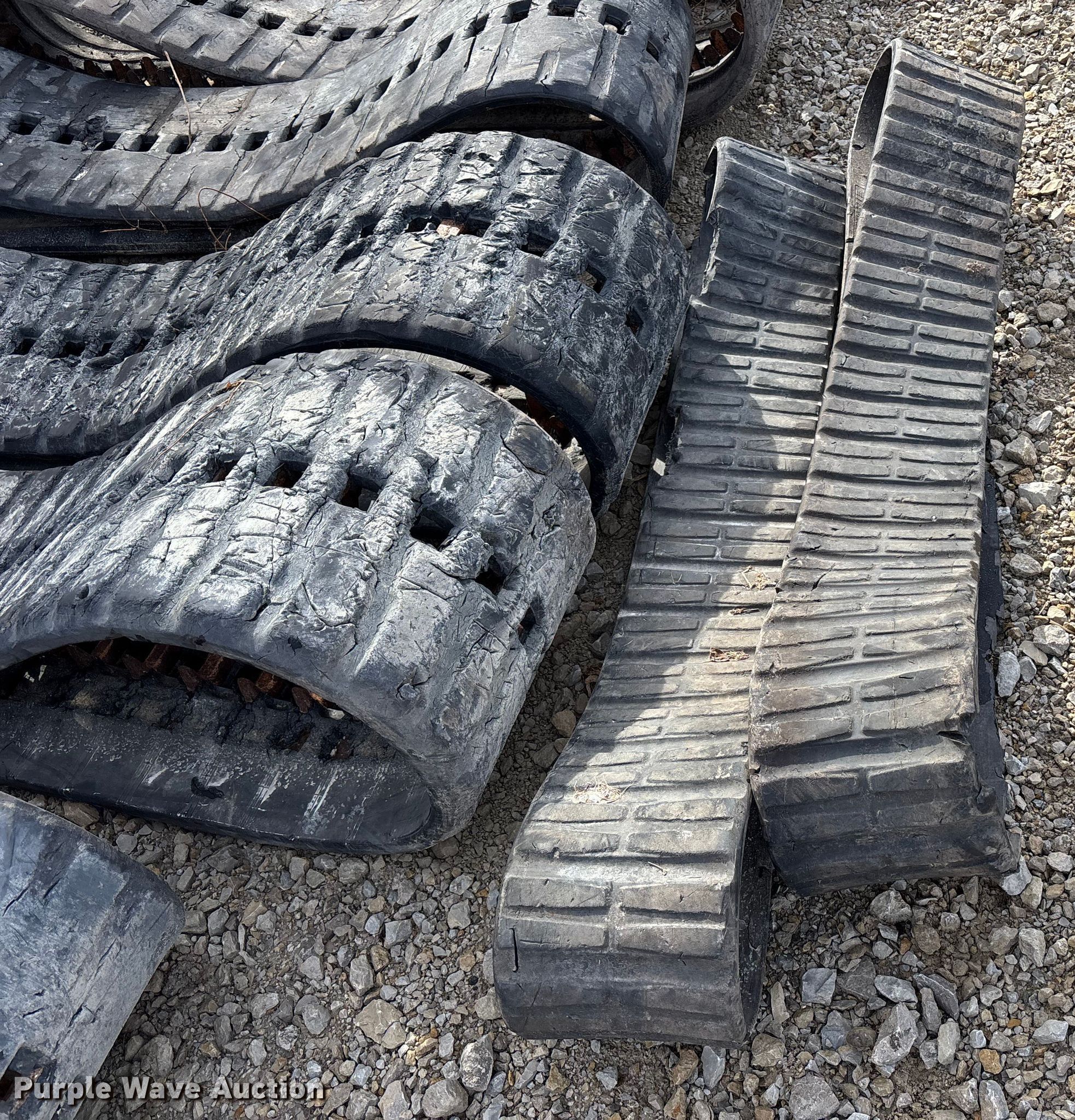 Purple Wave is selling a used Industrial Tires or Tracks in Missouri. This item is a (4) sets of tracks with the following: Widths:, 17", 15", 9", Removed from a Bobcat T770, T590, Removed from a Toro Dingo 462