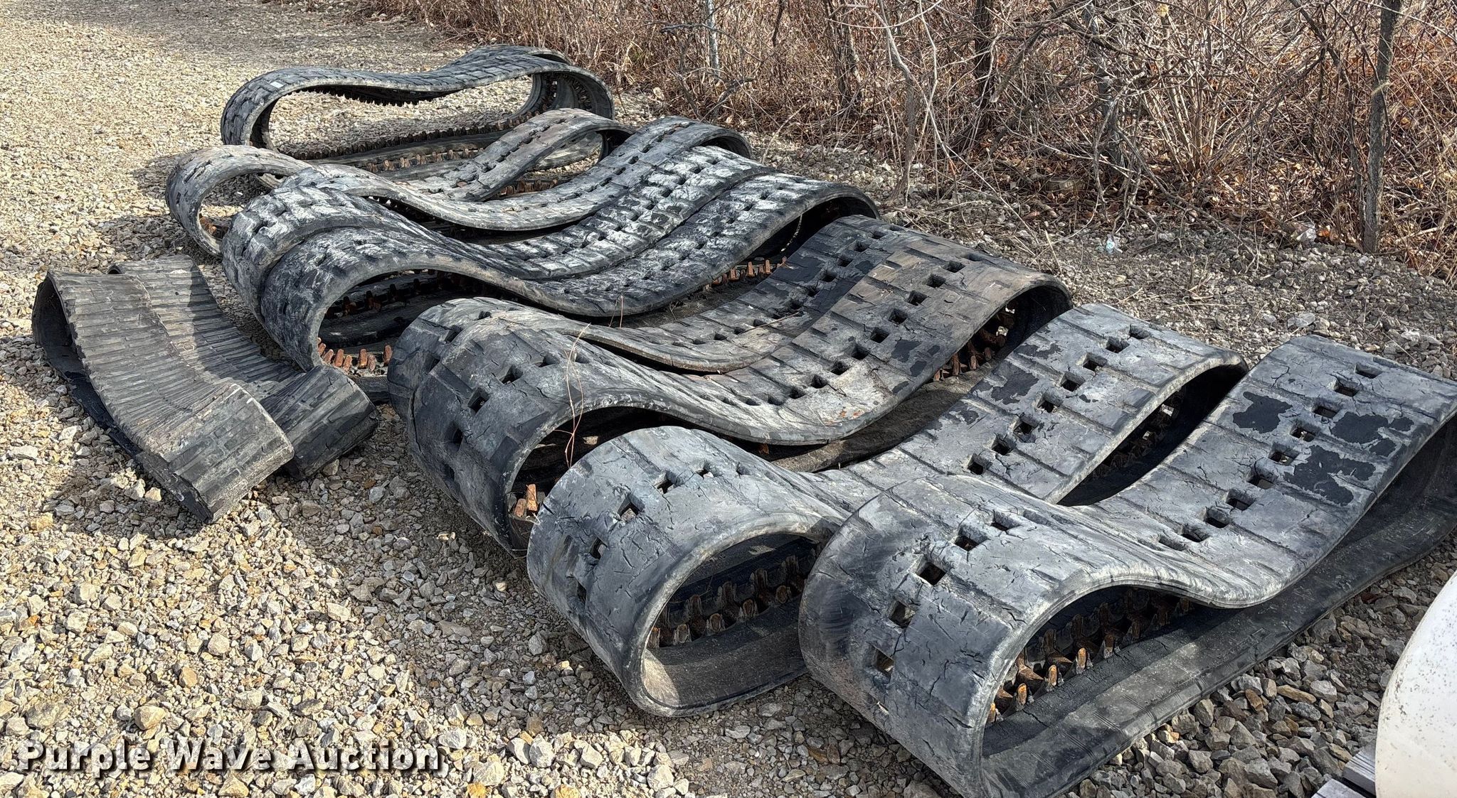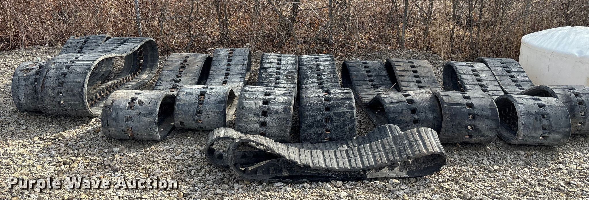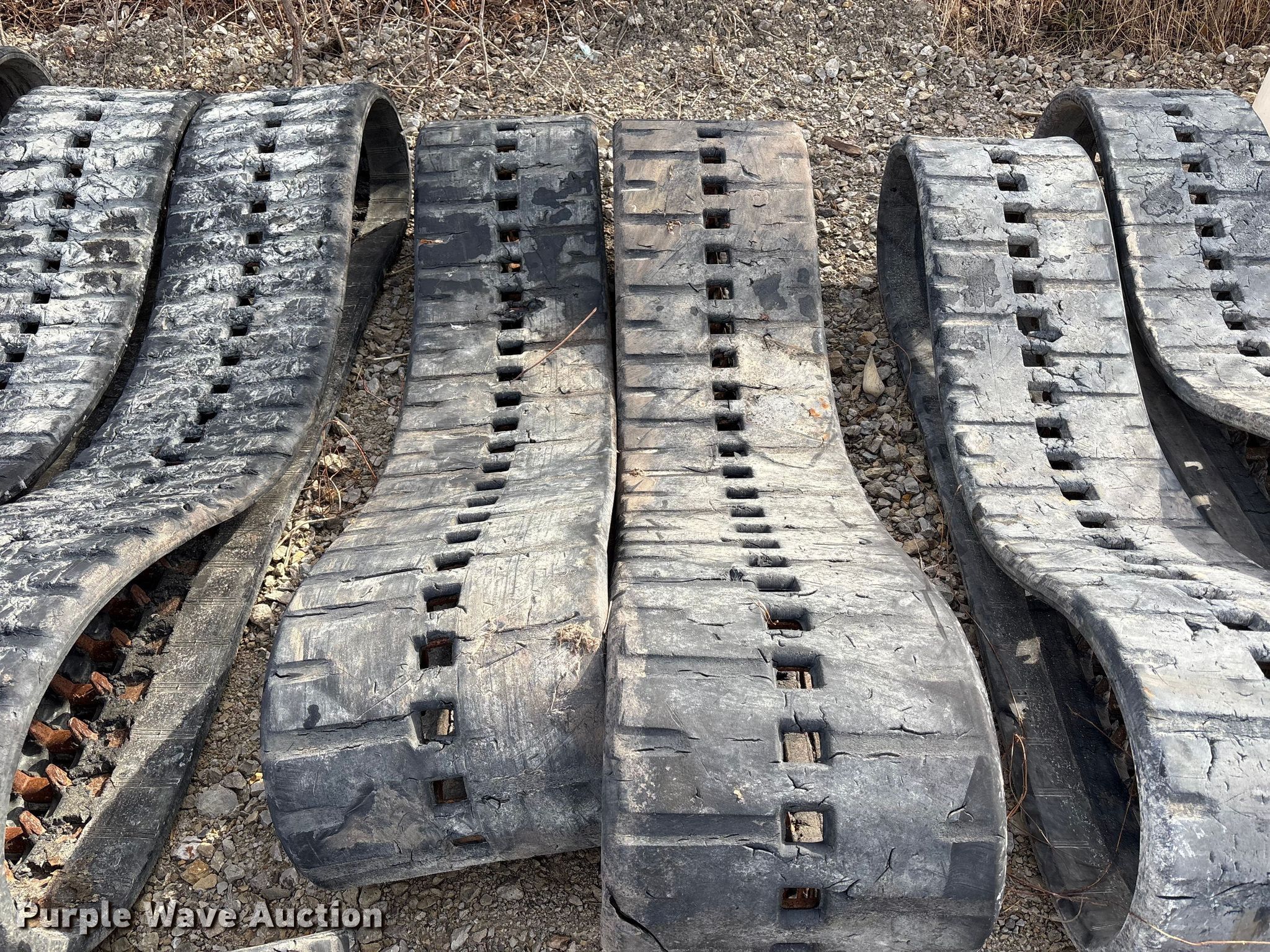 Purple Wave is selling a used Industrial Tires or Tracks in Missouri. This item is a (4) sets of tracks with the following: Widths:, 17", 15", 9", Removed from a Bobcat T770, T590, Removed from a Toro Dingo 462