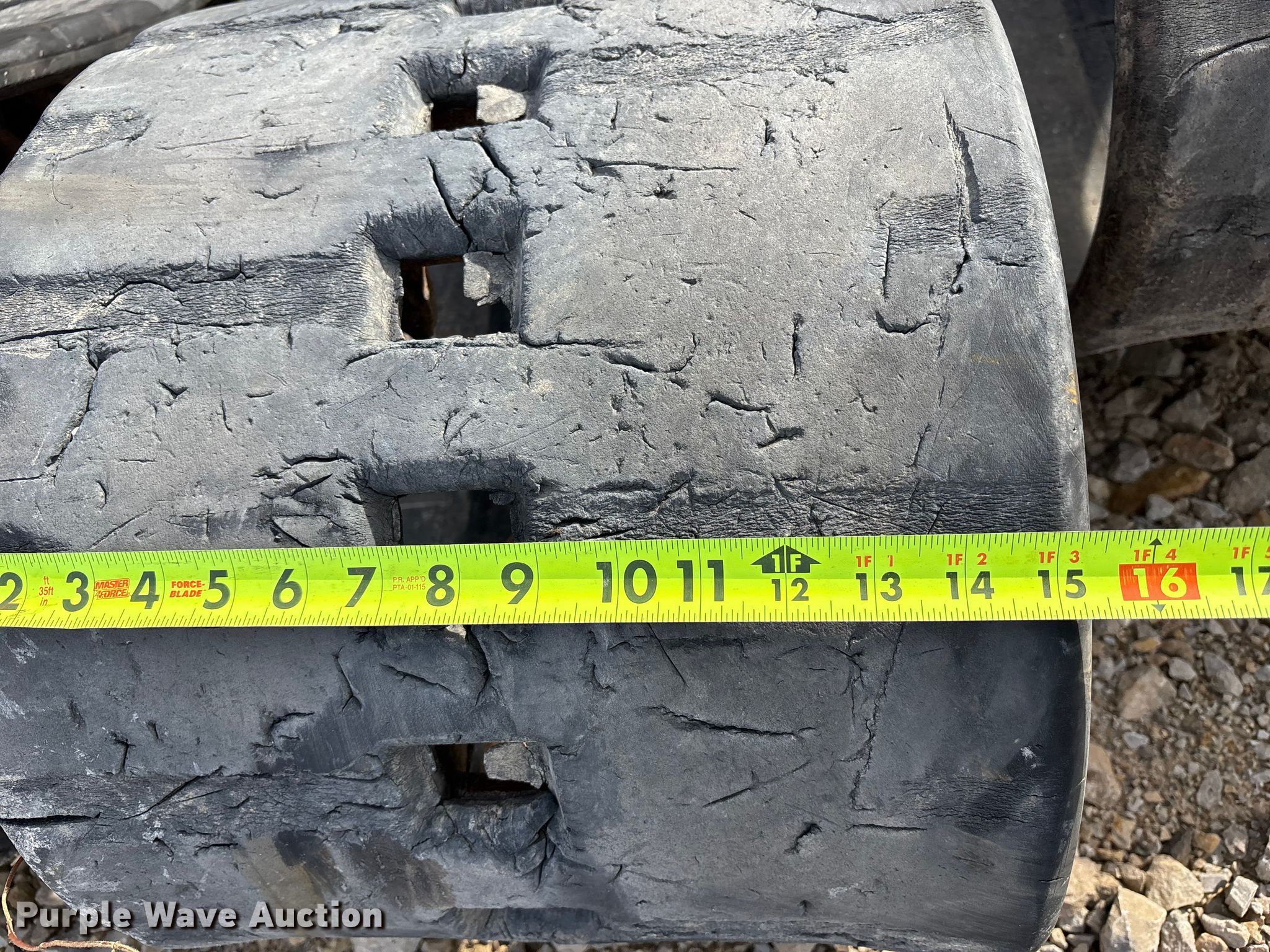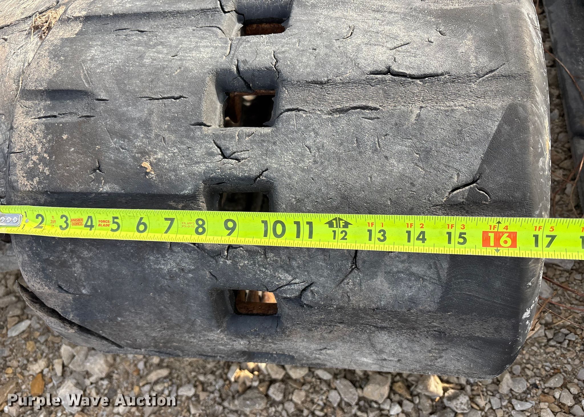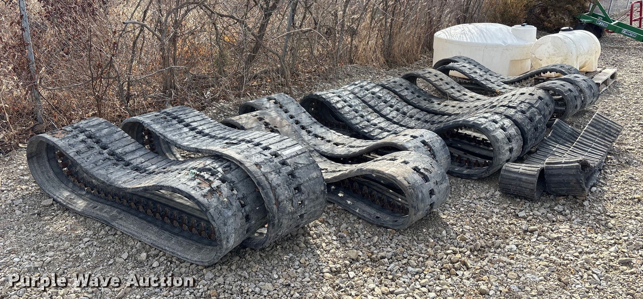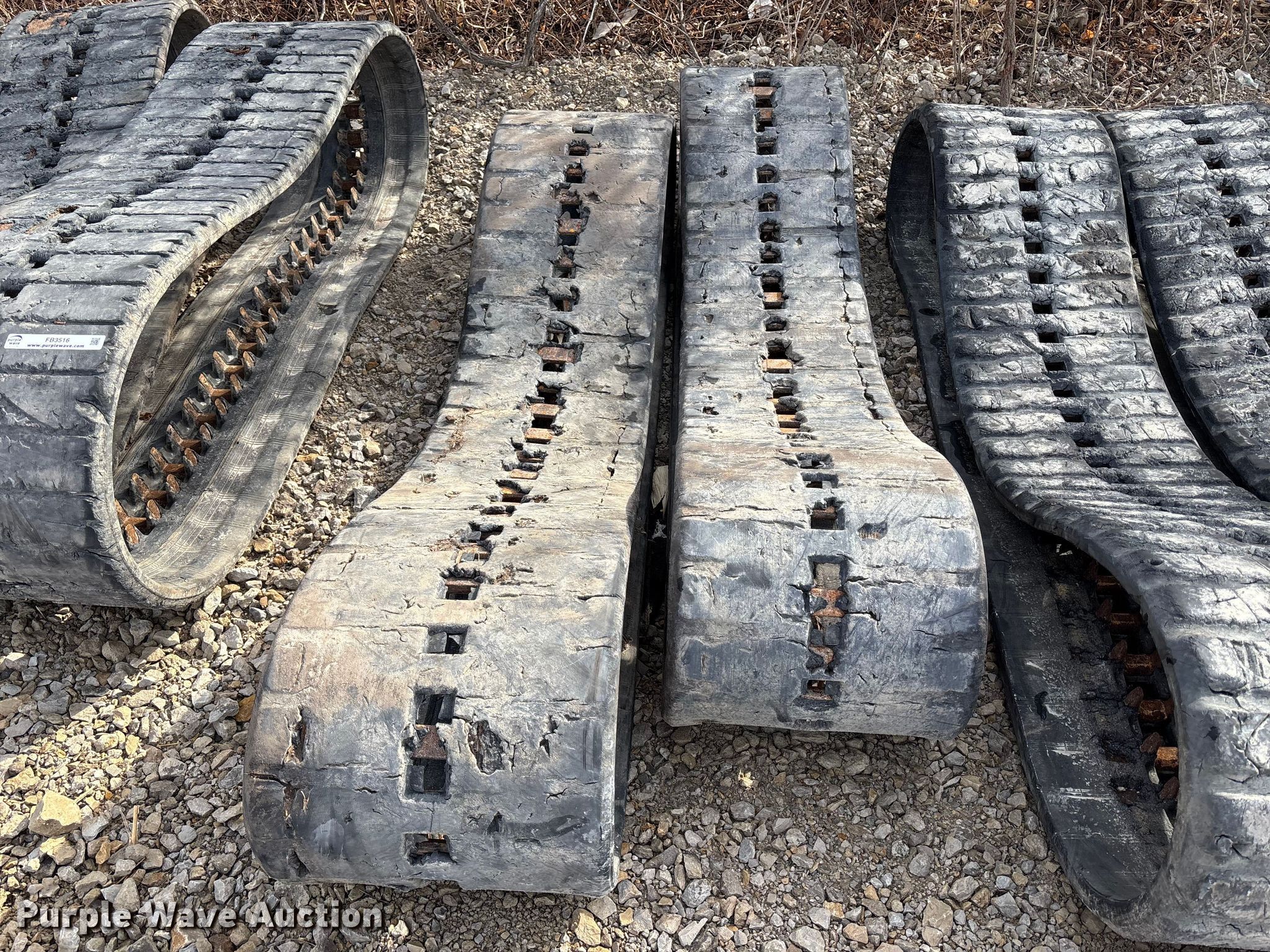 Purple Wave is selling a used Industrial Tires or Tracks in Missouri. This item is a (4) sets of tracks with the following: Widths:, 17", 15", 9", Removed from a Bobcat T770, T590, Removed from a Toro Dingo 462