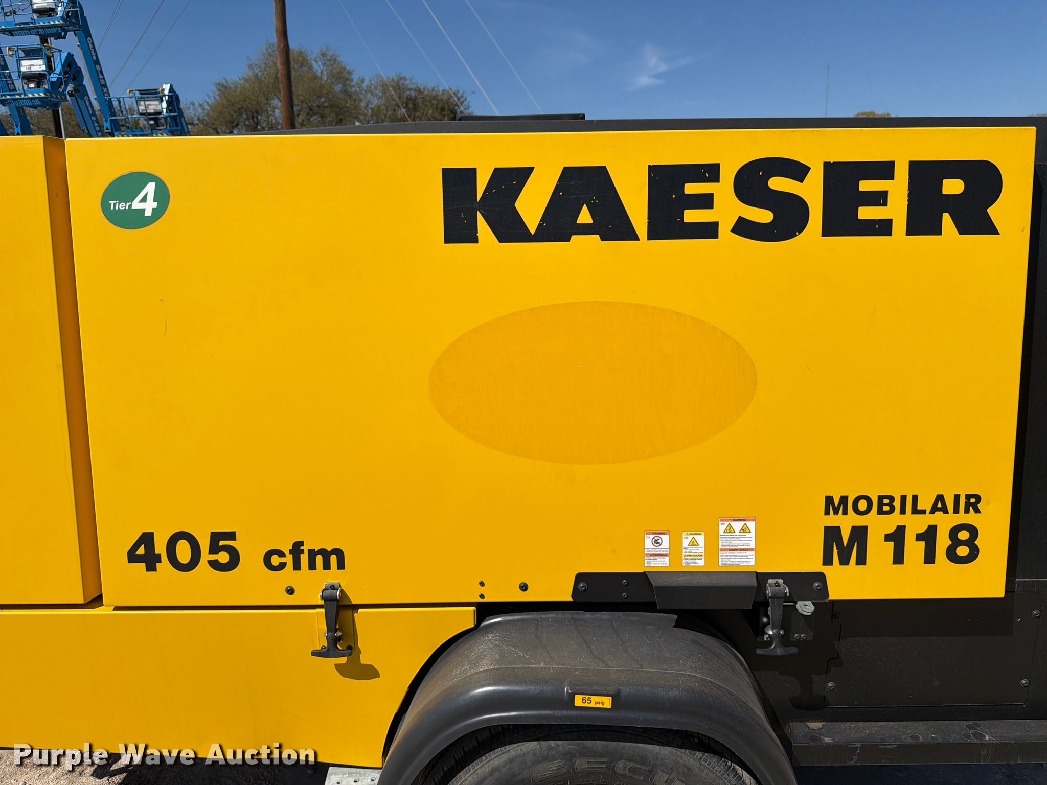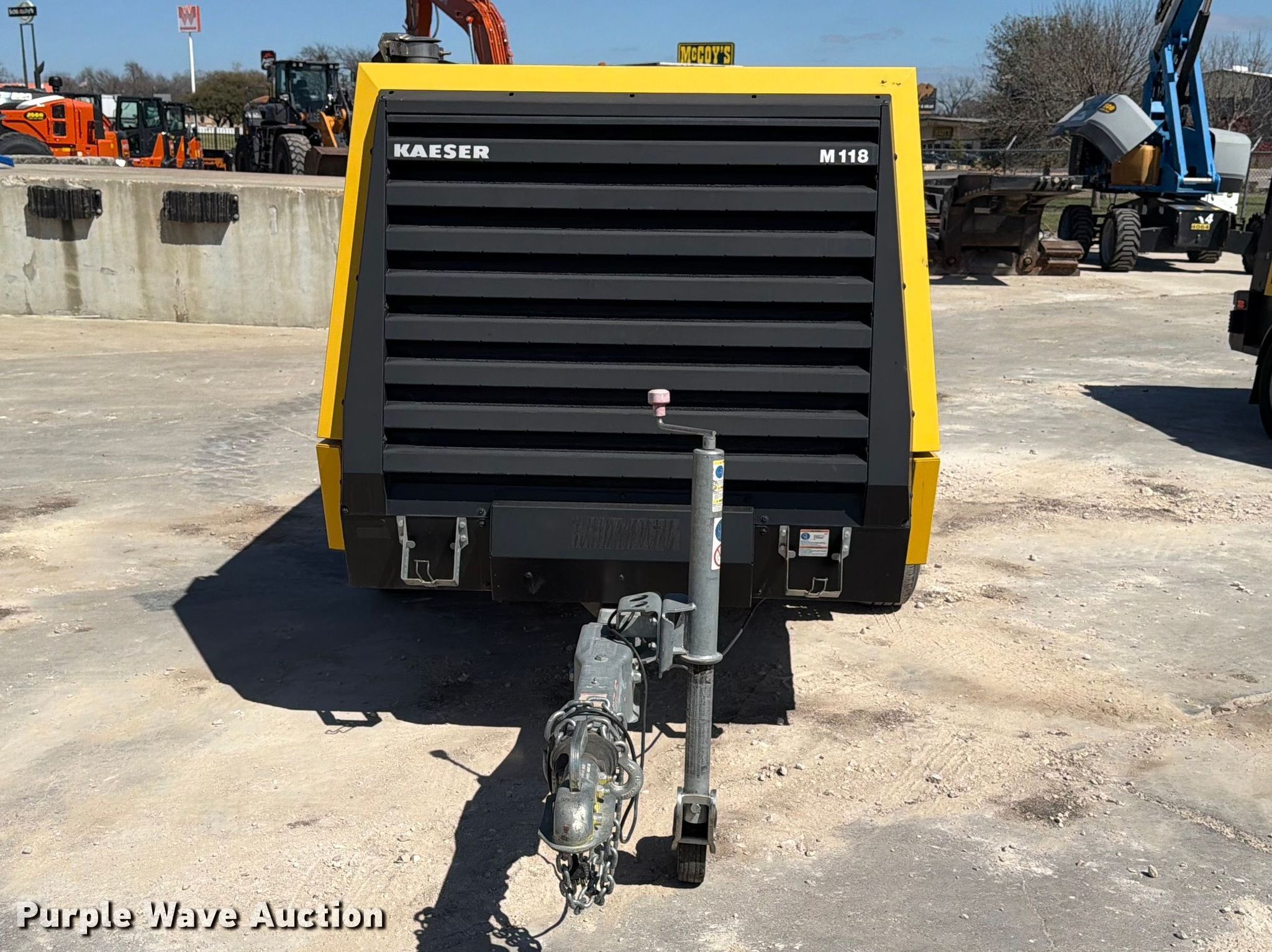Purple Wave is selling a used Air Compressor in Texas. This item is a 2022 Kaeser M118 air compressor with the following: Hours: 1,115 on meter, VIN: WKA0F2203N8444486, Serial: 1038 - 8444486, Unit #: EQ0136883