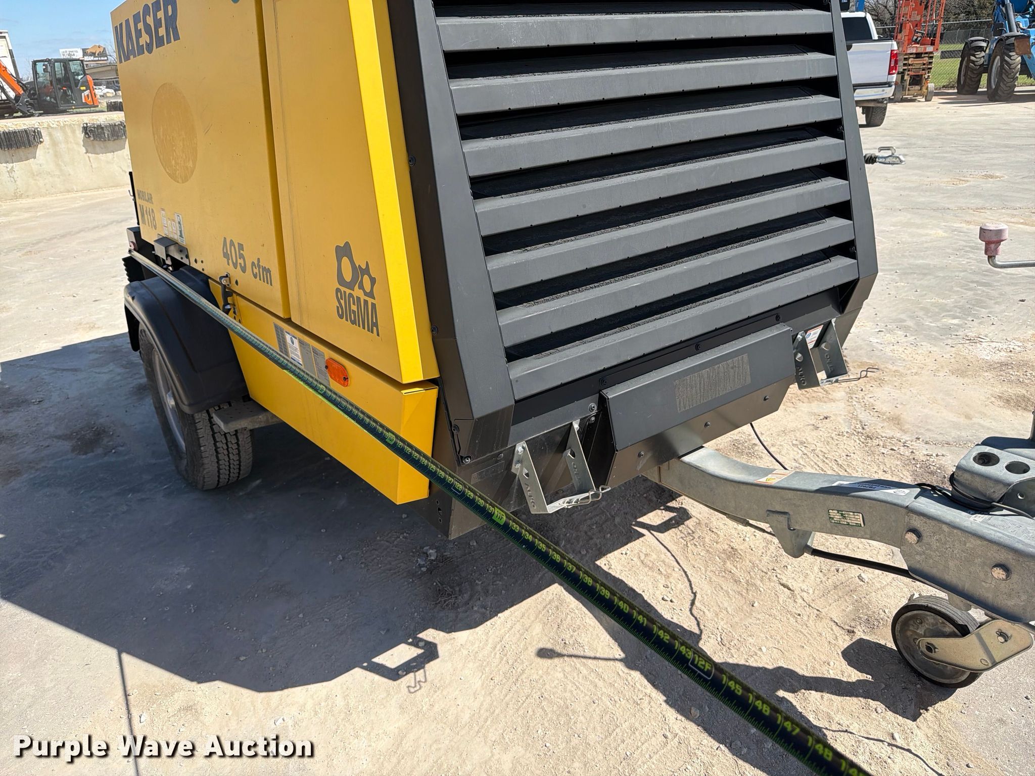 2022 Kaeser M118 air compressor. Hours: 1,115 on meter, VIN: WKA0F2203N8444486, Serial: 1038 - 8444486, Unit #: EQ0136883. Engine Deutz TCD 3.6 L4, Serial: 12485771, Displacement: 3.621L, Cylinders: 4, Fuel type: Diesel, HP: 114, kW: 85. Features Air compressor Kaeser 109118.00010, CFM: 405, PSI: 145. Trailer 14' L x 77" W, Ball hitch size: 2", Suspension: Torsion, Brakes: Hydraulic, Axles: Single, Tire size: 215R14C, GVWR: 4,462 lbs, GAWR: 4,850 lbs. This is worksite support equipment and will not come with a title. Transfer of ownership documentation will be a bill of sale. ASCO Equipment. Belton, TX 76513