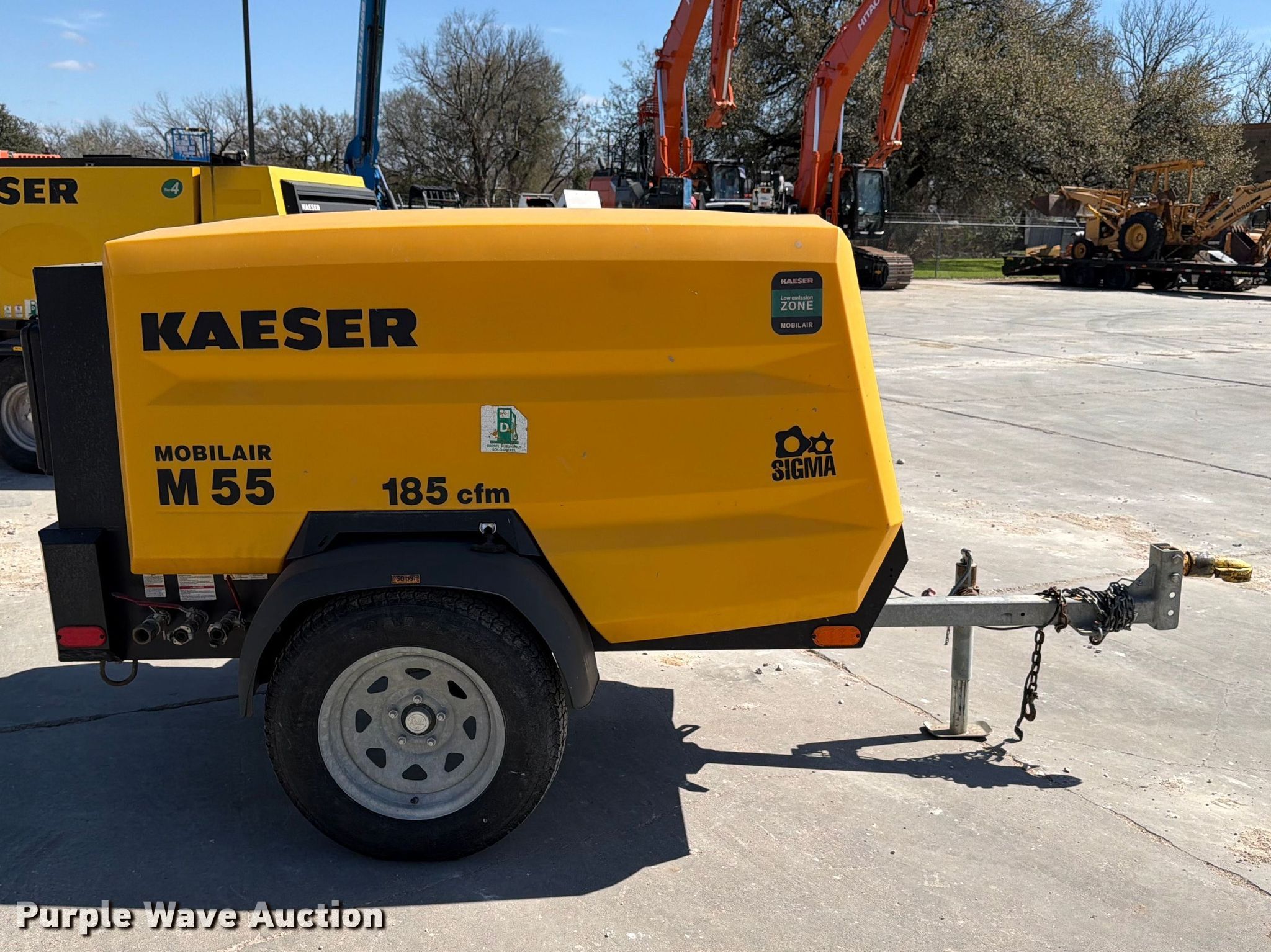 2021 Kaeser M55 air compressor. Hours: 500 on meter, VIN: WKA0N1000M8339521, Serial: 1365 - 8339521, Unit #: EQ0136833. Engine Kubota D1803, Displacement: 1.8L, Cylinders: 3, Fuel type: Diesel, kW: 36.5. Features Air compressor CFM: 185, PSI: 125. Trailer 10' L x 61" W, Ball hitch size: 2", Suspension: Torsion, Axles: Single, Tire size: 205/75D15, GVWR: 1,986 lbs, GAWR: 2,205 lbs. This is worksite support equipment and will not come with a title. Transfer of ownership documentation will be a bill of sale. ASCO Equipment. Belton, TX 76513
