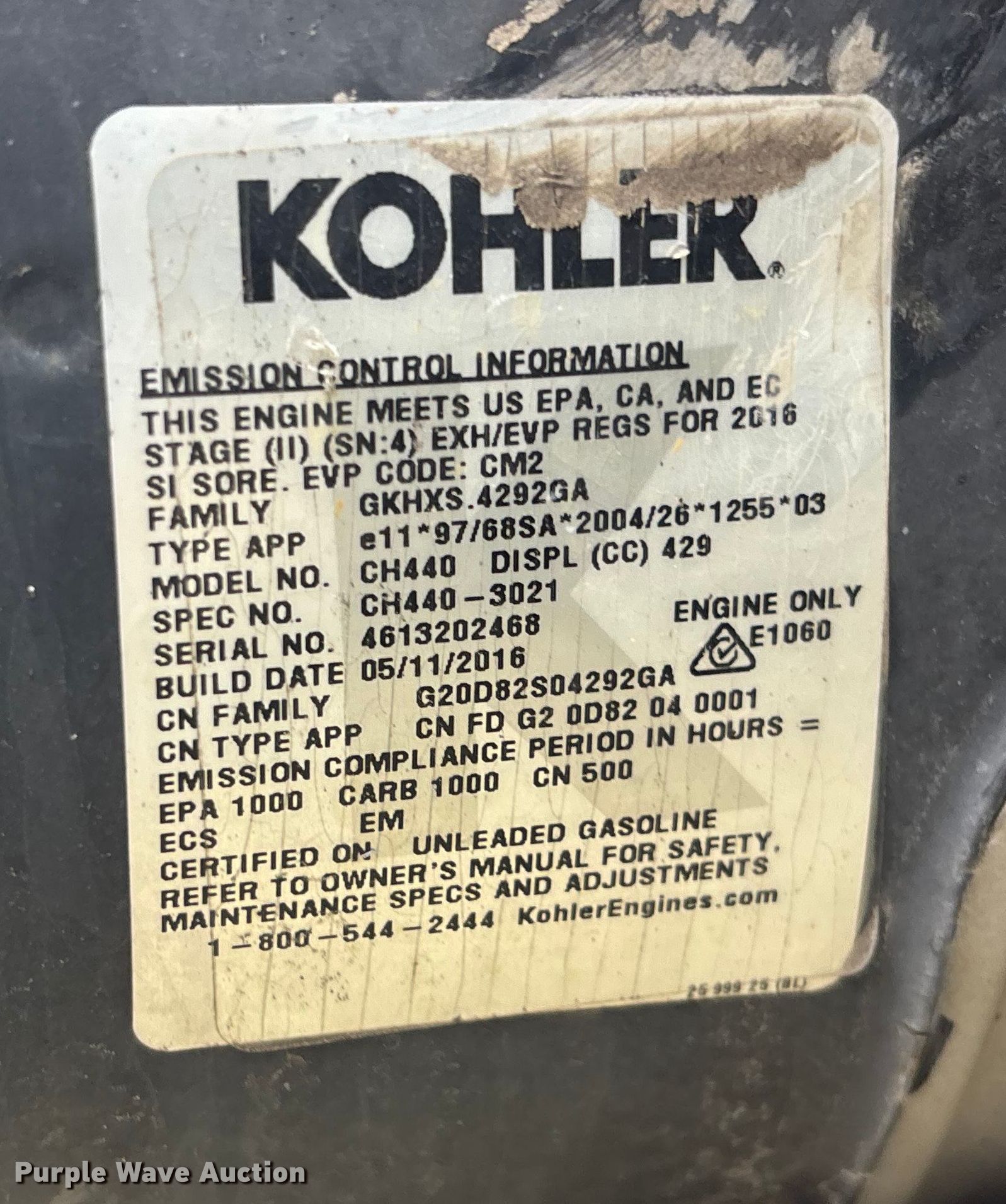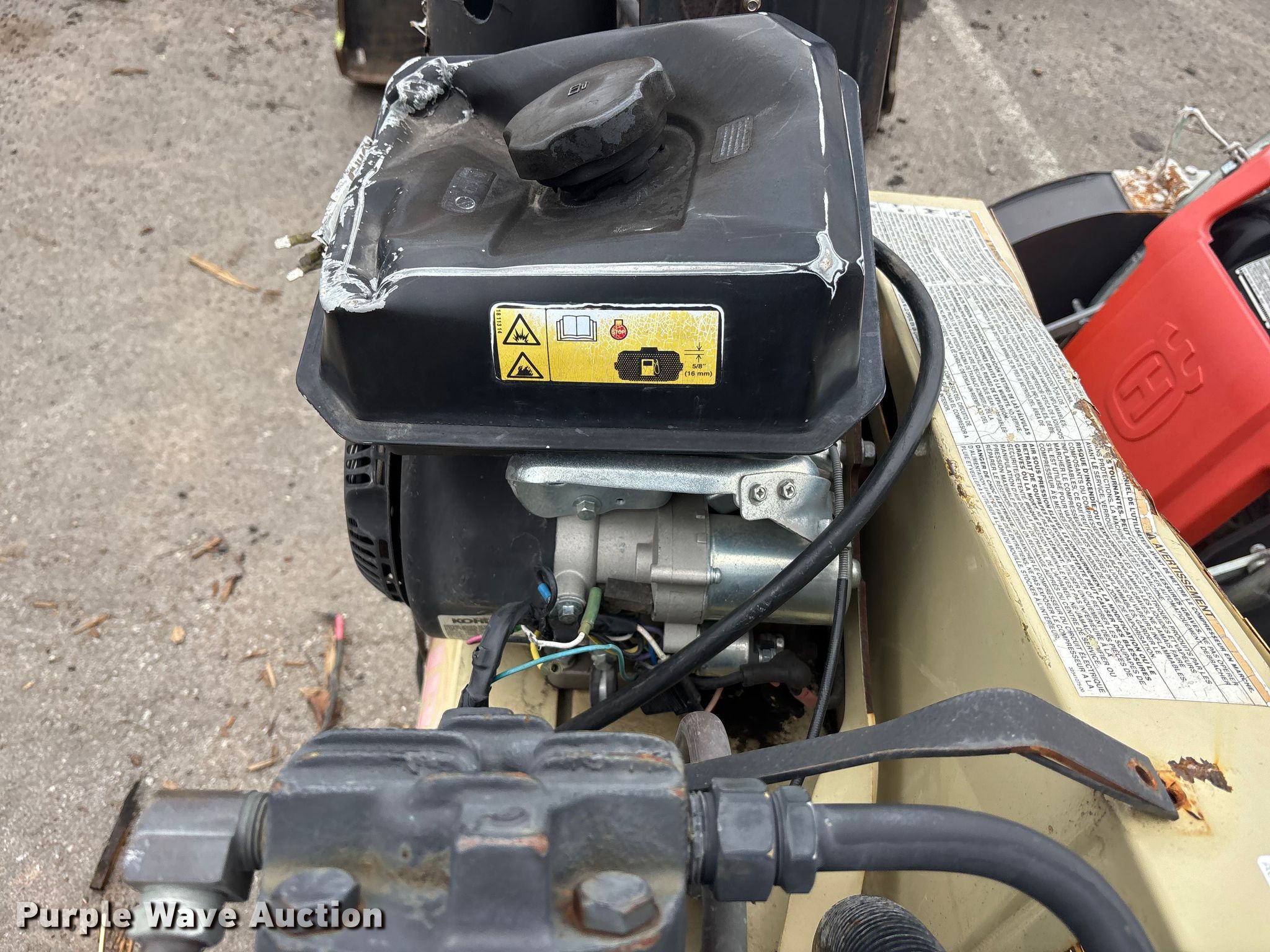 Ingersoll Rand 2475 air compressor. Serial: NAR10254699. Engine Kohler CH4 40–3021, Serial: 461-320-2468, Displacement: 429cc, Cylinders: 1, Fuel type: Diesel. Features Air compressor Ingersoll rand 2475, CFM: 24, PSI: 175. Notes Non-operational unit. McAnany Construction Inc.. Shawnee, KS 66217