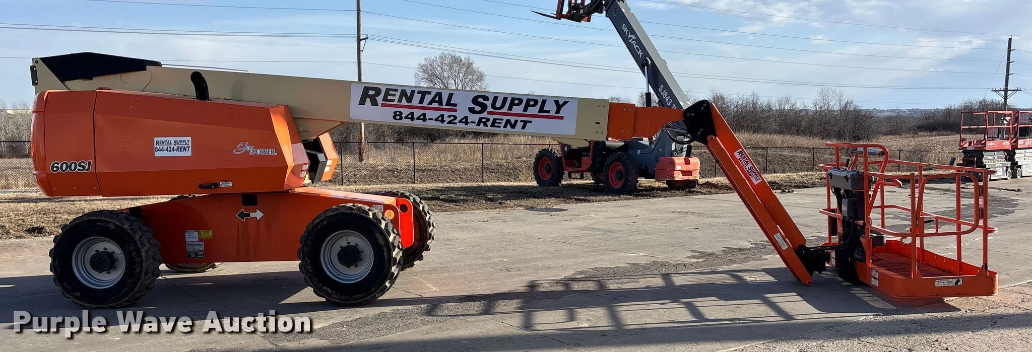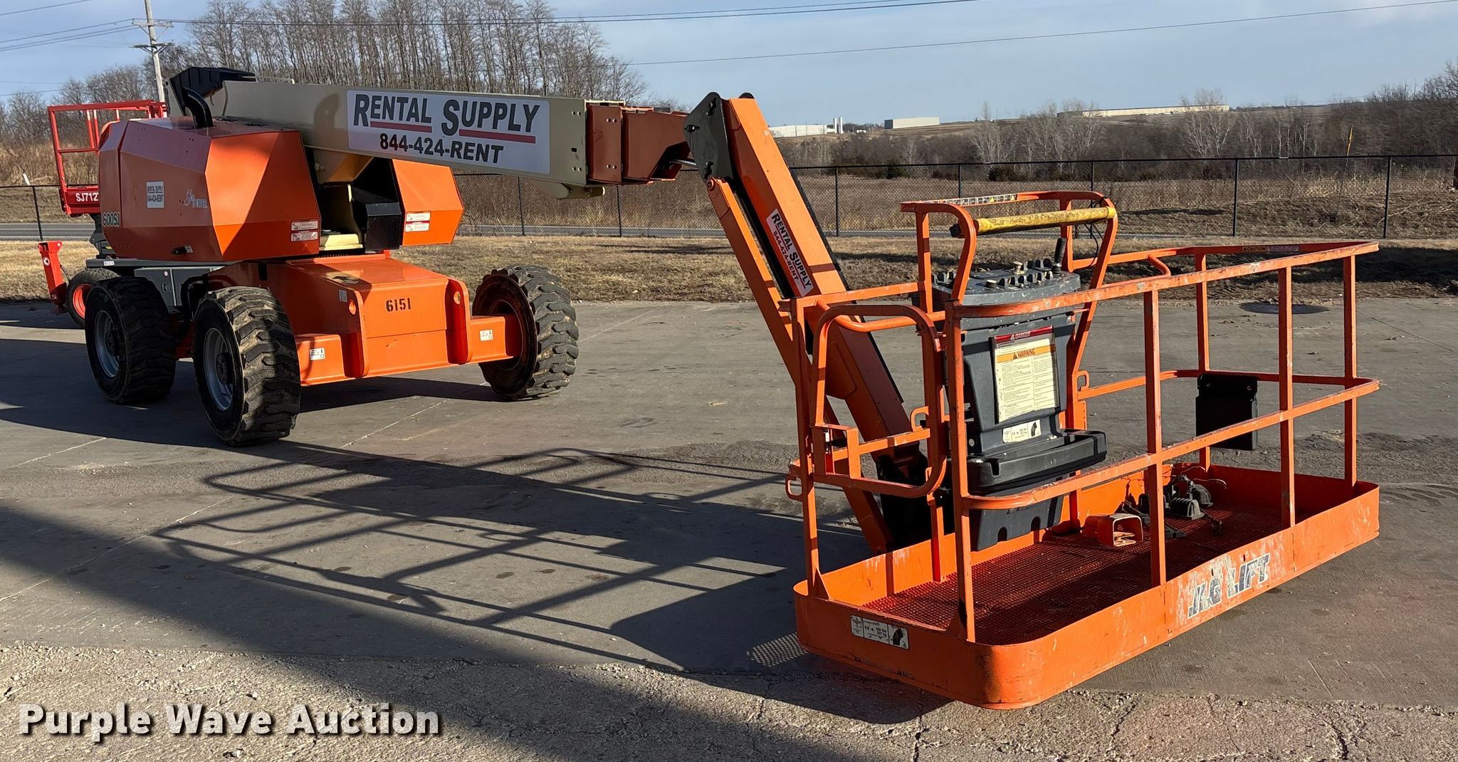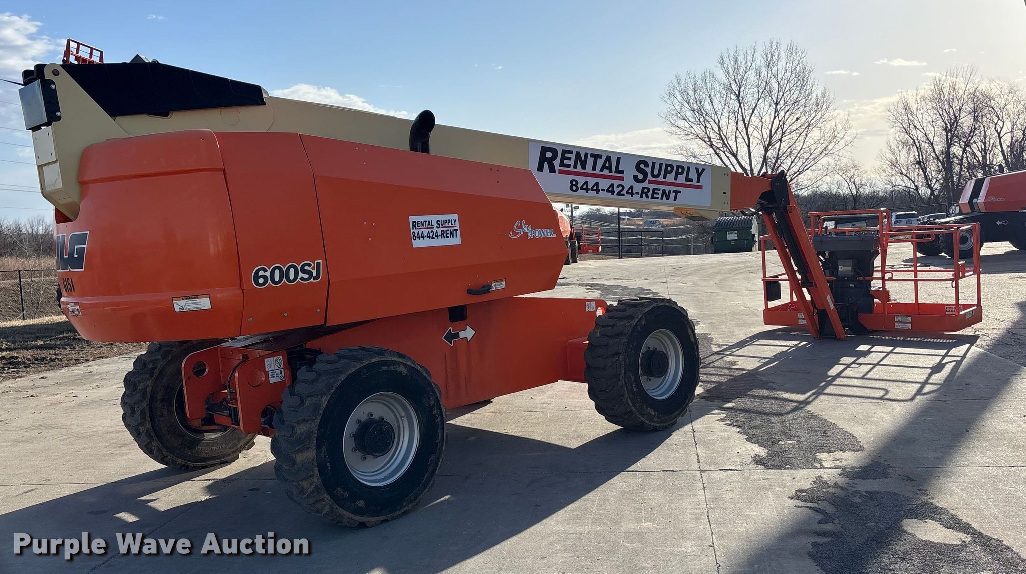 2007 JLG 600 SK boom lift. Hours: 8,017 on meter, Serial: 0300113943. Engine Duetz F4M2011, Displacement: 3.1L, Cylinders: 4, Fuel type: Diesel. Chassis Steering: Four wheel. Features Rough terrain, Boom type: Telescopic, Maximum lift capacity: 500 lbs, Maximum reach length: 50' 4", Maximum lift height: 60', Hydraulic extendable jib, Hydraulic leveling, Platform: 96" L x 36" W, AC power outlet, Controls: Platform, Ground, Travel speed: 4 mph. Tires Tire size: 15-19.5. Notes Hydraulic issues, leaks. This is worksite support equipment and will not come with a title. Transfer of ownership documentation will be a bill of sale. Rental Supply District 1, LLC. Saint Joseph, MO 64507