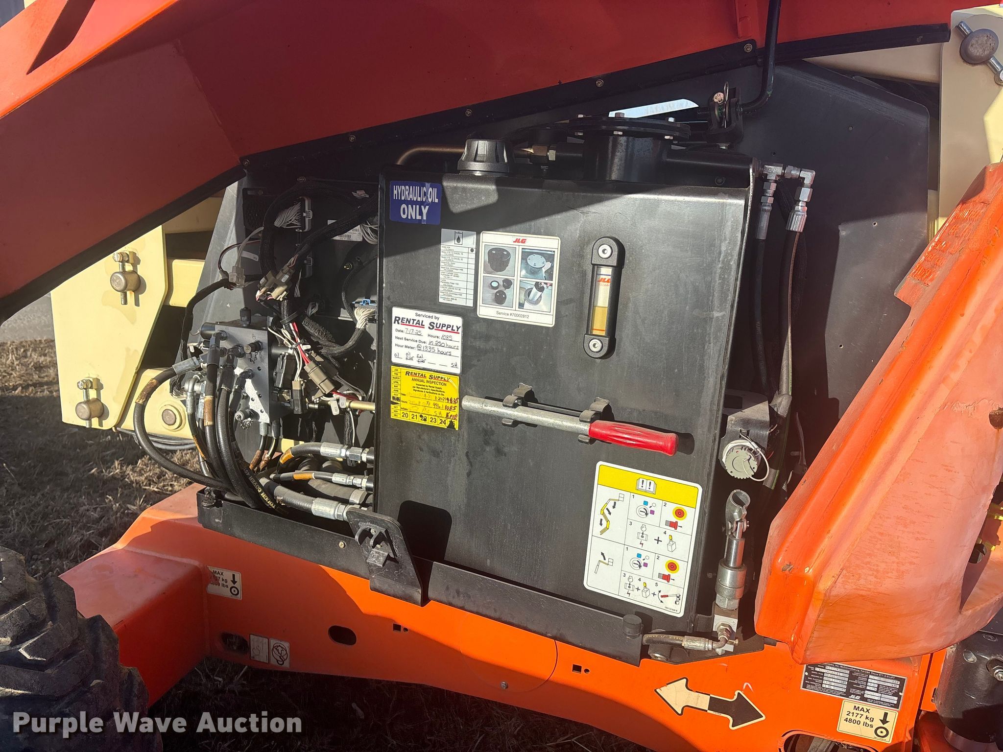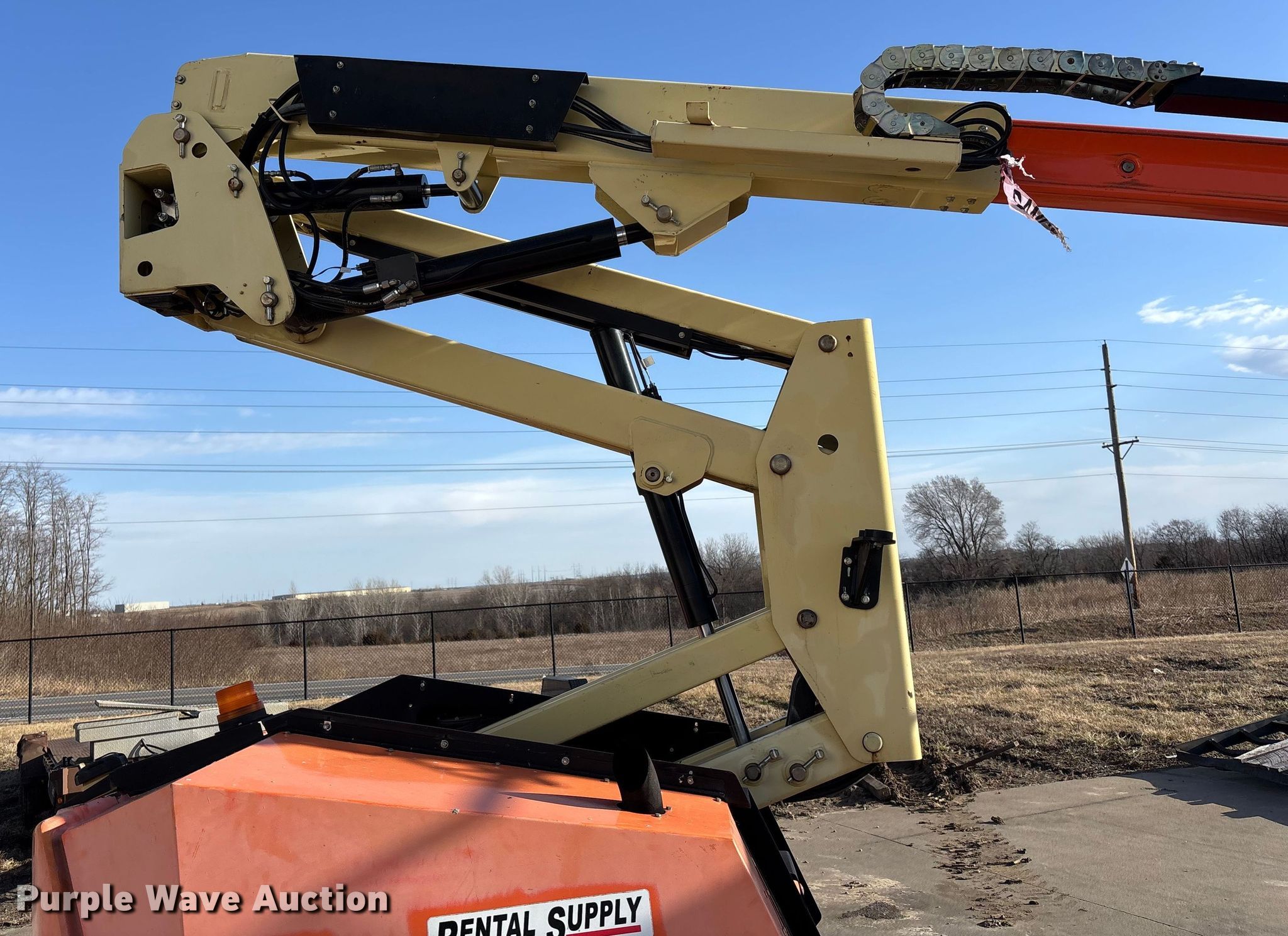 2015 JLG 340AJ boom lift. Hours: 1,165 on meter, Serial: 0300205810. Engine Kubota D1105 – EF02, Displacement: 1.1L, Cylinders: 3, Fuel type: Diesel. Chassis Four wheel drive. Features Rough terrain, Boom type: Telescopic, Maximum lift capacity: 500 lbs, Maximum reach length: 19' 11", Maximum lift height: 33' 10", Hydraulic extendable jib, Platform: 60" L x 30" W, AC power outlet, Controls: Platform, Ground, Travel speed: 3 mph. Tires Tire size: 265/50R20. This is worksite support equipment and will not come with a title. Transfer of ownership documentation will be a bill of sale. Rental Supply District 1, LLC. Saint Joseph, MO 64507