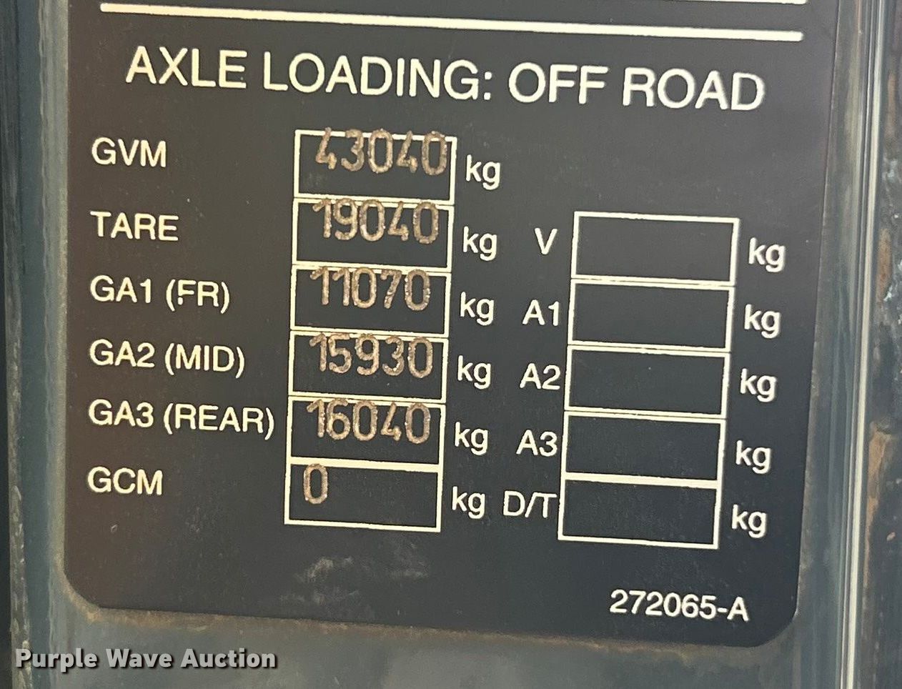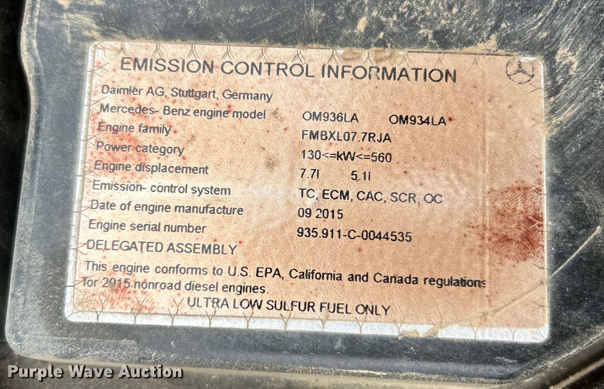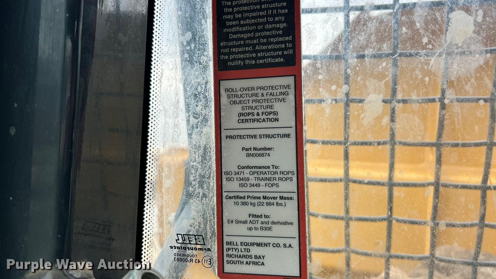Bell B25E articulated haul truck. Hours: 4,960 on meter, Serial: B93A625ET02007399. Engine Mercedes-Benz OM936LA, Serial: 935911C0044535, Displacement: 7.7L, Cylinders: 6, Fuel type: Diesel. Transmission Allison 3500 ORS, Automatic. Chassis Six wheel drive. Interior AC, Heat, Backup camera. Features Dump bed Bell, Capacity: 25 tons. Tires Size: 23.5R25. M Turpin Services LLC. Foristell, MO 63348