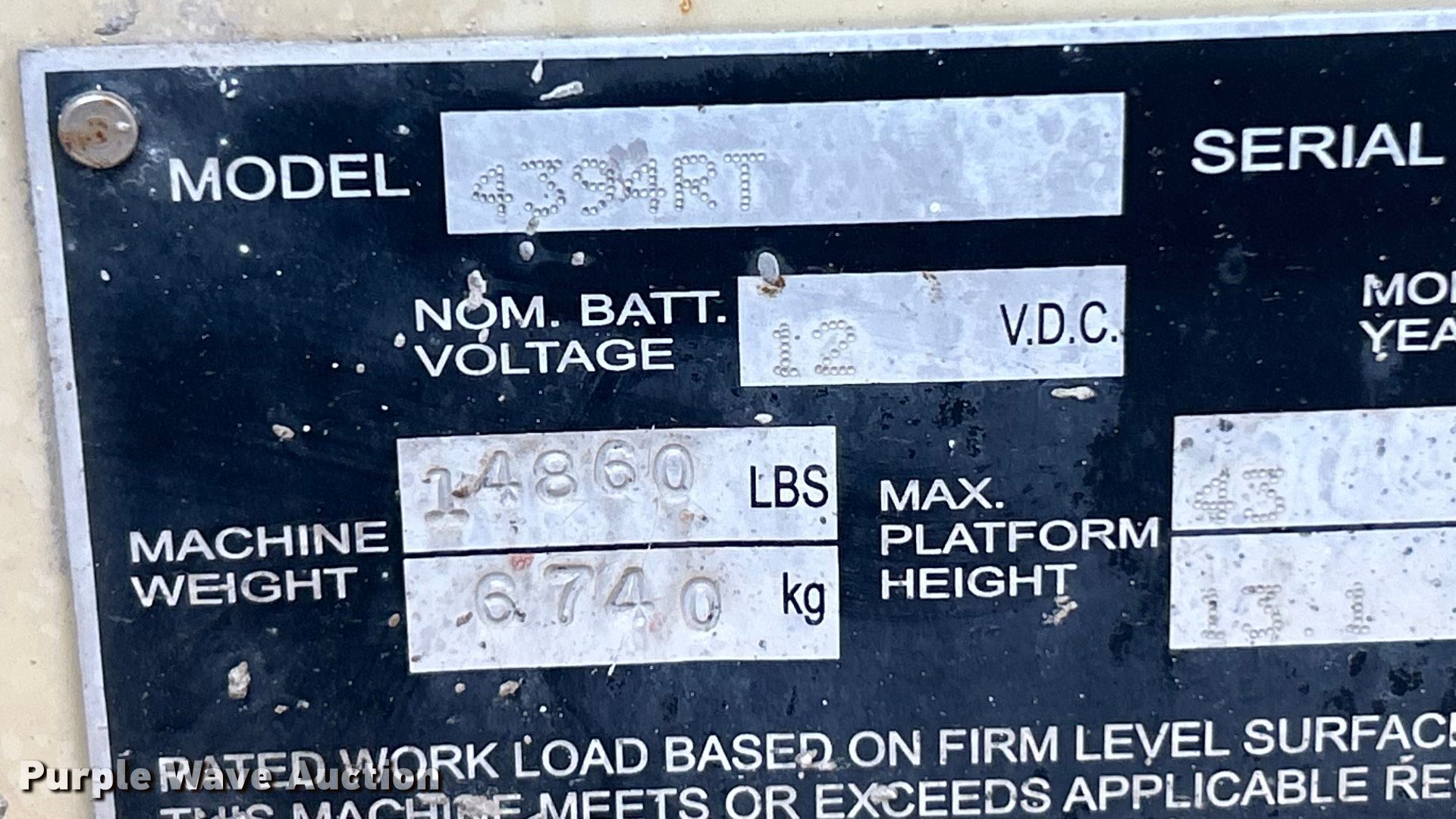 Purple Wave is selling a used Scissor or Vertical Lift in Missouri. This item is a 2011 JLG 4394RT scissor lift with the following: Hours: 3,364 on meter, Serial: 0200201317