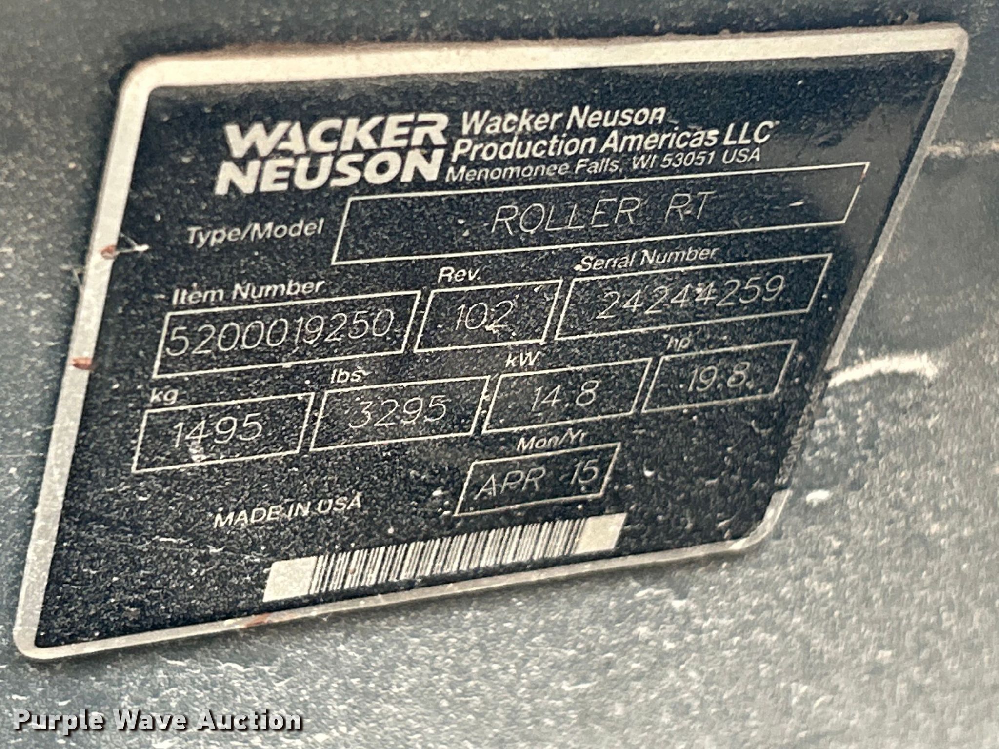 Purple Wave is selling a used Walk Behind Compactor in Missouri. This item is a 2015 Wacker Neuson RTSC3 trench compactor with the following: Hours: 551 on meter, Serial: 24244259