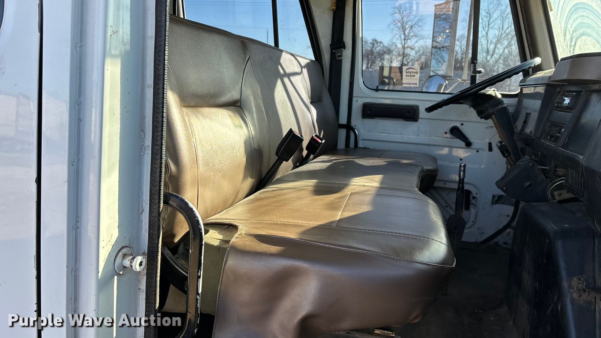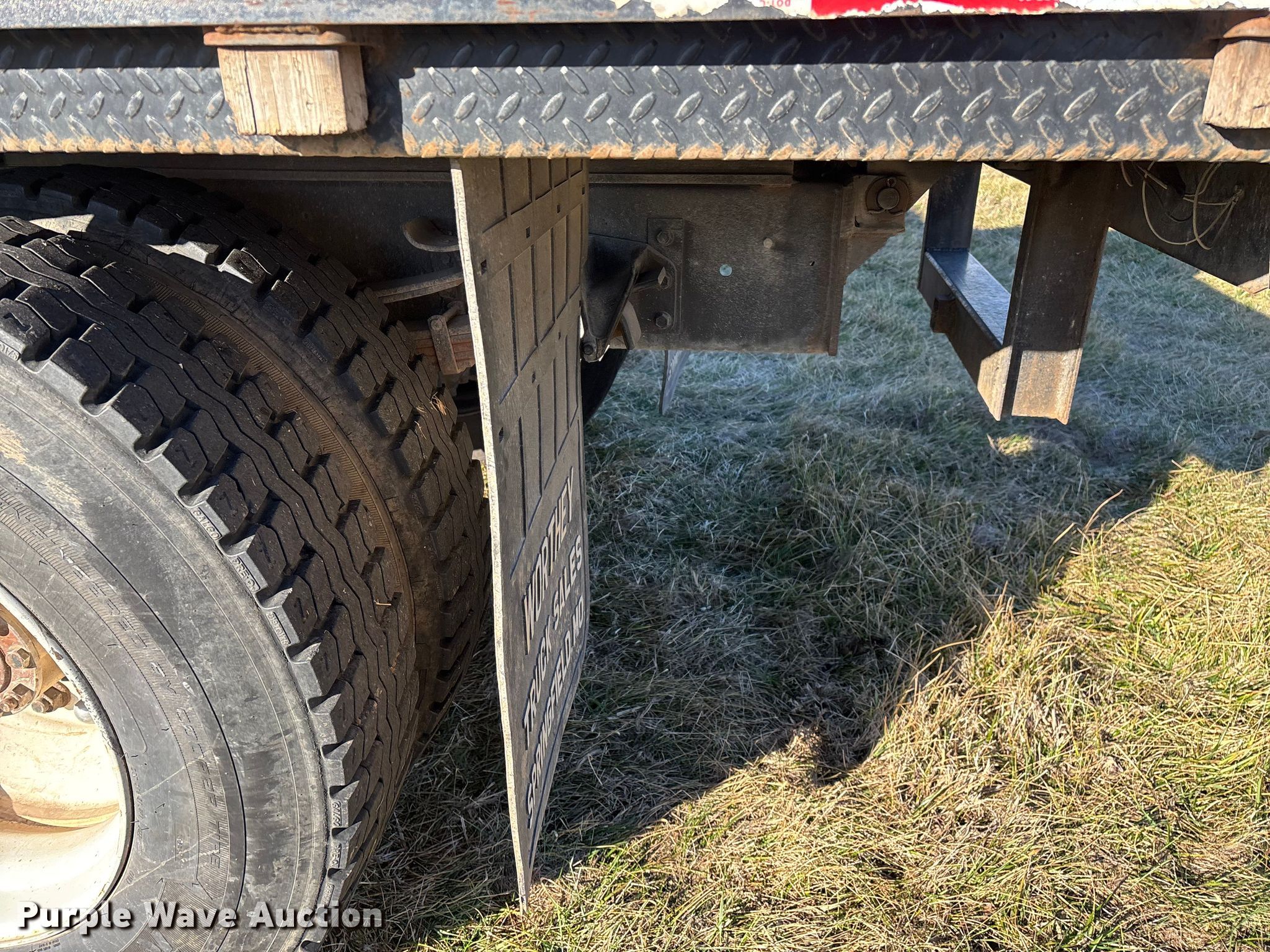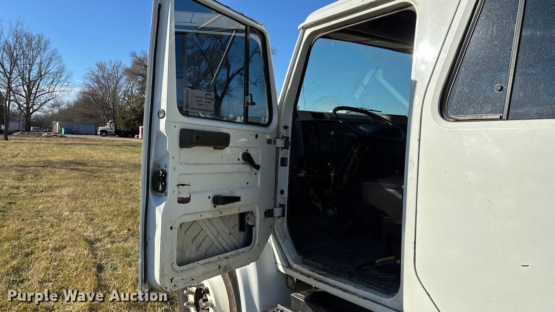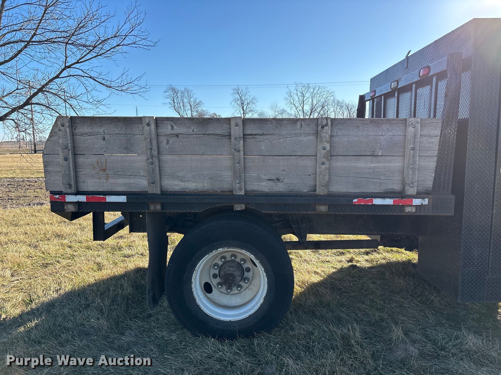 This 2001 International 4700 flatbed truck will sell to the highest bidder regardless of price.
