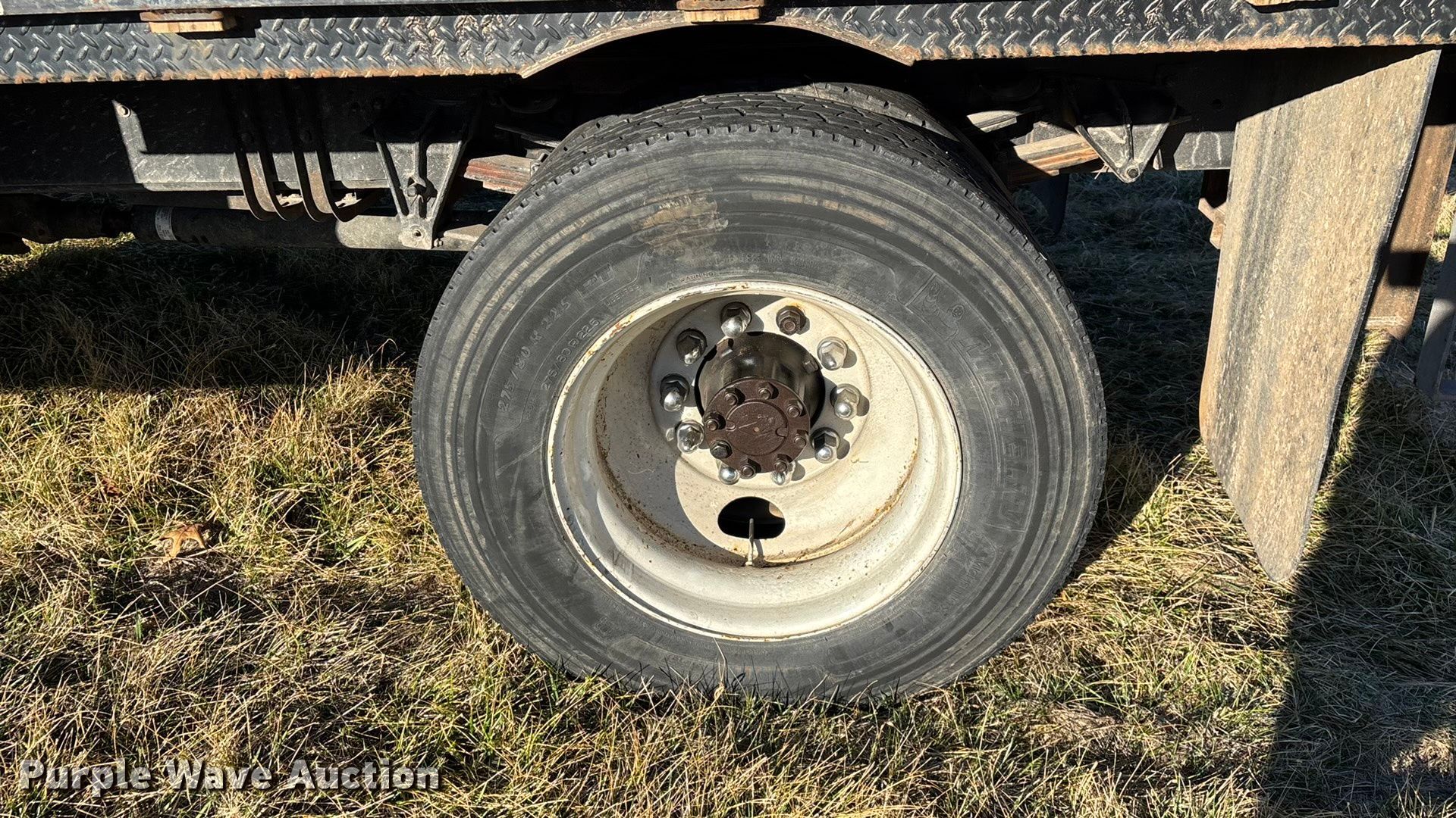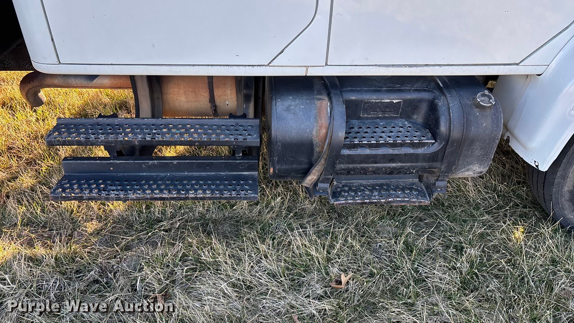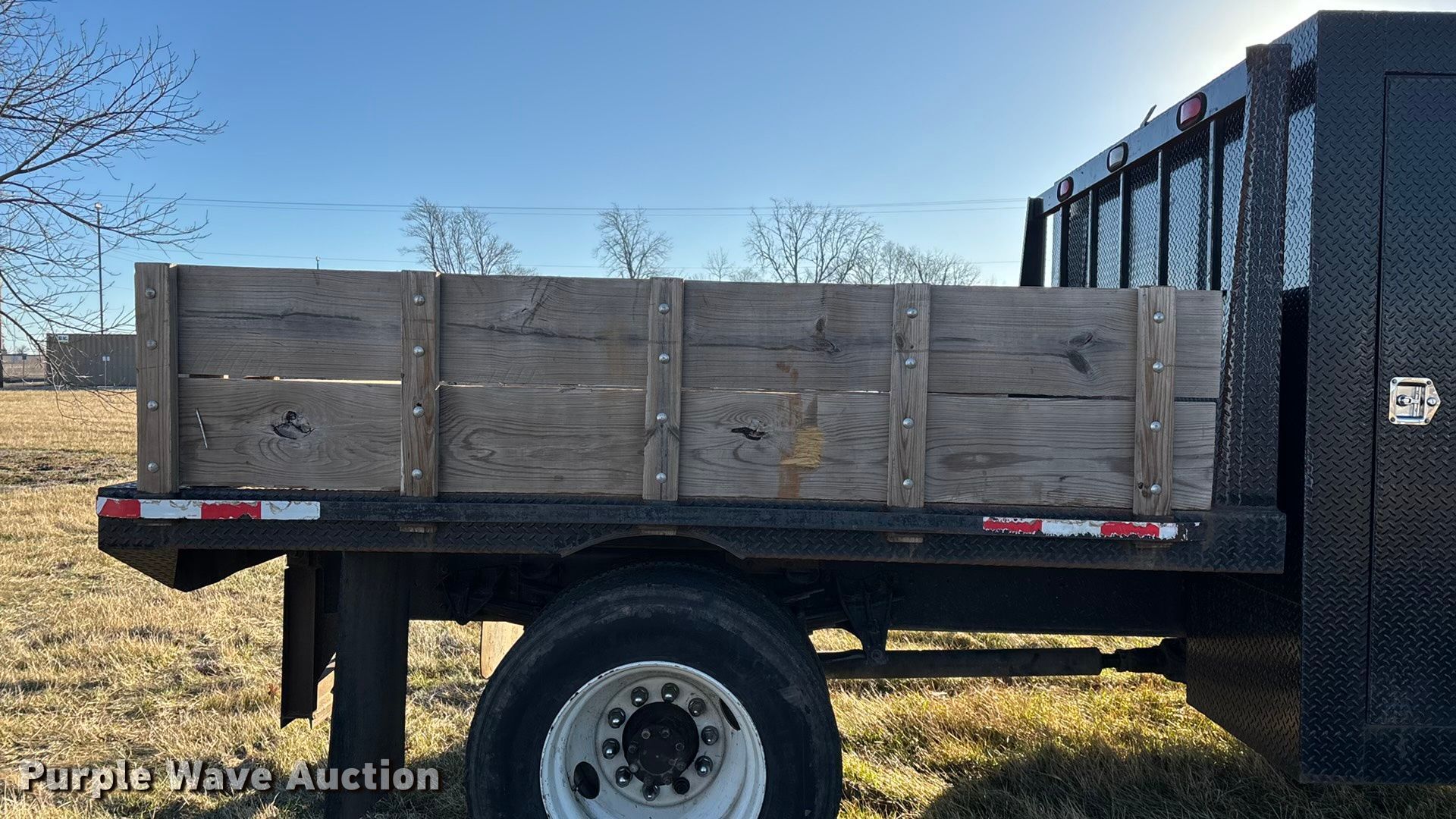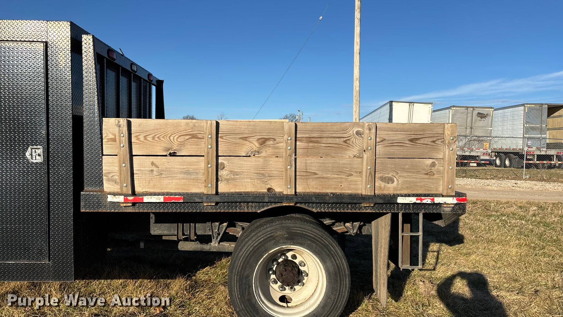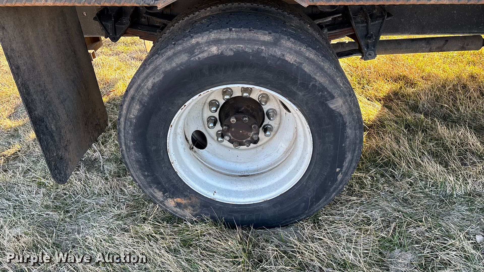 2001 International 4700 flatbed truck. Miles: 65,188 on odometer, VIN: 1HTSCAAM31H323956. Engine Cylinders: 6, Fuel type: Diesel. Transmission Automatic. Chassis Axles: Single, Suspension: Spring, Brakes: Hydraulic. Interior AC, Heat, Cruise control, Brake controller. Features Bed Dump flatbed, Length: 10' 1", Width: 100", Ram: Single, Removable sides, Gooseneck. Tires Front: 295/75R22.5, Rear: 275/80R22.5, Rear: 295/75R22.5. Notes Power steering issues, leaks, Contents not included, Possible AC issues, may need charged, Windshield chipped or cracked, Non-operational driver side door handle. Missouri title. Title distribution may be delayed up to 14 days from verification of funds. Simmerman Farms LLC. Springfield, MO 65802