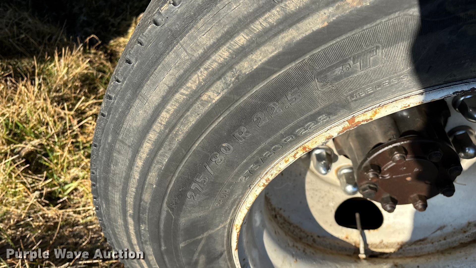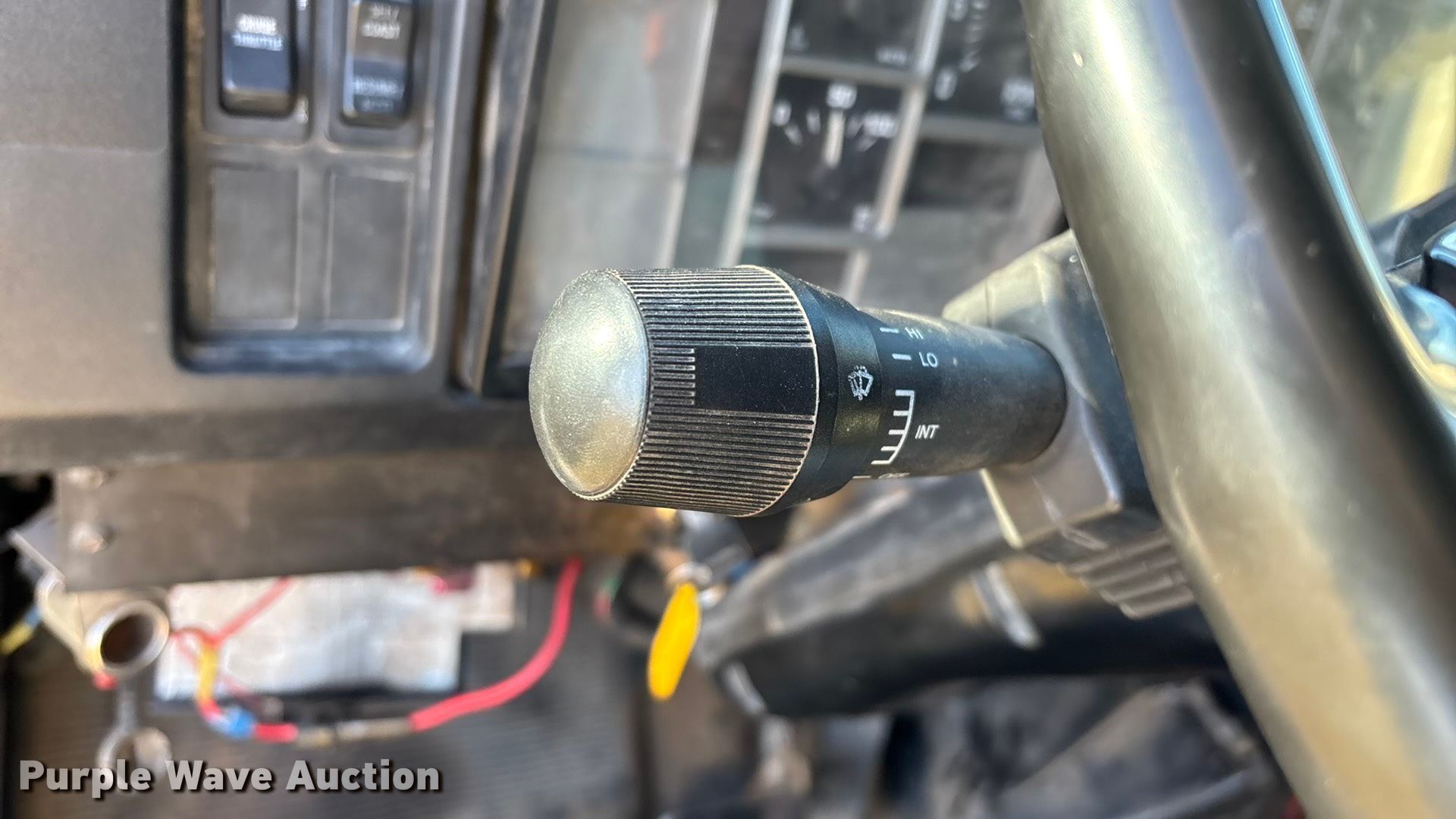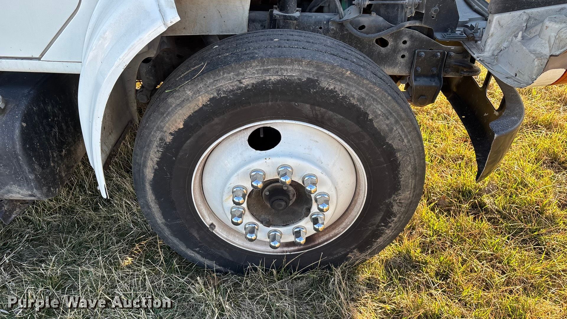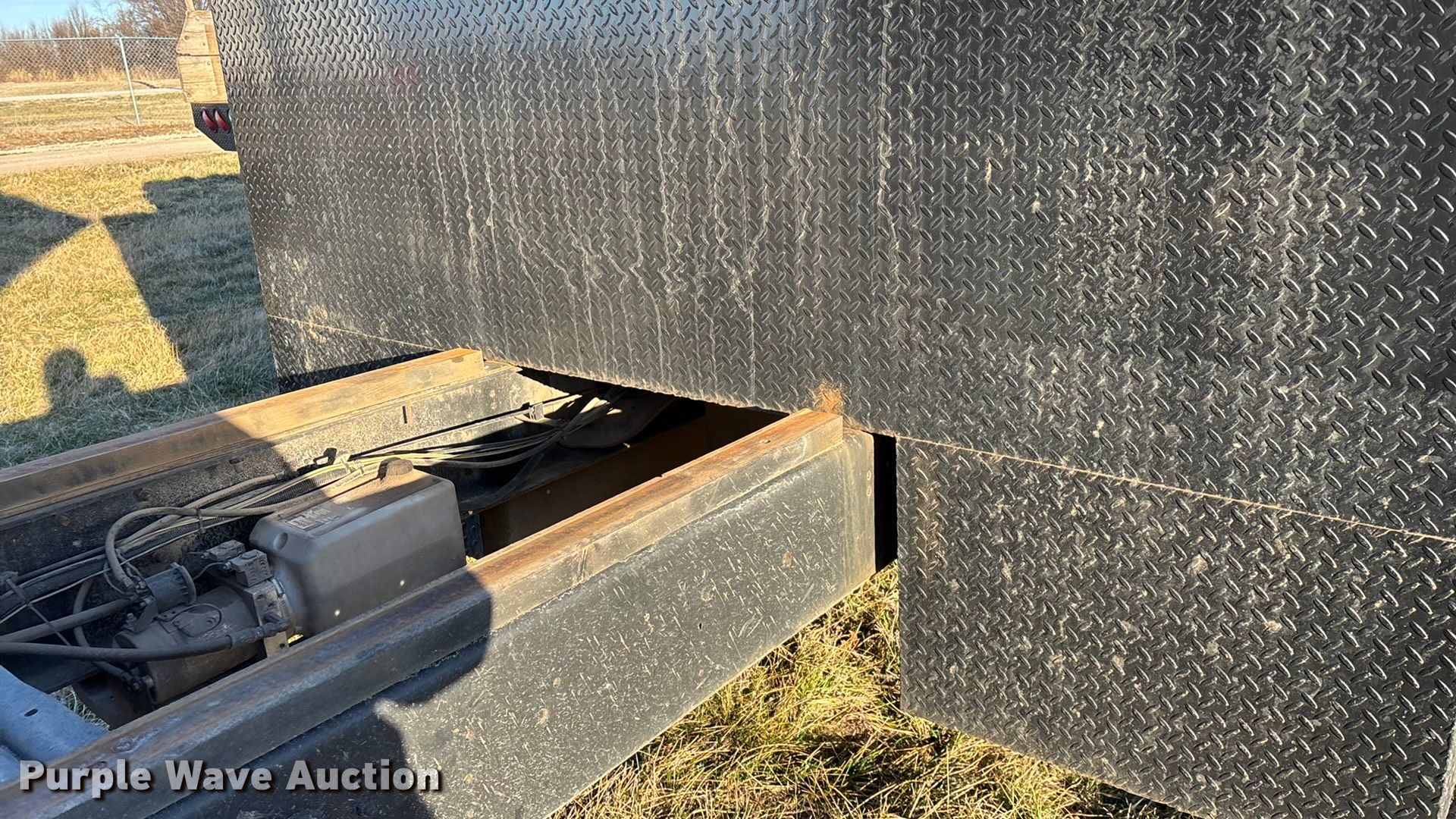 2001 International 4700 flatbed truck. Miles: 65,188 on odometer, VIN: 1HTSCAAM31H323956. Engine Cylinders: 6, Fuel type: Diesel. Transmission Automatic. Chassis Axles: Single, Suspension: Spring, Brakes: Hydraulic. Interior AC, Heat, Cruise control, Brake controller. Features Bed Dump flatbed, Length: 10' 1", Width: 100", Ram: Single, Removable sides, Gooseneck. Tires Front: 295/75R22.5, Rear: 275/80R22.5, Rear: 295/75R22.5. Notes Power steering issues, leaks, Contents not included, Possible AC issues, may need charged, Windshield chipped or cracked, Non-operational driver side door handle. Missouri title. Title distribution may be delayed up to 14 days from verification of funds. Simmerman Farms LLC. Springfield, MO 65802