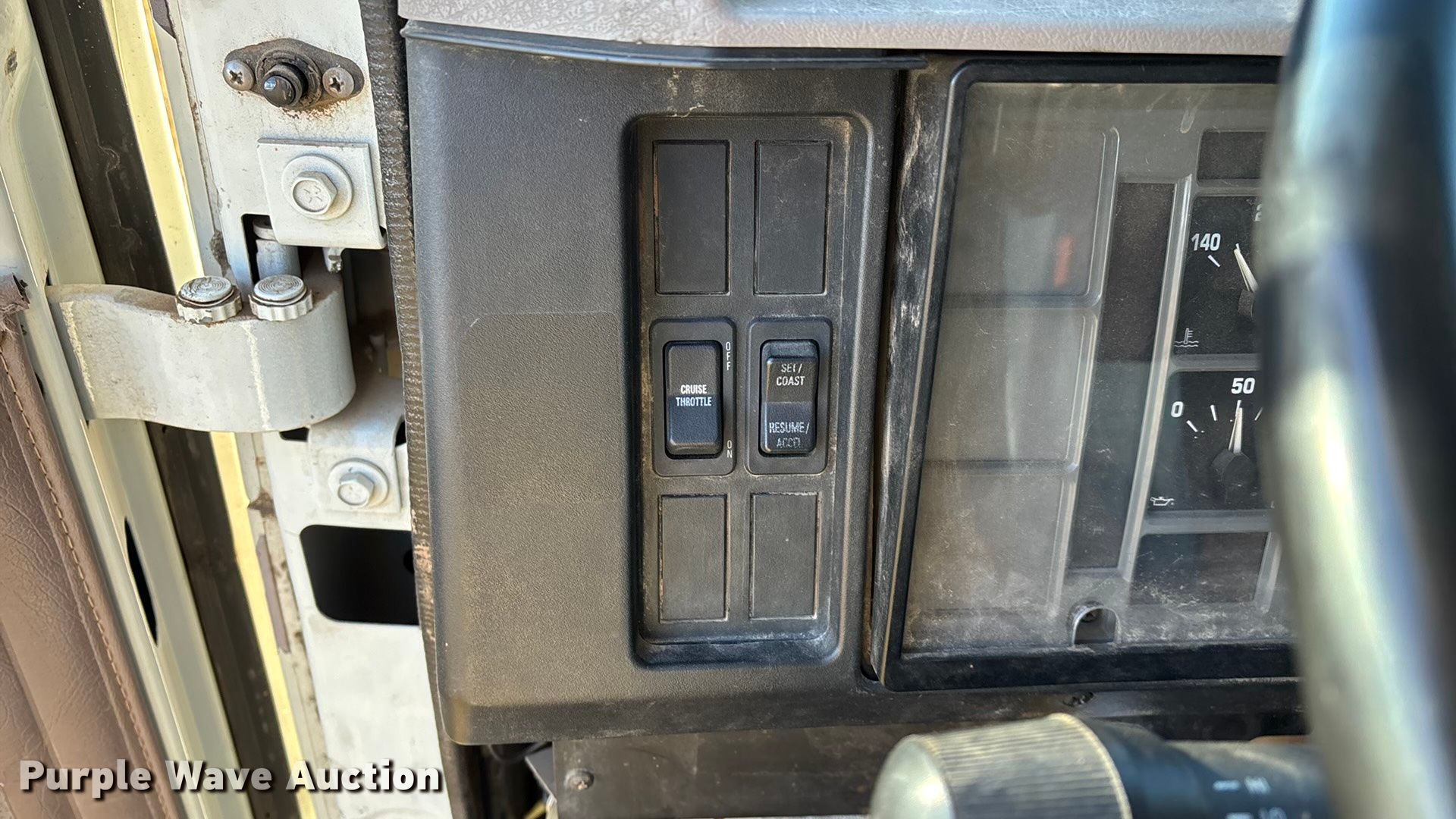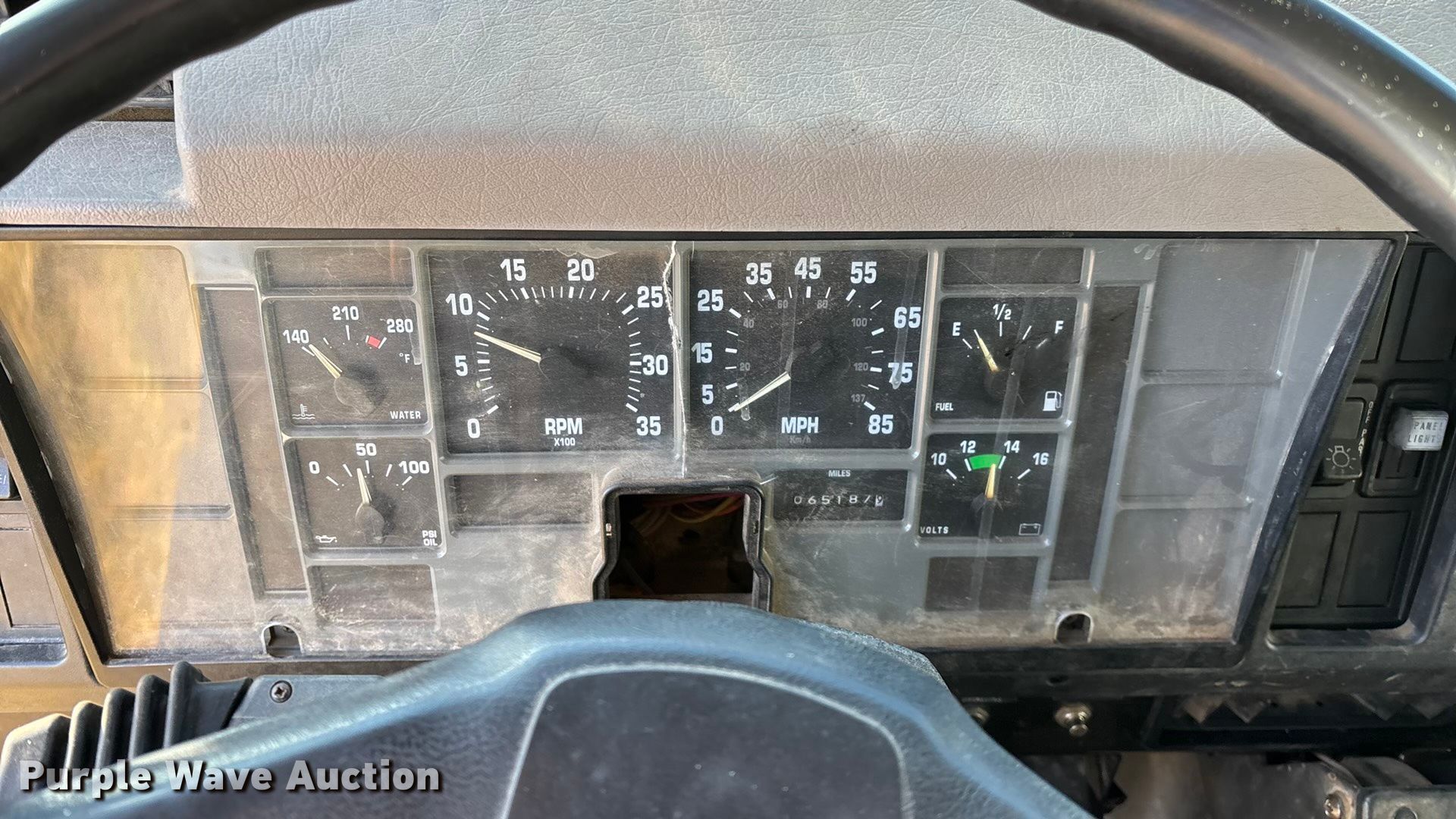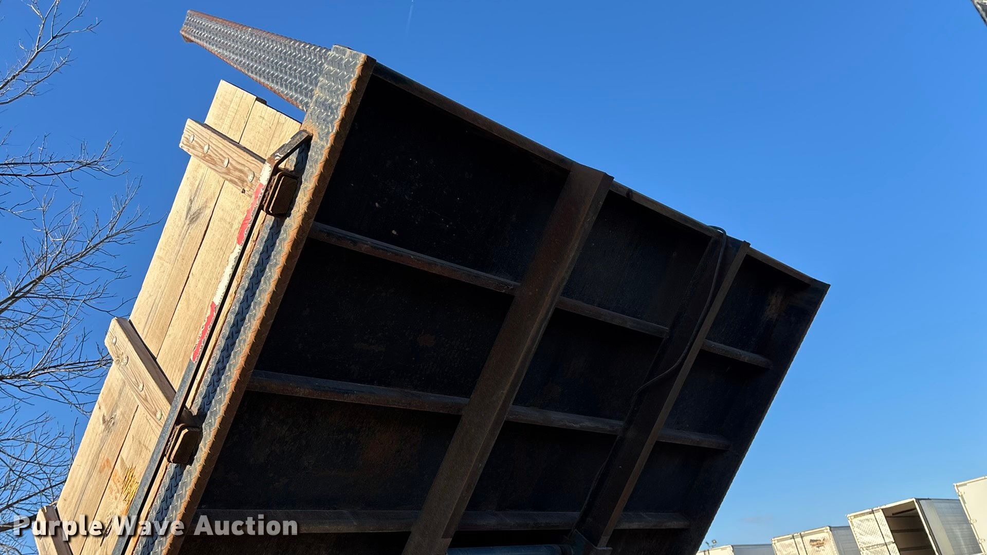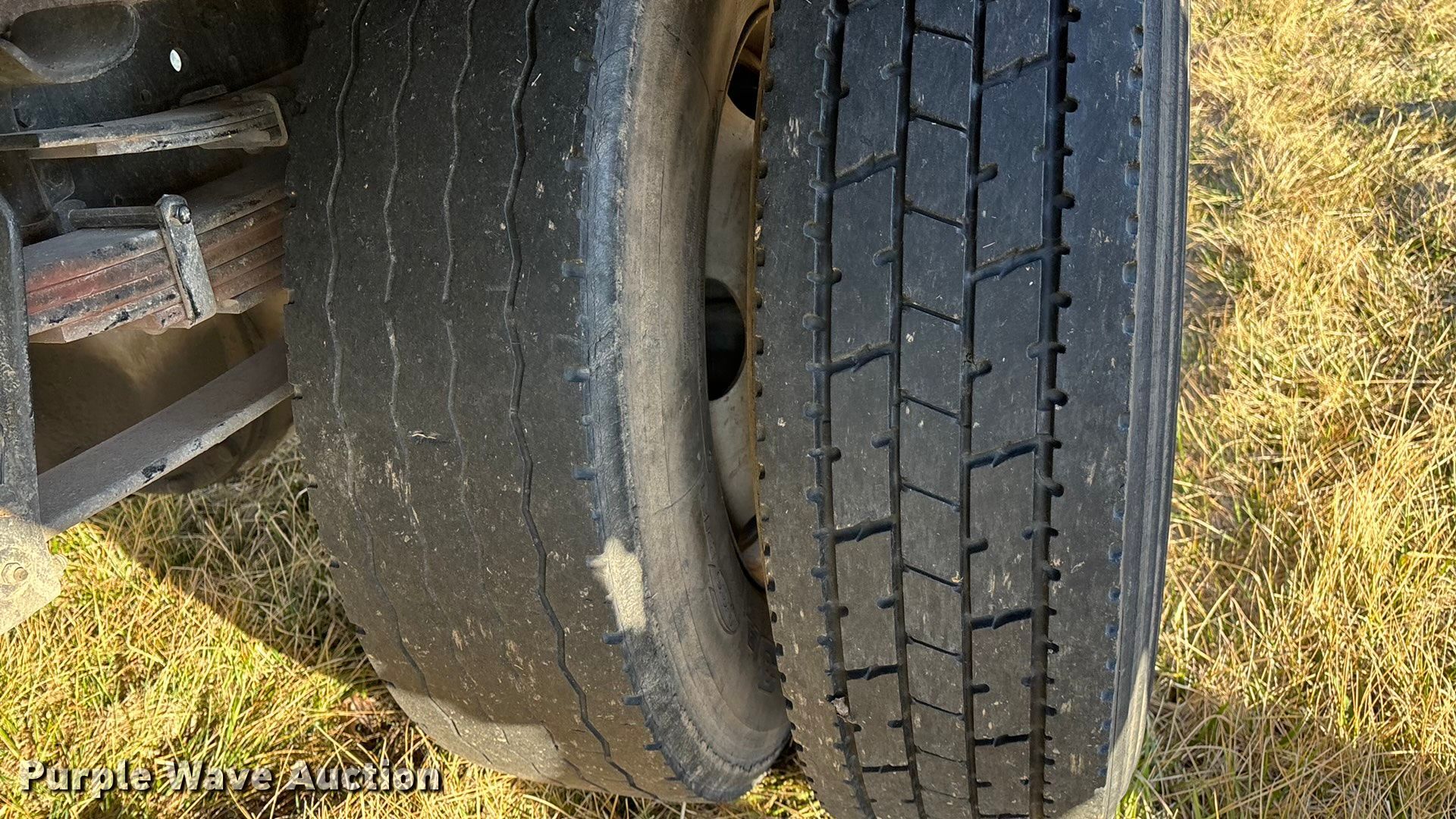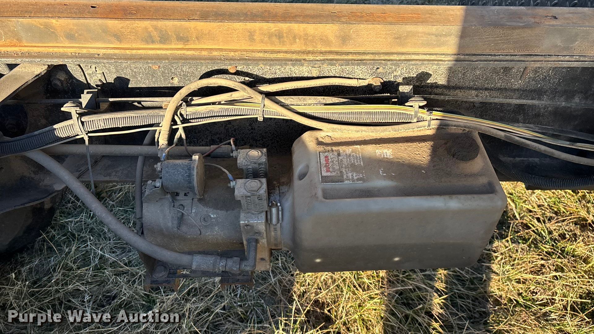 2001 International 4700 flatbed truck. Miles: 65,188 on odometer, VIN: 1HTSCAAM31H323956. Engine Cylinders: 6, Fuel type: Diesel. Transmission Automatic. Chassis Axles: Single, Suspension: Spring, Brakes: Hydraulic. Interior AC, Heat, Cruise control, Brake controller. Features Bed Dump flatbed, Length: 10' 1", Width: 100", Ram: Single, Removable sides, Gooseneck. Tires Front: 295/75R22.5, Rear: 275/80R22.5, Rear: 295/75R22.5. Notes Power steering issues, leaks, Contents not included, Possible AC issues, may need charged, Windshield chipped or cracked, Non-operational driver side door handle. Missouri title. Title distribution may be delayed up to 14 days from verification of funds. Simmerman Farms LLC. Springfield, MO 65802