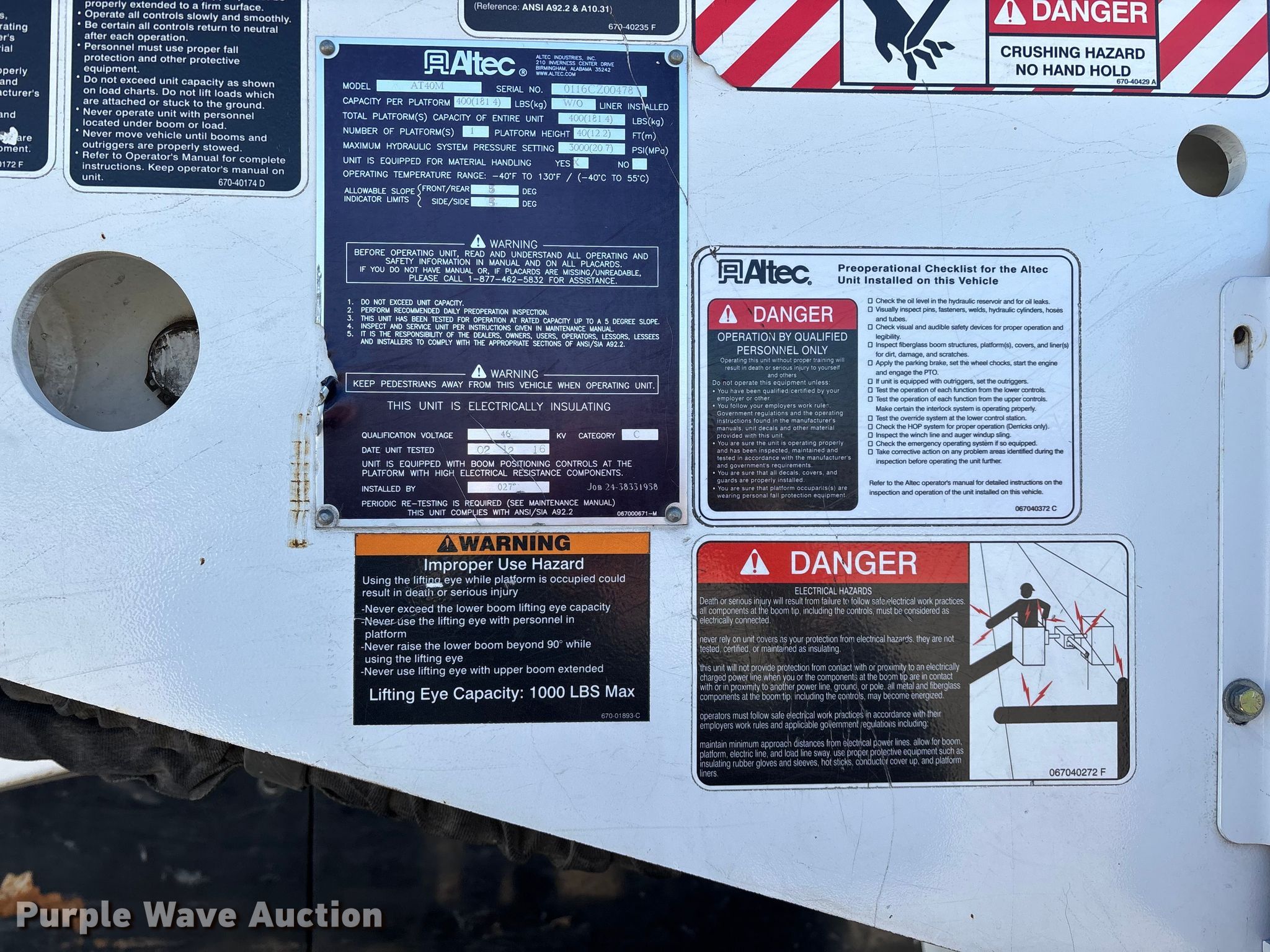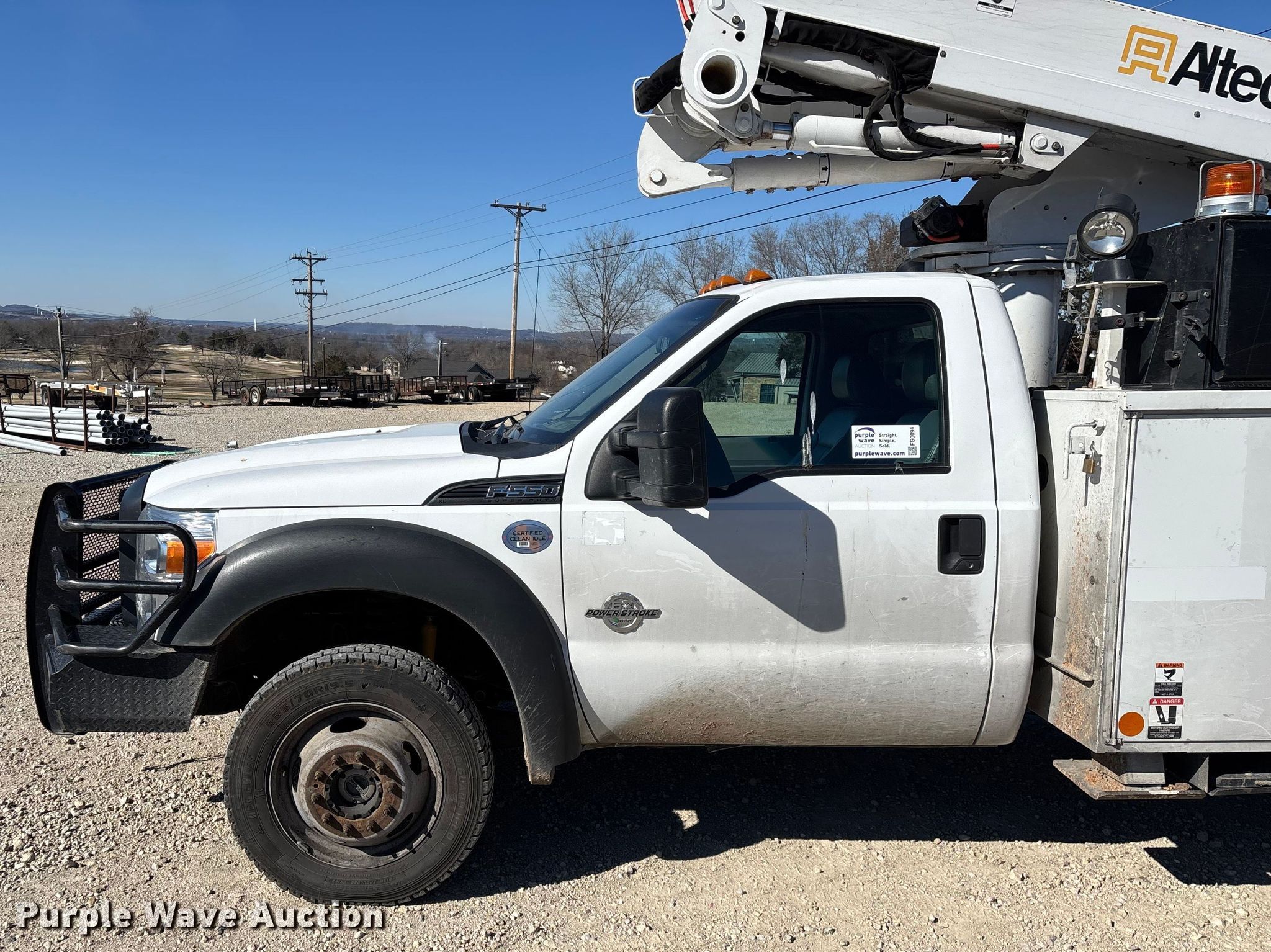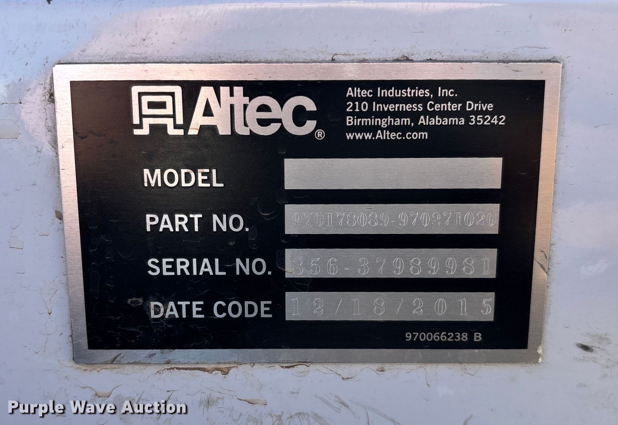 2016 Ford F550 bucket truck. Miles: 199,335 on odometer, VIN: 1FDUF5HT0GEB27609. Engine Displacement: 6.7L, Cylinders: 8, Fuel type: Diesel. Transmission Automatic. Chassis Four wheel drive, Axles: Single, Suspension: Spring, Brakes: Hydraulic, PTO, GVWR: 19,500 lbs. Interior AC, Heat, Cruise control, Auxiliary controls. Features Bed Altec, Serial: 27 38331917 2-16, Length: 13' 5", Width: 94", Height: 58", Boom Altec AT40M, Serial: 0166CZ00478, Boom length: 17' 6", Maximum lift capacity: 400 lbs, Maximum lift height: 40', Boom type: Articulating, Insulated, Telescopic, Man basket, Boom controls Lower, Basket, Material handler. Tires Size: 225/70R19.5. Notes Contents not included, Front drivers side tire, side wall damaged, Non-operational winch, possible blown fuse. Missouri title. Title distribution may be delayed up to 14 days from verification of funds. White River Valley Electric Cooperative. Branson, MO 65616
