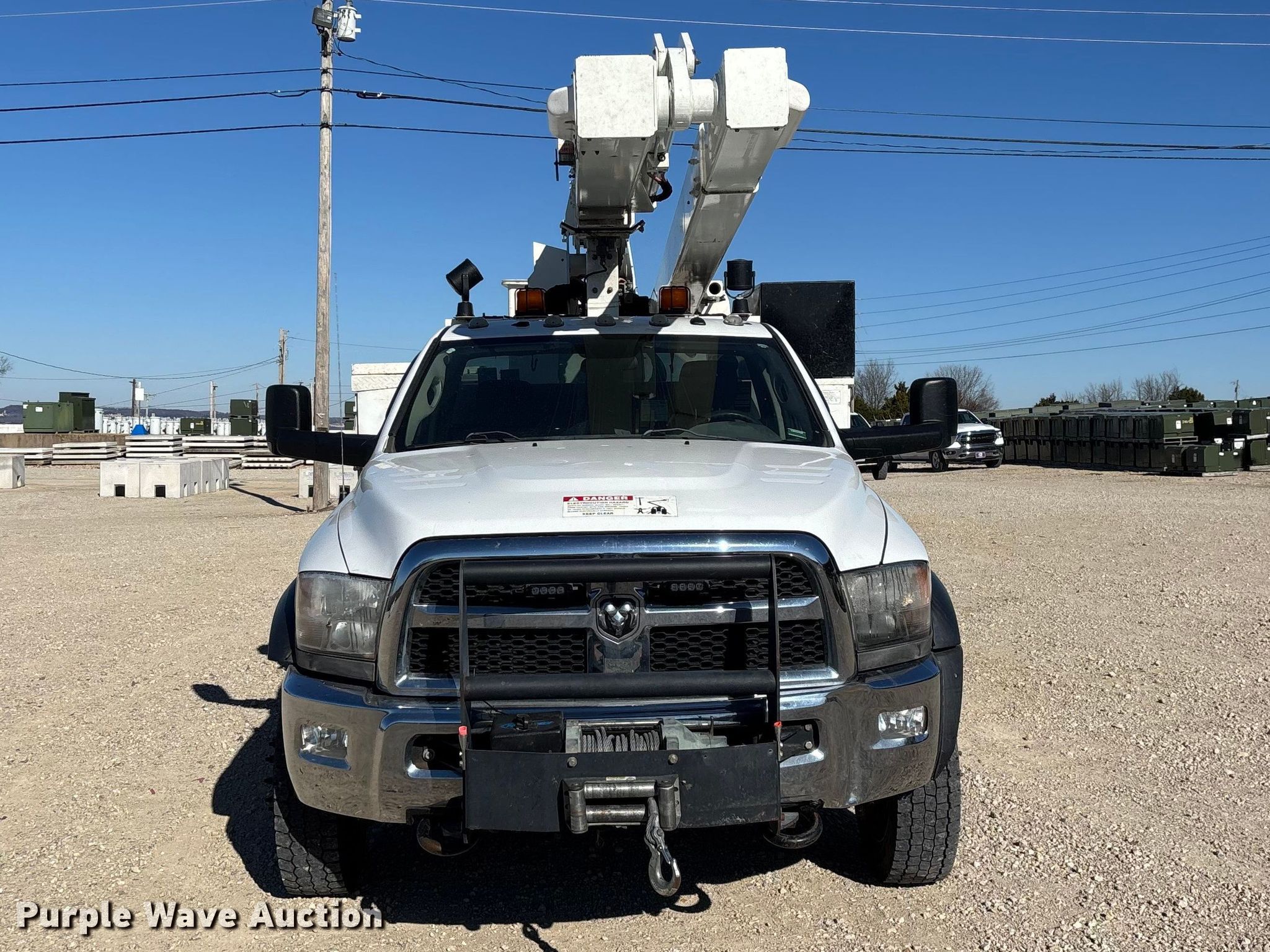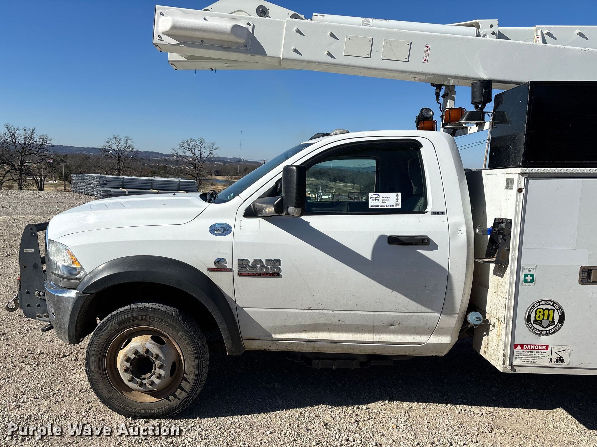 Purple Wave is selling a used Bucket Truck in Missouri. This item is a 2014 RAM 5500 bucket truck with the following: Miles: 193,793 on odometer, Hours: 12,963 on meter, VIN: 3C7WRNBL8EG181987