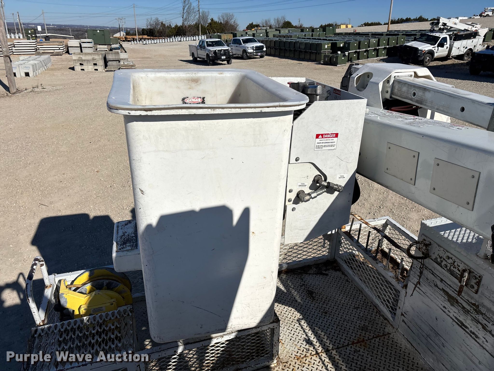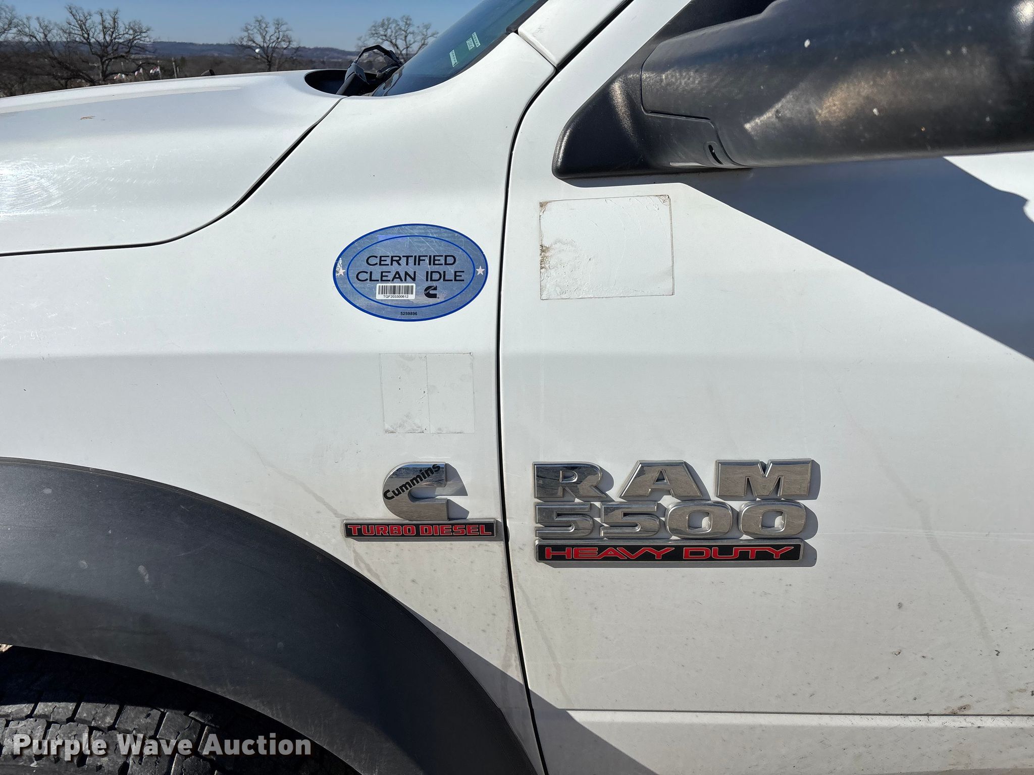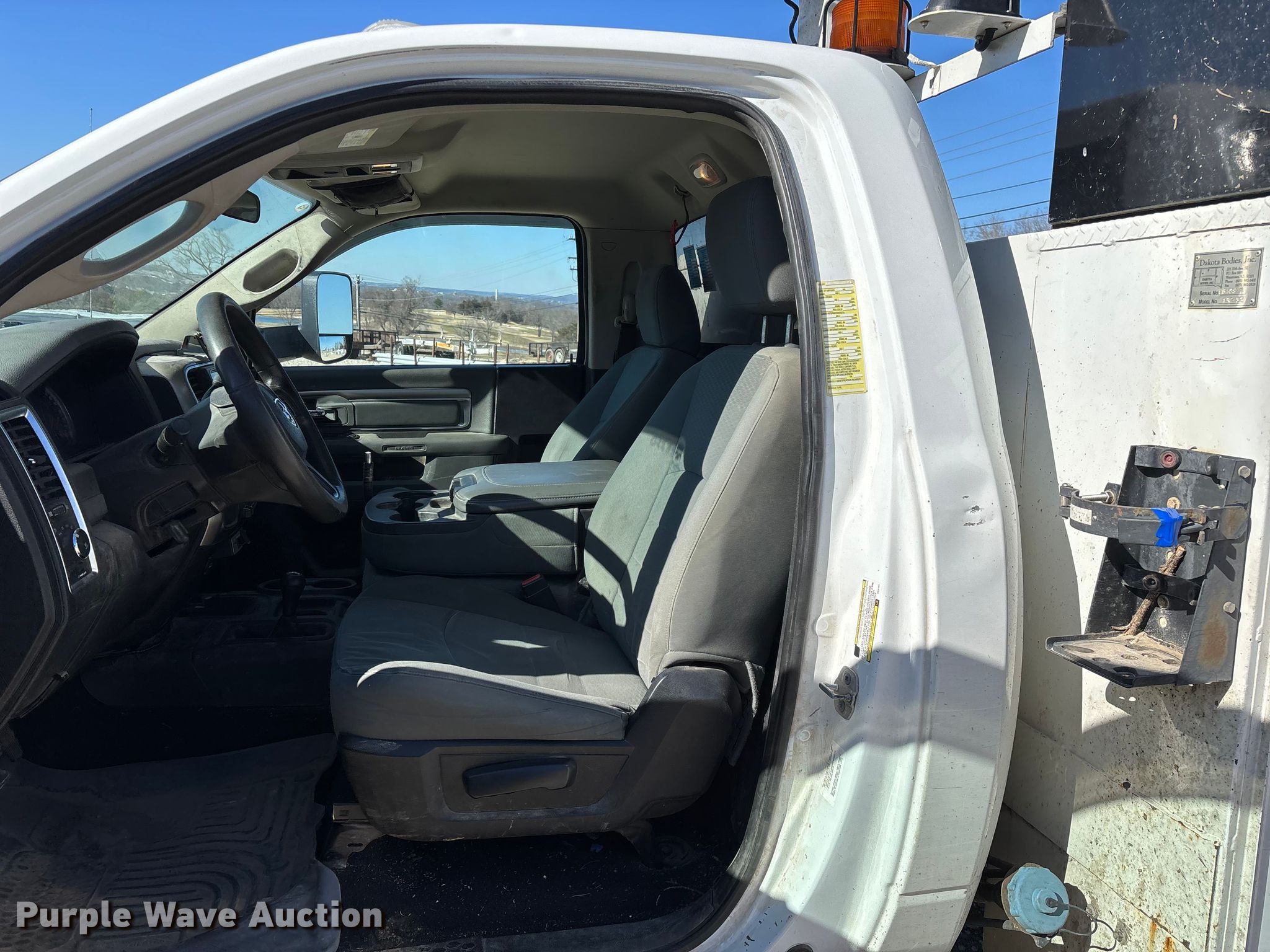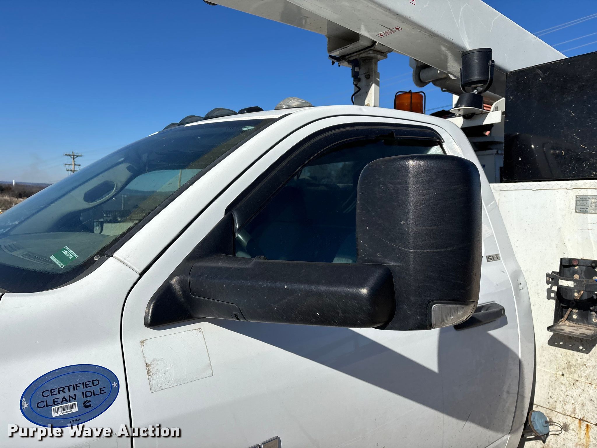2014 RAM 5500 bucket truck. Miles: 193,793 on odometer, Hours: 12,963 on meter, VIN: 3C7WRNBL8EG181987. Engine Cummins, Displacement: 6.7L, Cylinders: 6, Fuel type: Diesel. Transmission Automatic. Chassis Four wheel drive, Axles: Single, Suspension: Spring, Brakes: Hydraulic, GVWR: 19,500 lbs. Interior AC, Heat, Power windows, Power locks, Cruise control, Auxiliary controls, Brake controller. Features Bed Dakota Bodies, Inc 132-SB, Serial: DB18851, Length: 13' 6", Width: 94", Height: 66", Boom Versalift, Boom length: 19' 5", Boom type: Articulating, Man basket, Boom controls Lower, Basket, Material handler. Tires Size: 225/70R19.5. Notes Contents not included, Dash warning indicator: Check engine, Fuel system service required, Windshield chipped or cracked. Missouri title. Title distribution may be delayed up to 14 days from verification of funds. White River Valley Electric Cooperative. Branson, MO 65616