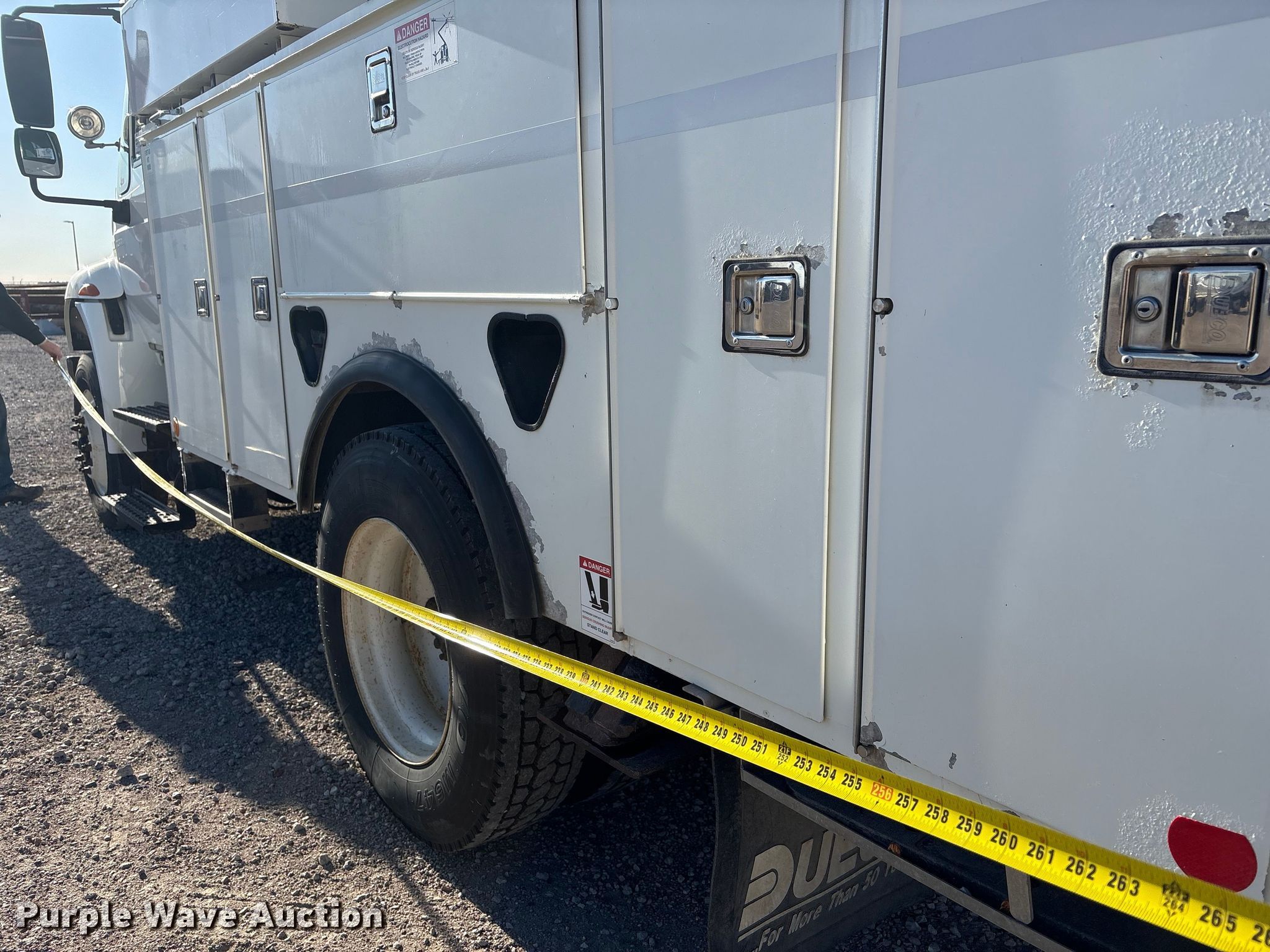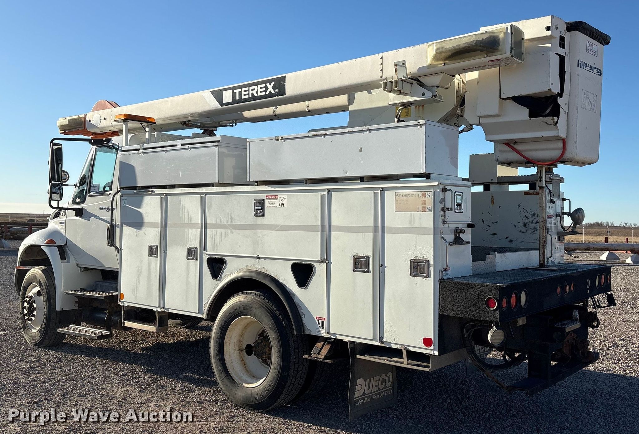 2012 International 4300 bucket truck. Miles: 106,848 on odometer, Hours: 6,468 on meter, VIN: 1HTMMAAN2CH091898. Engine International DT466, Displacement: 7.6L, Cylinders: 6, Fuel type: Diesel. Transmission Automatic. Chassis Axles: Single, Differential lock: Inter-axle, Suspension: Spring, Brakes: Air, PTO, GVWR: 31,000 lbs, Wheelbase: 152". Interior AC, Heat, Heated mirrors, Power windows, Power locks, Cruise control, Backup camera, Auxiliary controls, Brake controller. Features Bed Utility bed, Dueco DAL-84, Serial: 0412059, Length: 12' 8", Width: 94", Height: 6' 3", Boom 2012 Hi Ranger SC45, Serial: 2120346451, Maximum lift capacity: 350 lbs, Maximum lift height: 50', Boom type: Articulating, Insulated, Man basket, Boom controls Lower, Basket, Certification valid through: 06/2026. Tires Size: 295/75R22.5. Kansas title. Title distribution may be delayed up to 14 days from verification of funds. Holler Electric. Clay Center, NE 68933