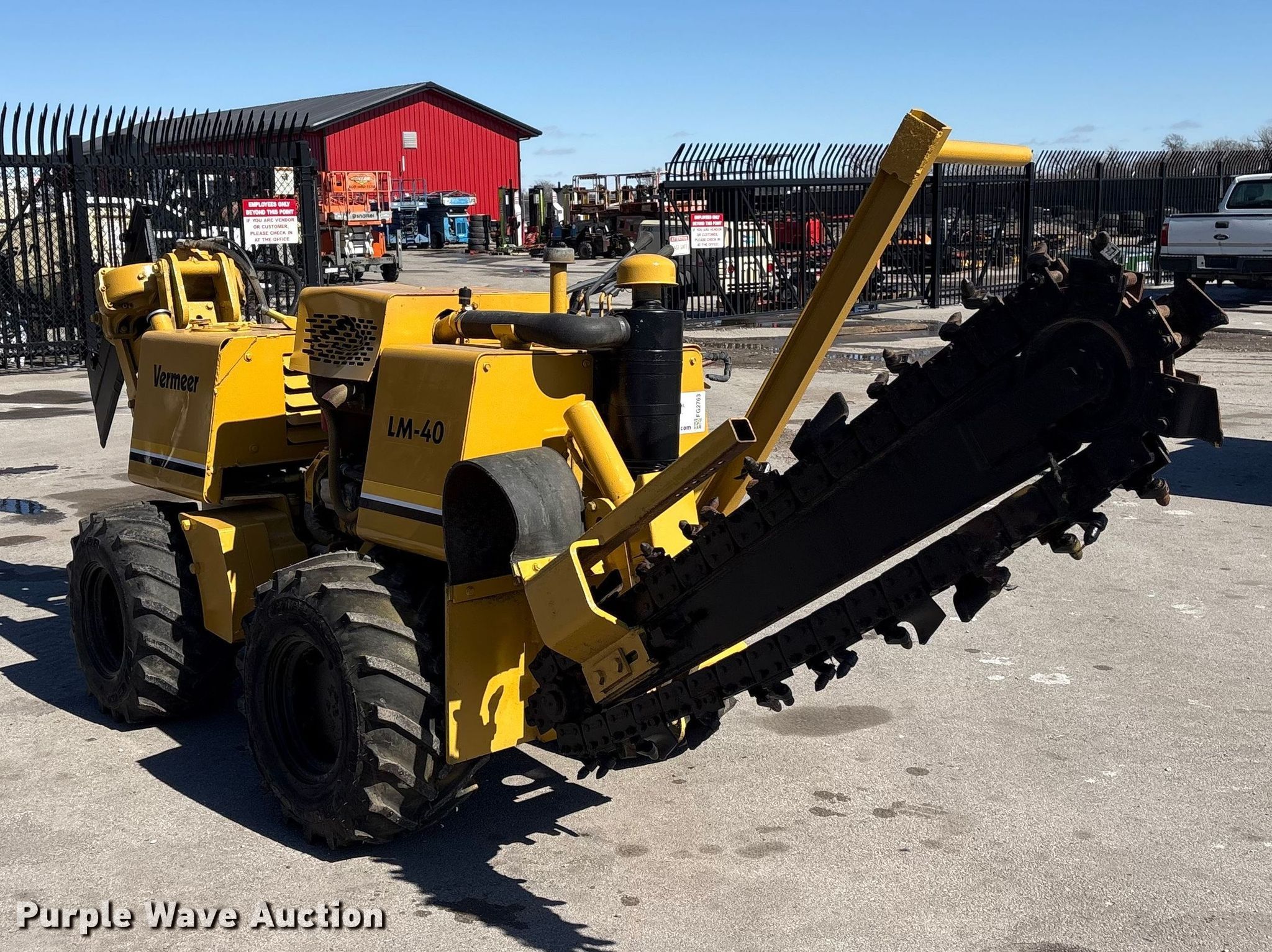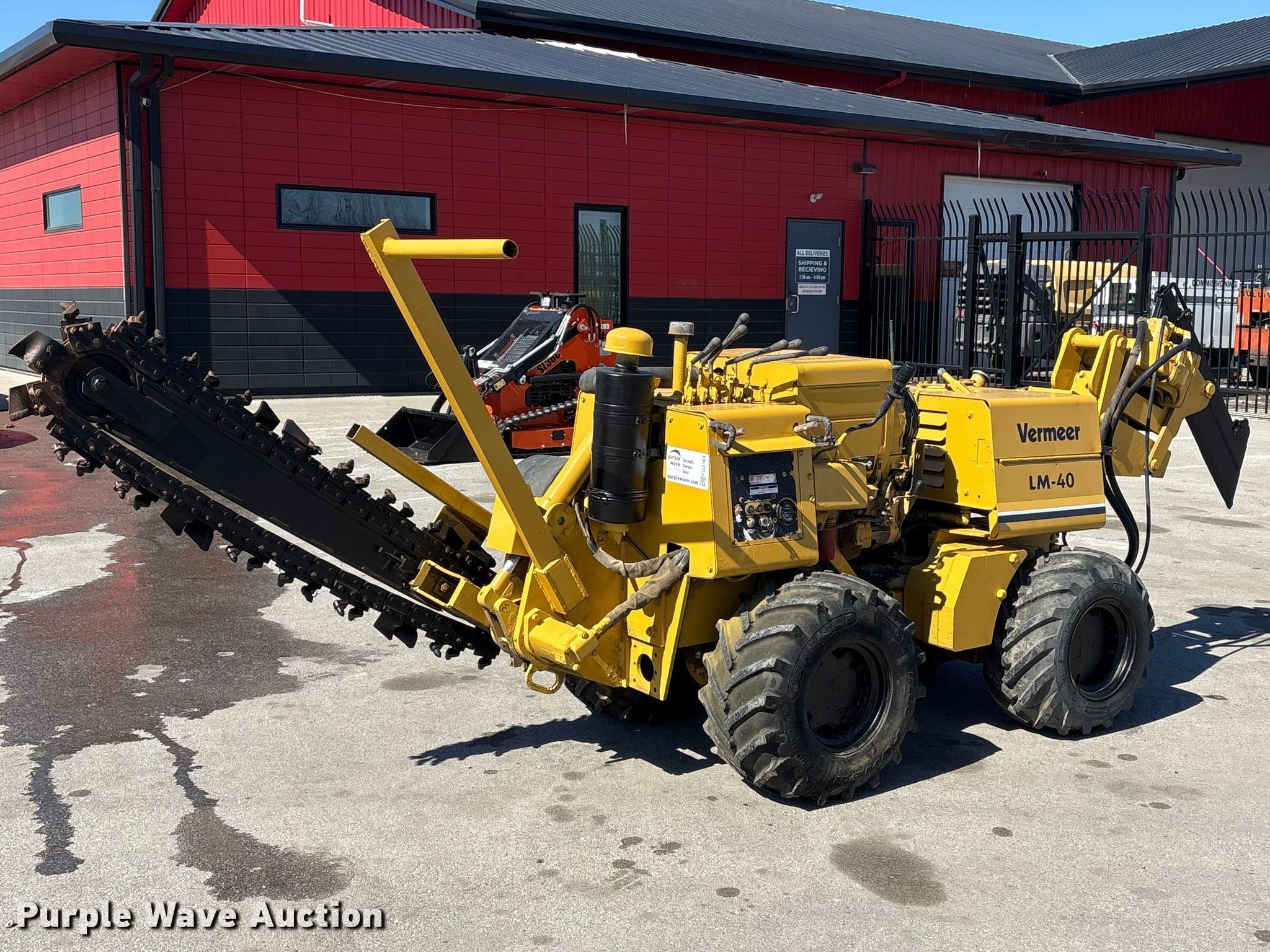 Take a look at this used Vermeer LM-40 trencher being sold on March 26th, 2026 in the Thursday March 26 Construction Equipment Auction made by Vermeer. Take a look at all of the item information below or take a look at similar auctions for Boring and Trenching.